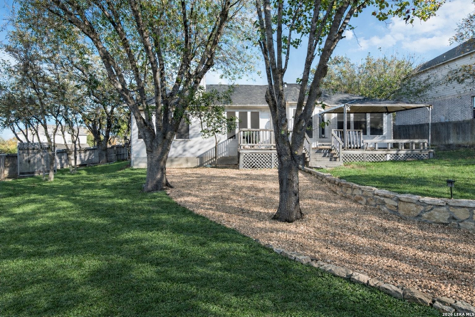 WELCOME HOME! Located in the desirable Promontory Point subdivision, this move in ready, single story home offers 3 bedrooms, 2 bathrooms, . As you enter through the front door you will notice this beautiful open floorpan leads into a dining room and spacious living area with a gas burning fireplace. The spacious kitchen showcases solid countertops, stainless steel appliances and a walk in pantry. The large deck that extends from the kitchen is perfect for grilling and gathering with family and friends. Just outside 1604, minutes from hospitals, schools, restaurants, shopping, and more! Community Amenities include a pool, pavilion, sports courts, park and playground. *Yard Service Included*