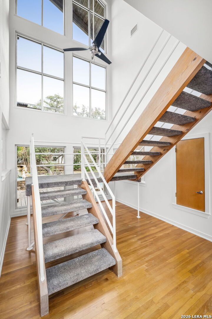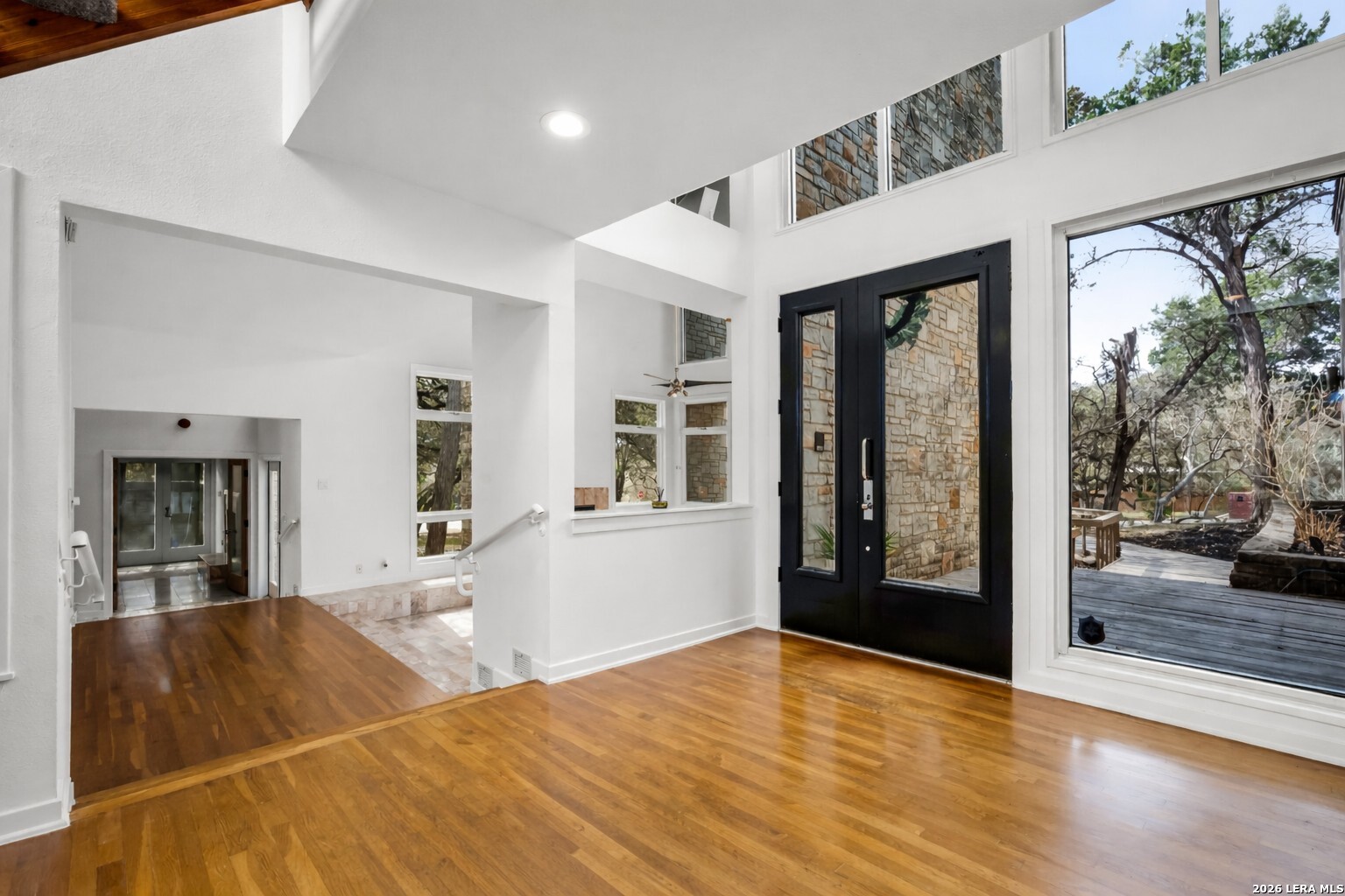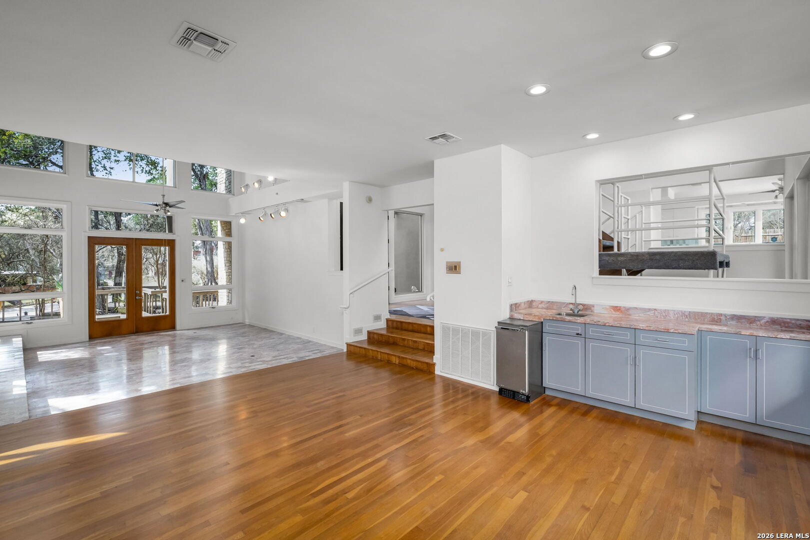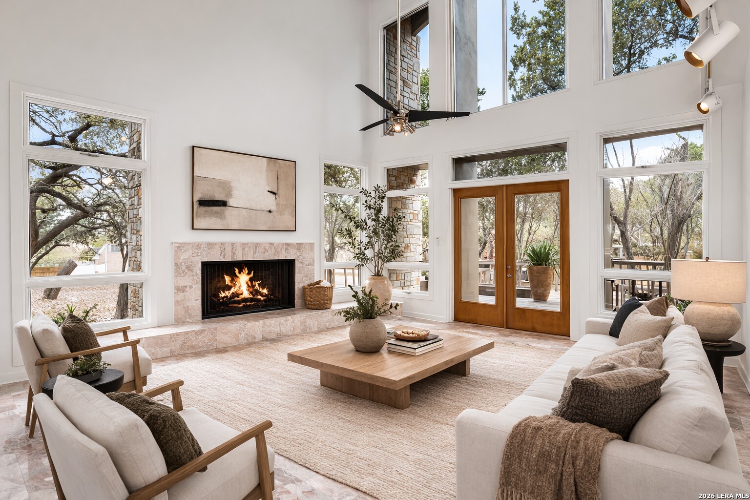 Discover the opportunity to own this 4-bedroom, 3.5-bath home in one of Garden Ridge's most desirable neighborhoods - with no HOA. Set on a spacious property surrounded by mature trees, this home offers an oversized garage, sparkling pool, and attached spa, creating a private outdoor retreat perfect for relaxing or entertaining. Inside, high ceilings and large windows highlight the home's architecture and fill the living spaces with abundant natural light. The kitchen features quartz countertops and backsplash, marble accents, wood flooring, and a JennAir stovetop, offering both style and functionality. Ceiling fans throughout add comfort, while two fireplaces - one in the living room and one in the primary bedroom - bring warmth and character to the home's inviting atmosphere. The flexible layout offers a unique opportunity to personalize and create spaces that fit your lifestyle, whether for entertaining, working from home, or everyday living. Step outside to enjoy a spacious patio and charming gazebo, ideal for gatherings, outdoor dining, or quiet evenings by the pool. The expansive outdoor living area provides plenty of room to entertain and enjoy the peaceful setting that makes Garden Ridge so desirable. Additional highlights include four HVAC units for efficient climate control and year-round comfort. Located in a sought-after community known for its larger homesites, natural beauty, and convenient access to nearby shopping, dining, and major routes, this property presents a rare opportunity to enjoy space, privacy, and the relaxed Garden Ridge lifestyle. Ready to tour and ready for its next chapter.