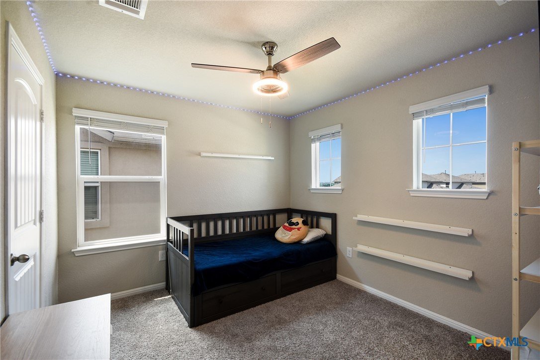 Note: o Buyer Incentive: Use our preferred mortgage lender (Fairway mortgage) and get 1% credit toward closing costs (see attached flyer). o $/Sqft: This home has the lowest $/Sqft of all homes currently listed in Fairhaven. This 5 year old home is located just off Westinghouse RD with convenient access to main thoroughfares, 2.7 miles to Texas 130 and 3.6 miles to I-35. It's 3.3 miles to Teravista Golf Club, 4.4 miles to Round Rock Premium Outlets, Cinemark Round Rock 14 movie theater and numerous restaurants. And it is 5.2 miles to St. David's Georgetown Hospital. Upgrades consist of: Front Porch swing (2021), extended the back patio to 25' x 19' (2021), added dining room wood accents and light fixture (2022), upgraded kitchen faucet and cabinet handles (2022), repainted home interior (2025), replaced flooring (2025) and replaced roof (2025). A small section of the upstairs loft was walled in to create a small home office/study area, creating a unique and enjoyable private space. There is a lot of cabinet space in the kitchen, and along with the walk-in pantry, an abundance of space for food and dish storage. The large granite island provides a convenient space for a quick breakfast and, along with the extensive granite kitchen counters, there is plenty of space for meal prep. The recessed lighting in the kitchen provides ample light while still leaving the space open and airy. The laundry room is upstairs as are all the bedrooms, so doing the laundry is super convenient. The back yard faces East, so the large extended back patio has evening shade, perfect for relaxing or entertaining in the evenings. The garage was used exclusively for exercise equipment, so the garage floor will look brand new when the exercise flooring is removed. Note: All flooring, equipment and mirrors in the garage do not convey. Fairhaven amenities include a pool, playground, covered pavilion with picnic tables and grill, pickle ball courts and walking/jogging trails.