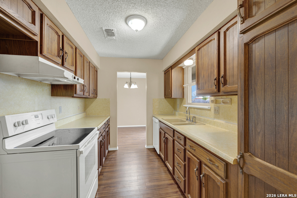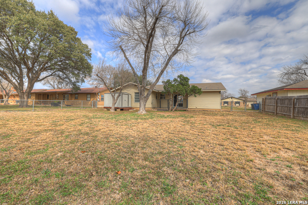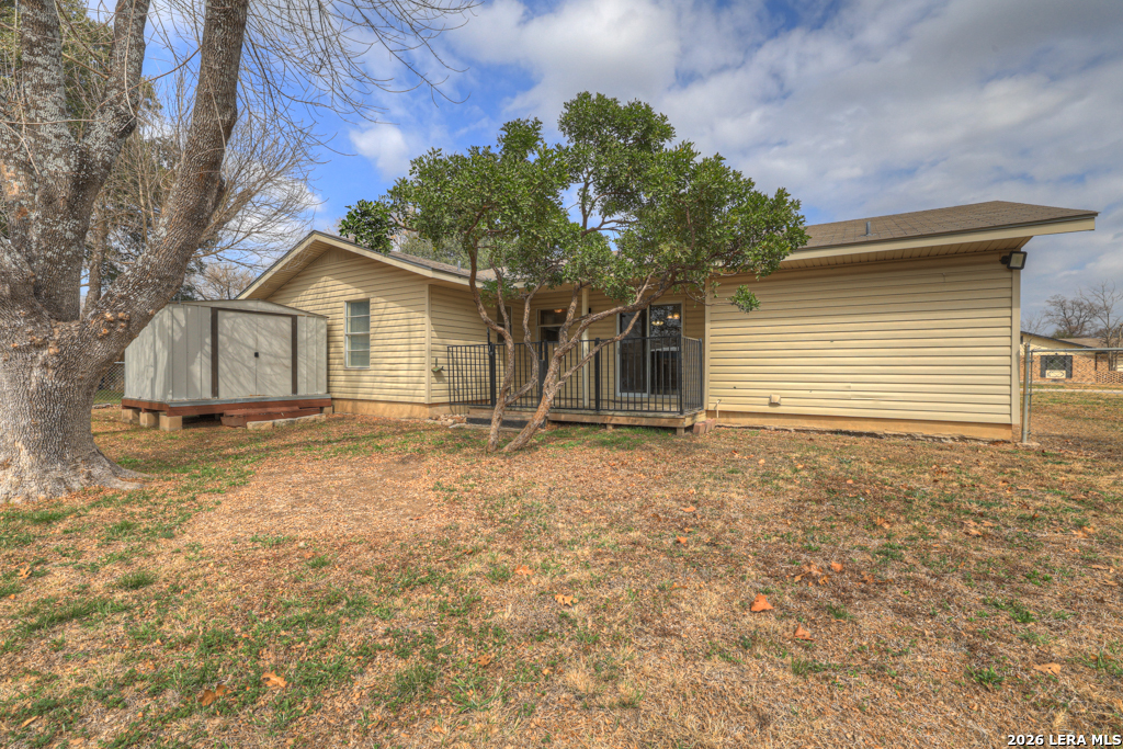 Well maintained single-story home in desirable New Braunfels! Minutes from popular Gruene, shopping, and nearby schools. Easy access to IH-35. Home offers 3 bedrooms, 1.5 bathrooms, 1 car garage. Vinyl flooring throughout, no carpet. Kitchen offers cabinet storage complete with a window above the sink, over looking the backyard. Dishwasher & electric range! Large fenced backyard with mature trees including a covered deck, great for entertaining. Storage shed in backyard.