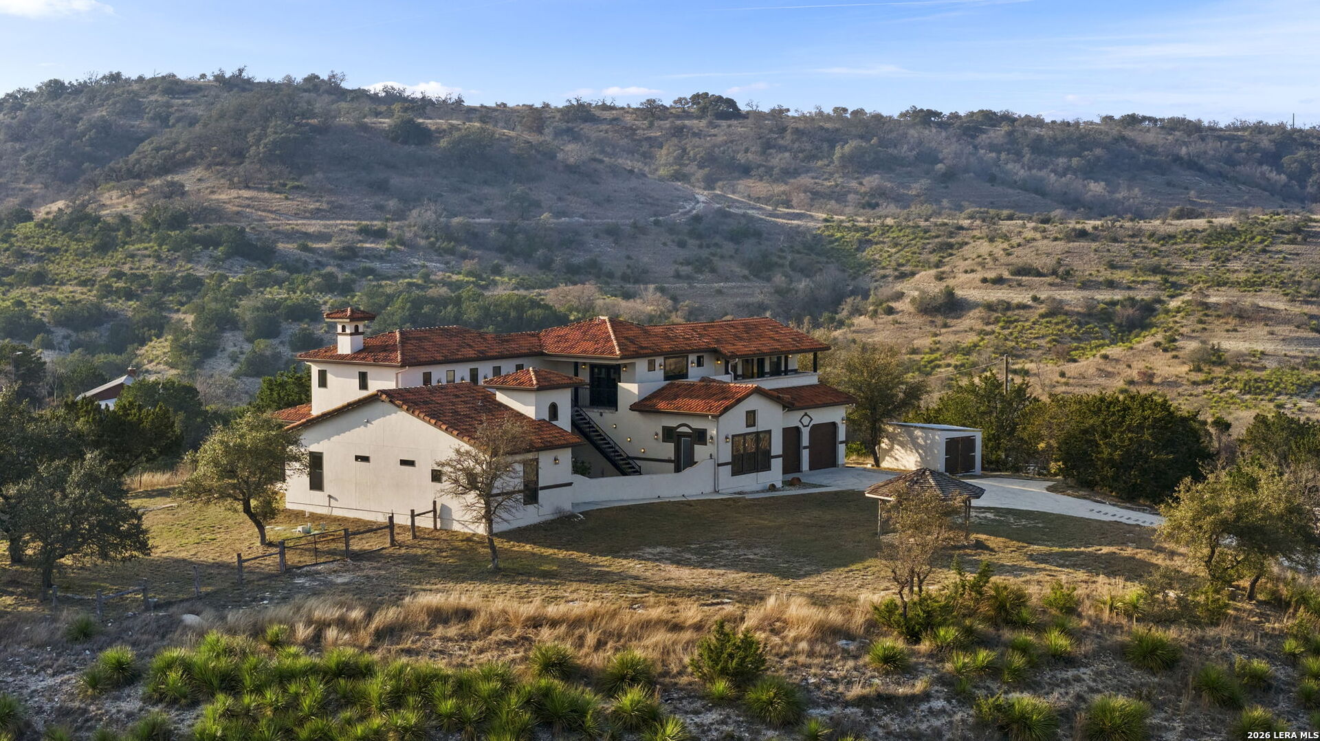 Set high above the rolling landscape of the Texas Hill Country, this remarkable ranch offers sweeping views of rugged hills, wide valleys, and endless Texas sky. It's the kind of setting where mornings begin with quiet sunrises over the hills and evenings end with colorful sunsets and star-filled skies. The property captures the essence of Hill Country living-wide-open space, privacy, and a deep connection to the outdoors. Native wildlife moves freely across the land, and the wildlife tax exemption allows you to enjoy the natural beauty without the need to ranch animals. With no HOA restrictions, the ranch offers flexibility to create the lifestyle you want, whether that includes horses, outdoor recreation, or simply space to breathe. The main residence is a beautiful stucco villa with a classic clay tile roof, offering four bedrooms, 3+ bathrooms. Inside, high ceilings and expansive windows bring in natural light and frame panoramic views that stretch for miles across the surrounding countryside. Thoughtful architectural details and generous living spaces make the home ideal for both everyday living and entertaining. A second home-the original ranch house-adds character and versatility to the property. Renovated in 2017, the 1,344-square-foot home features two bedrooms, two bathrooms, and a private deck where you can relax and take in the surrounding scenery. It's an ideal space for guests, extended family, or a private retreat. Despite the peaceful and secluded setting, the ranch remains conveniently located near some of the Hill Country's most beloved destinations, including Fredericksburg, Boerne, Comfort, Sisterdale, and Luckenbach-offering easy access to wineries, dining, and shopping. Whether used as a full-time residence, a family compound, or a weekend escape, this hilltop ranch offers a lifestyle defined by open space, breathtaking views, and the natural beauty of the Texas Hill Country.