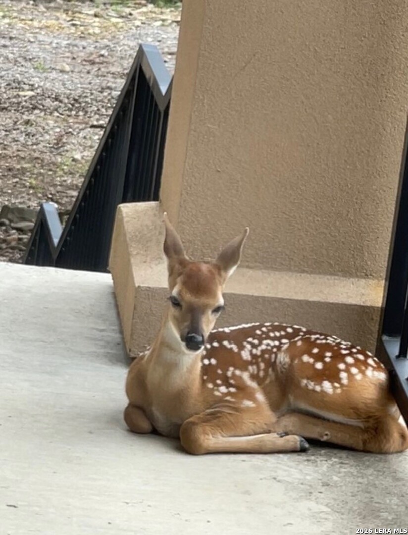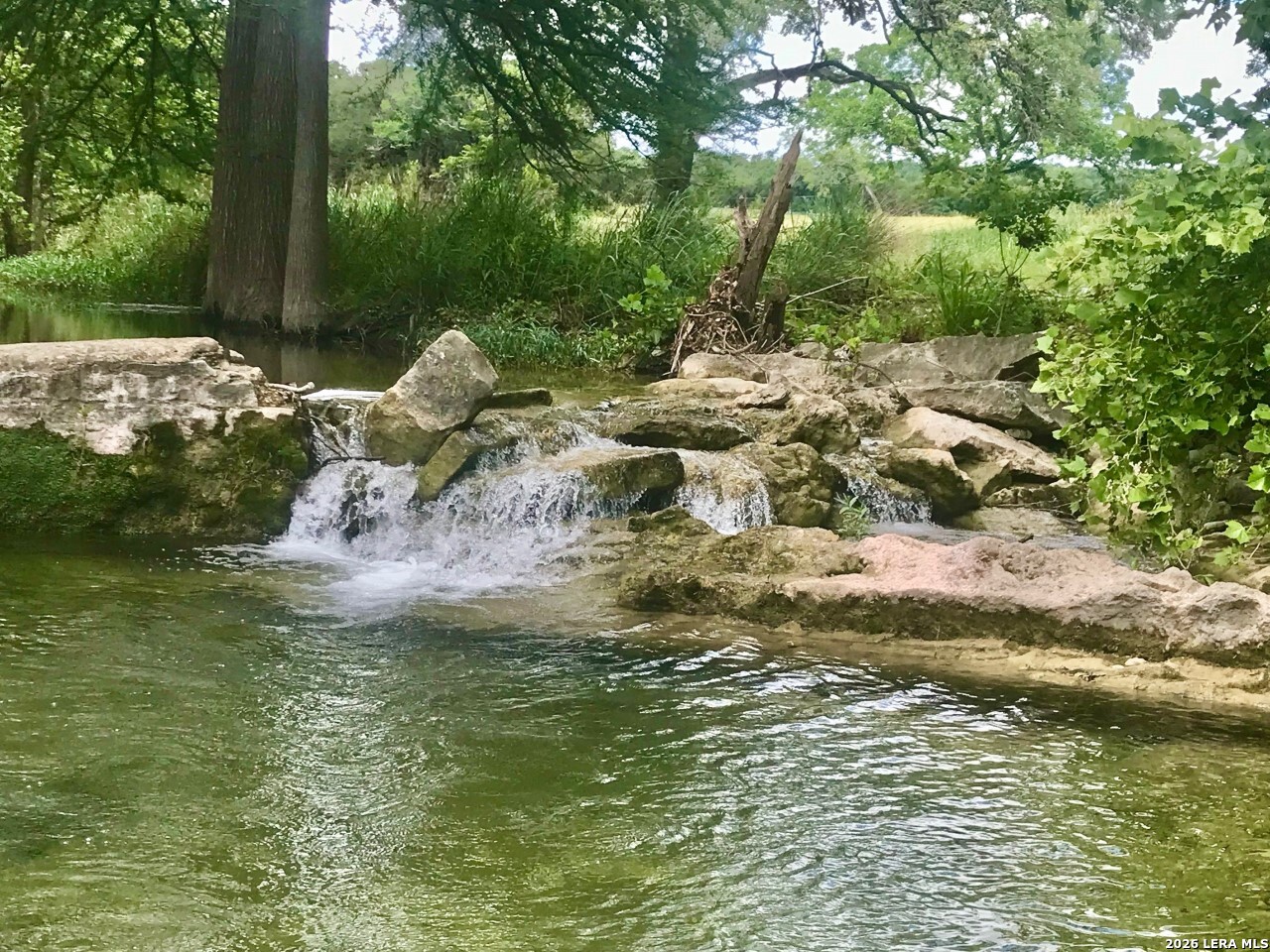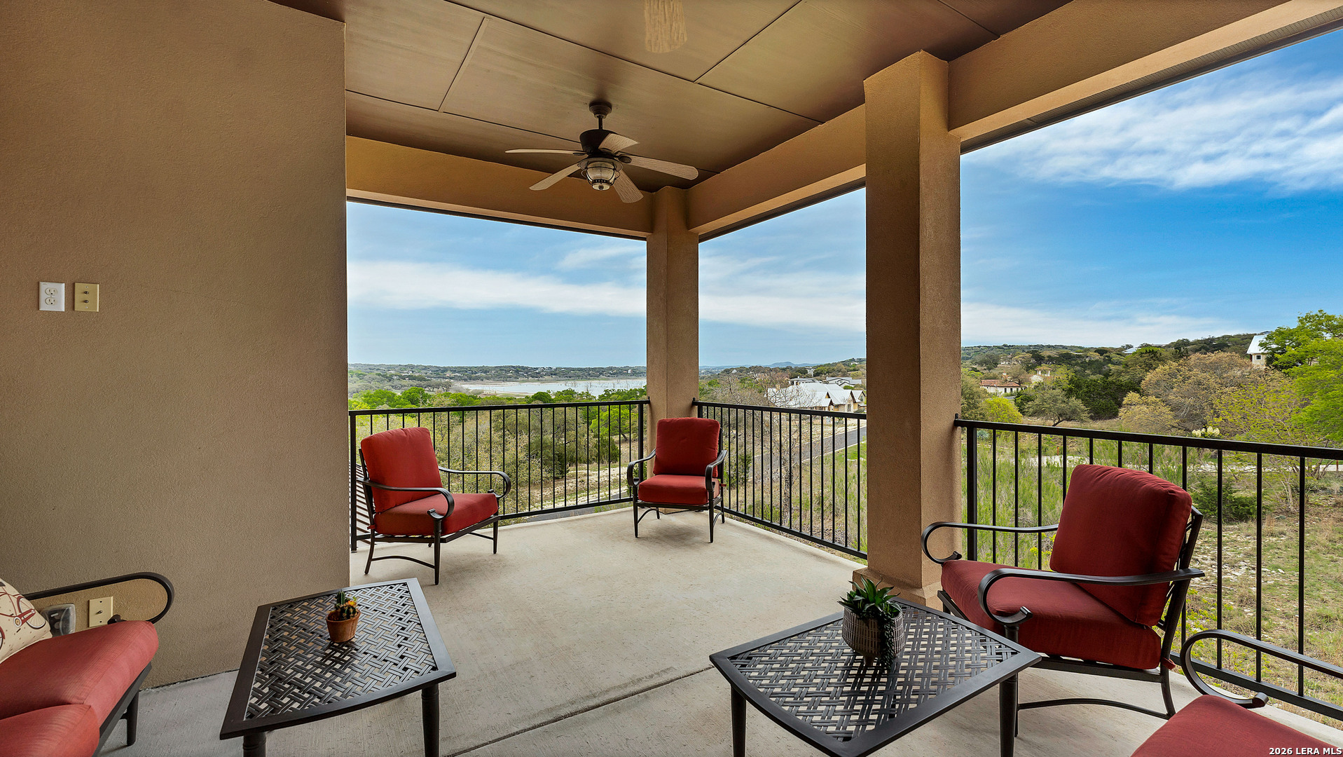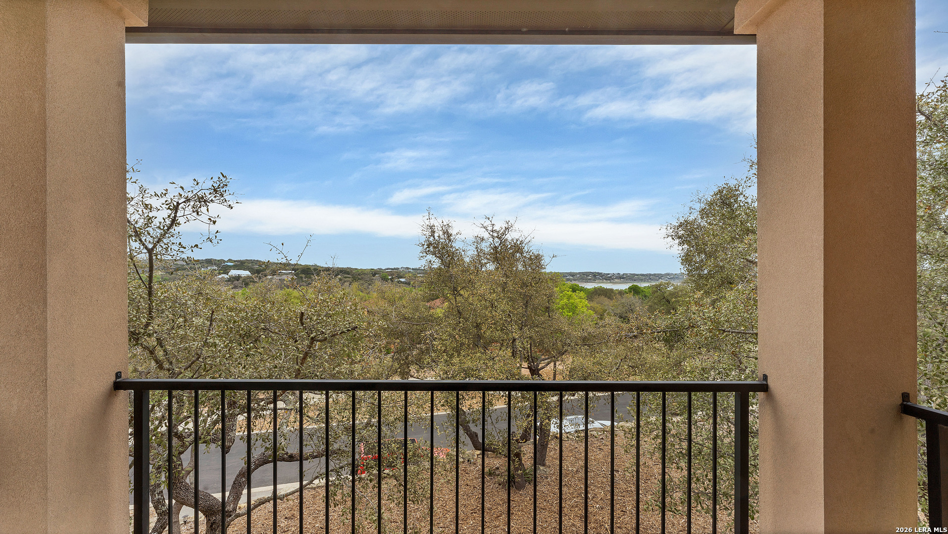 This immaculate luxury home offers a rare opportunity to own a residence that has never been fully lived in and has never been rented, presenting in pristine, like-new condition. Designed for both comfort and accessibility, the home features an elevator to the main level and full ADA-friendly living. Enjoy beautiful lake views with access to Tom Creek and Canyon Lake, all set on a spacious one-acre homesite. The main floor features an open, light-filled layout with a primary suite that includes a private balcony, plus a dedicated office that can easily serve as a fifth bedroom. The chef-friendly kitchen is equipped with a commercial-grade cooktop, convection oven, stainless steel appliances, built-in microwave, large stone and granite island, and custom cabinetry. The living room centers around a striking stone fireplace and picture windows that frame the lake and surrounding wildlife. Upstairs, three additional bedrooms offer a private balcony with scenic lake views. The upper balcony and back patio are wired for outdoor television, perfect for watching the game while cooking on the combination charcoal and gas grill conveniently plumbed to the home. A natural spring sits toward the back of the property, adding to the tranquil setting. The Texas Hill Country stone-and-stucco exterior is complemented by low-maintenance xeriscape landscaping with natural rock, mulch, and mature oak trees. Interior features include hardwood floors, electric shades, custom blinds, pre-wired surround sound, fiber-optic service, double-pane low-E windows, two tankless water heaters, whole-home water softener, water filter, and two zoned HVAC systems. Storage is abundant with large closets and custom cabinetry throughout. Even the finished garage features two large closets, a shop sink, and an electric door opener. Located in Las Brisas on the south shore of Canyon Lake, the community offers underground utilities and convenient access to hospitals, shopping, and everyday amenities. Some furniture and appliances are negotiable.