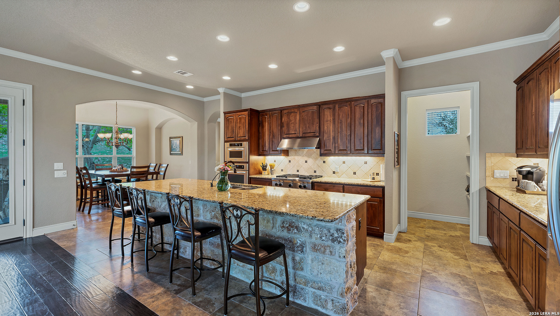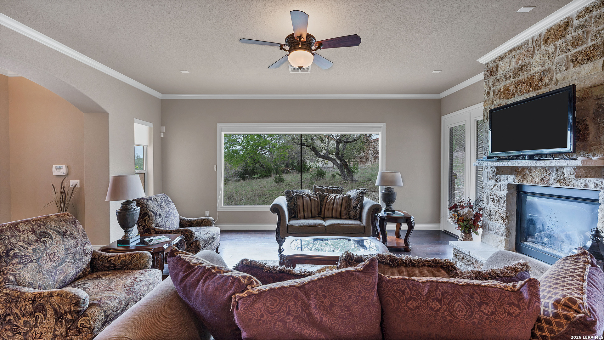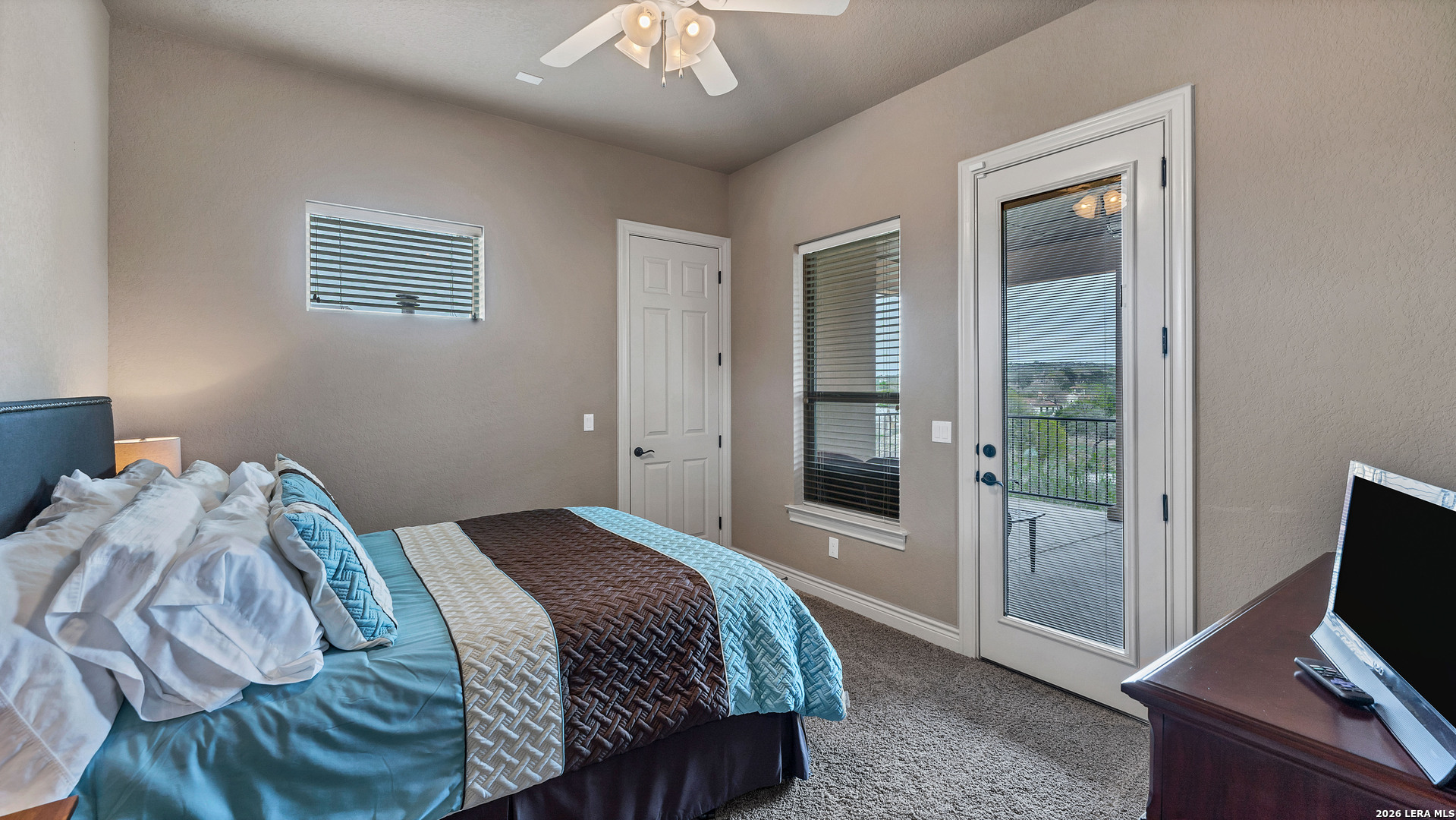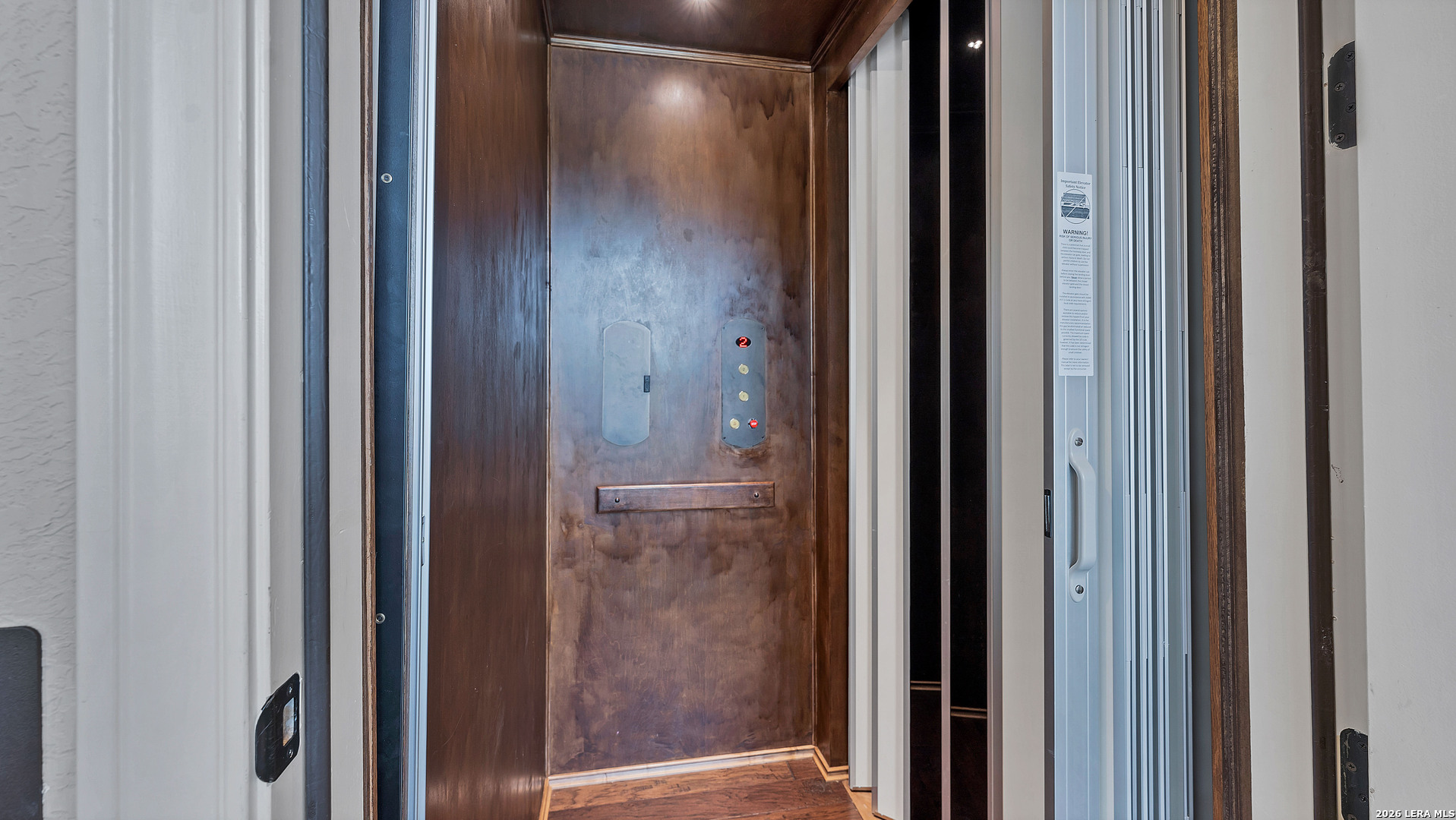 This immaculate luxury home offers a rare opportunity to own a residence that has never been fully lived in and has never been rented, presenting in pristine, like-new condition. Designed for both comfort and accessibility, the home features an elevator to the main level and full ADA-friendly living. Enjoy beautiful lake views with access to Tom Creek and Canyon Lake, all set on a spacious one-acre homesite. The main floor features an open, light-filled layout with a primary suite that includes a private balcony, plus a dedicated office that can easily serve as a fifth bedroom. The chef-friendly kitchen is equipped with a commercial-grade cooktop, convection oven, stainless steel appliances, built-in microwave, large stone and granite island, and custom cabinetry. The living room centers around a striking stone fireplace and picture windows that frame the lake and surrounding wildlife. Upstairs, three additional bedrooms offer a private balcony with scenic lake views. The upper balcony and back patio are wired for outdoor television, perfect for watching the game while cooking on the combination charcoal and gas grill conveniently plumbed to the home. A natural spring sits toward the back of the property, adding to the tranquil setting. The Texas Hill Country stone-and-stucco exterior is complemented by low-maintenance xeriscape landscaping with natural rock, mulch, and mature oak trees. Interior features include hardwood floors, electric shades, custom blinds, pre-wired surround sound, fiber-optic service, double-pane low-E windows, two tankless water heaters, whole-home water softener, water filter, and two zoned HVAC systems. Storage is abundant with large closets and custom cabinetry throughout. Even the finished garage features two large closets, a shop sink, and an electric door opener. Located in Las Brisas on the south shore of Canyon Lake, the community offers underground utilities and convenient access to hospitals, shopping, and everyday amenities. Some furniture and appliances are negotiable.