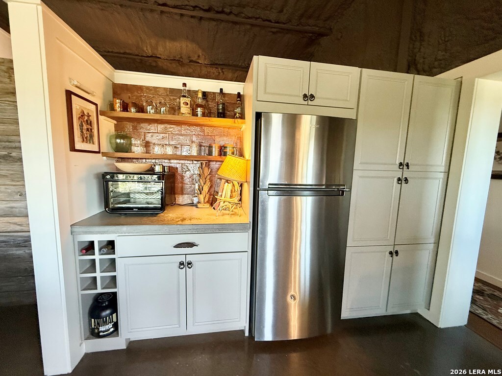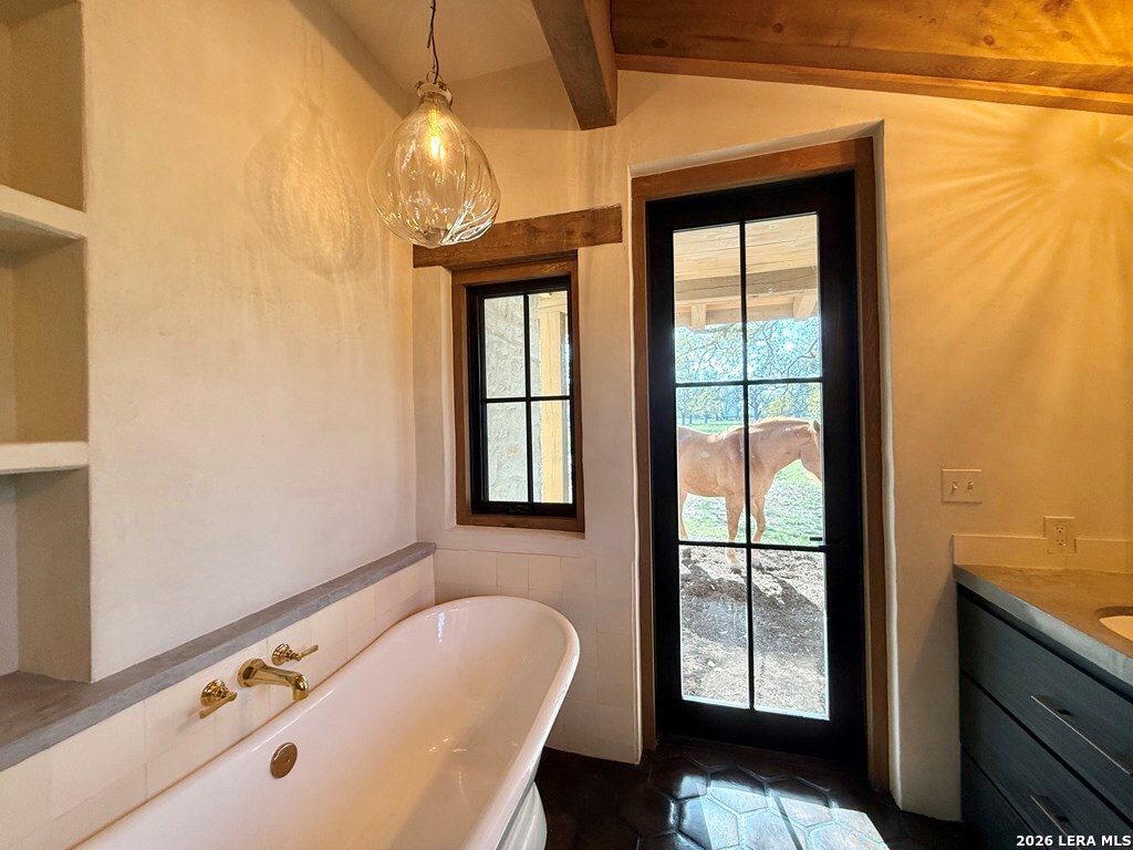 Beautiful custom home and guest house/barndominium on 37.66 AG exempt acres. This property is ideally located just 2 miles south of Harper, about 16 miles from Kerrville and 24 miles from Fredericksburg. The main home is custom throughout, with accents of Hill Country and Spanish-style/Old Country charm with modern and high end finishes. The compressed earth block construction provides energy efficiency, designed to keep the home cool in the hottest temperatures. The home has 2 bedrooms, 2 baths + office, features a beautifully landscaped courtyard, stained Saltillo tile, high end appliances, and easy indoor/outdoor living on the covered porch with fireplace. The home is also situated far off the highway on the cleared land, with many nice trees and room for horses or other animals. The barndominium has 1056 square feet of living space, 1 bedroom/1 bath with living and full kitchen and laundry. Attached is a 1600 SF workshop with large overhang and storage container with power. The property has two entrances off of Harper Rd and is fully fenced. The attention to detail on both the land and custom home has to be seen in person to be fully appreciated.