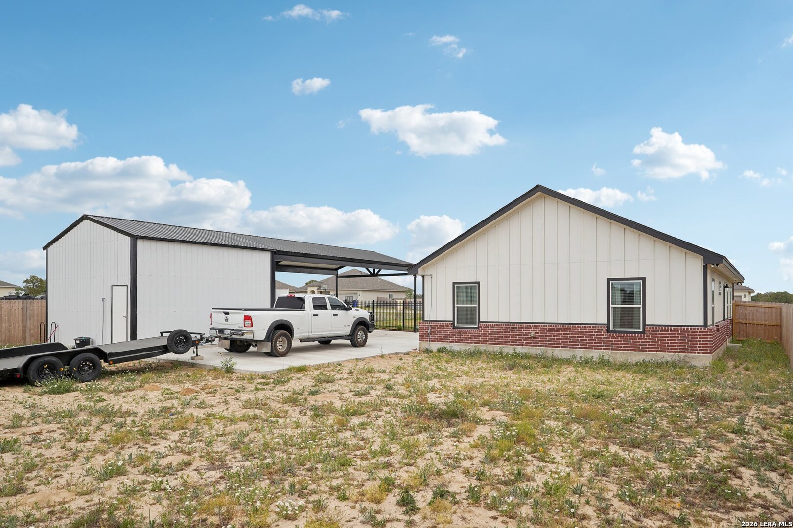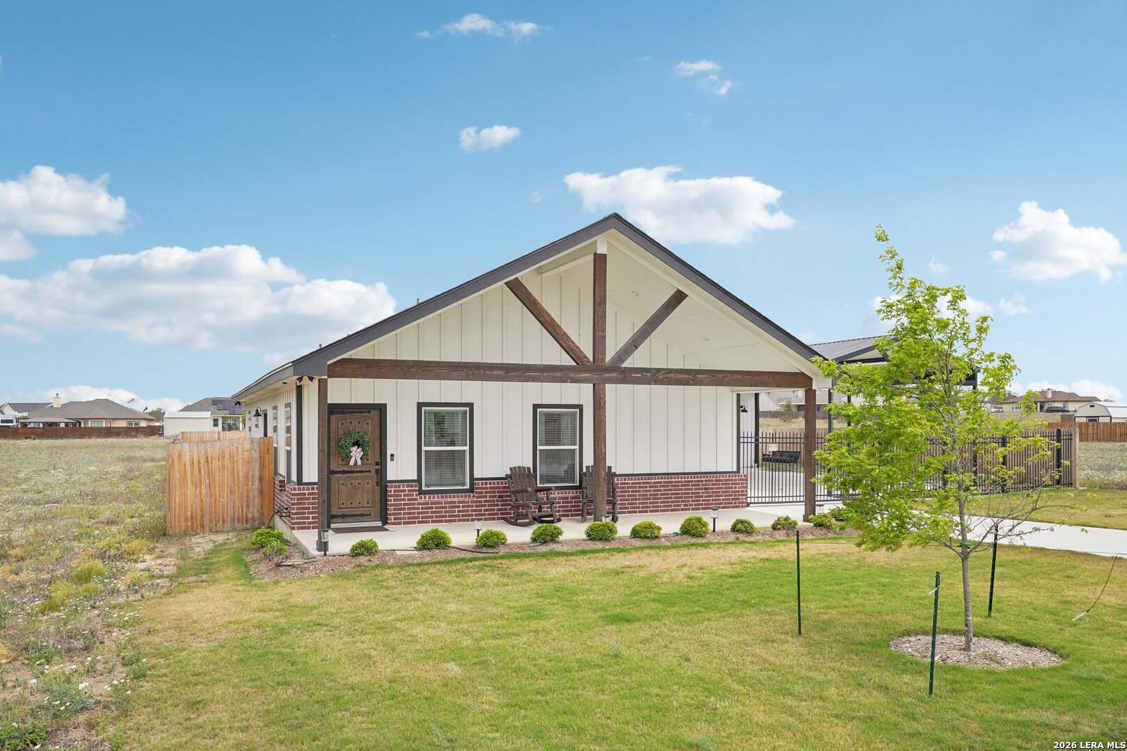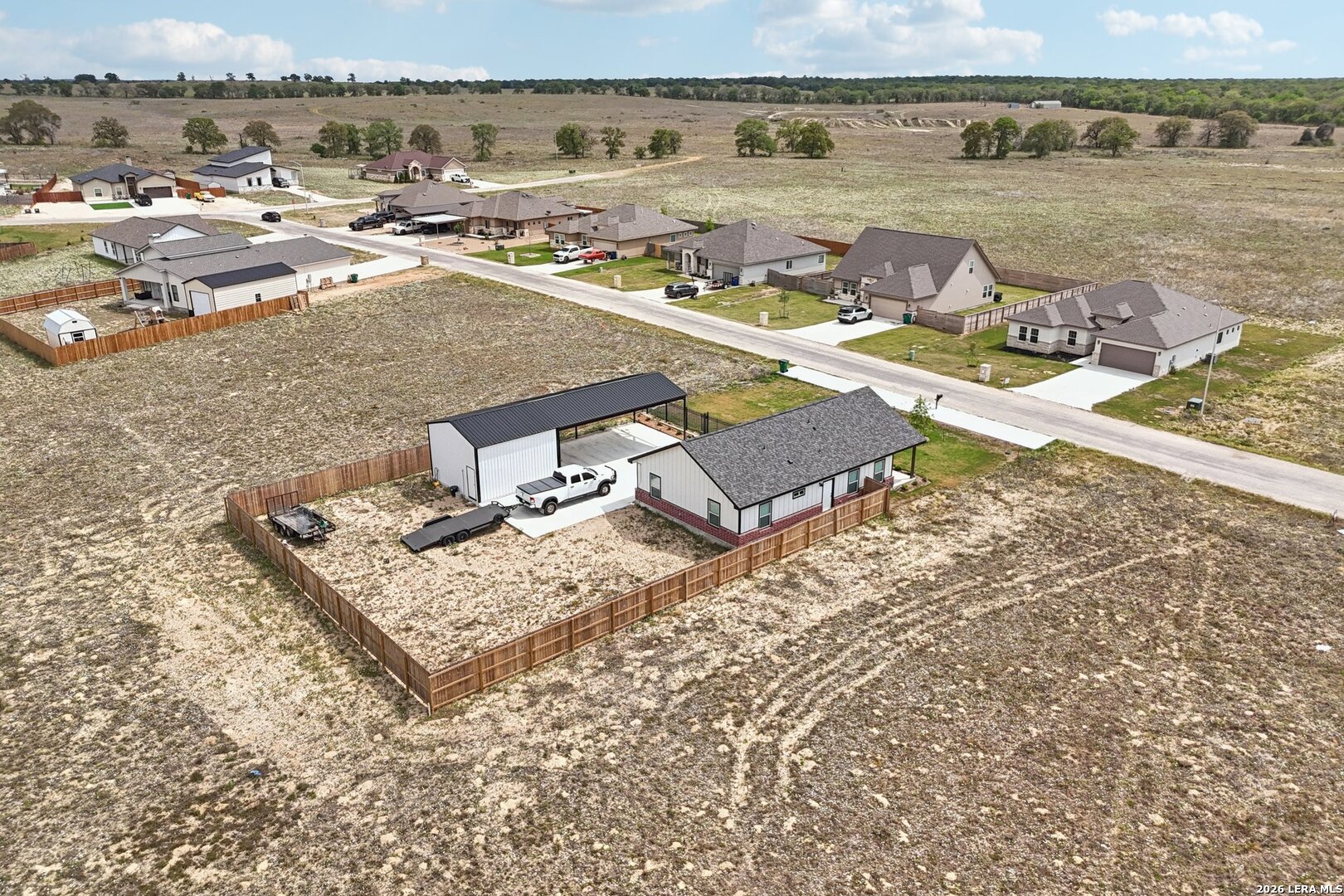 Experience modern sophistication and rural tranquility in this stunning La Vernia farmhouse. The open interior shines with natural light, featuring high ceilings, stylish shaker doors, and durable stained concrete floors. At the heart of the home, a chef-inspired kitchen boasts crisp white countertops and sleek dark cabinetry. Retreat to 3 spacious bedrooms offering oversized closets and clever storage solutions. The exterior is a hobbyist's dream, featuring an electric security fence, a new wooden privacy fence, and a 3-car carport. Highlights include an extended driveway for RV/boat storage and a newly added, powered workshop spacious enough for a vehicle or creative projects. So many improvements to mention. Don't miss out. Schedule your showing today!
