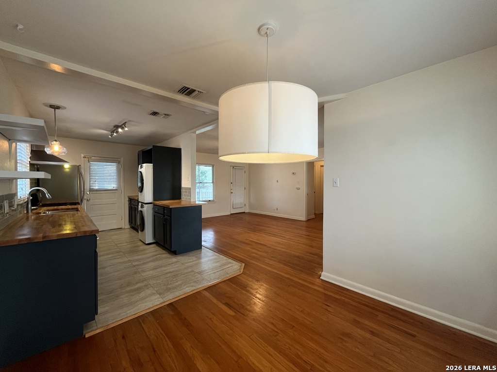Welcome to a bright and inviting 2-bed, 1-bath home that blends comfort with effortless living. Step inside to find ceramic tile and vinyl flooring that flows through spacious living and dining areas-perfect for relaxing, hosting, or simply enjoying your day-to-day routine. The well-appointed kitchen features solid countertops, a gas stove, dishwasher, microwave, and refrigerator, plus a convenient stacked washer and dryer tucked neatly into the adjoining laundry space. The primary bedroom offers a calm retreat with an ensuite that includes multiple closets for easy organization. Out back, unwind on the covered porch or patio while taking in the mature trees and the sense of privacy created by both chain-link and privacy fencing. A 1-car detached garage adds even more convenience. Situated near shopping and everyday essentials, this home offers ease, comfort, and a relaxed lifestyle ready for you to make it your own. "*Our award winning Resident Benefits Package (RBP) required program includes Liability Insurance, Pest Control, Monthly Air Filter Delivery, Move-in Concierge (utilities/cable/internet), Credit Building, Resident Rewards, Identity Fraud Protection and more for only $65/mo. *If you provide your own insurance policy, the RBP cost will be reduced. Optional Premium Upgrades Available as well, More details in application. *PET APPS $30 with credit card/debit payment per profile or $25 by ACH per profile. All information in this marketing material is deemed reliable but is not guaranteed. Prospective tenants are advised to independently verify all information, including property features, availability, and lease terms, to their satisfaction. *some marketing photos may be virtually staged images*"
