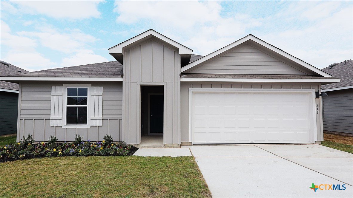 MOVE IN READY! The Irvine is one of our one-story floorplans offered at Hansford in Lockhart, Texas. This 4-bedroom, 2-bathroom home includes a 2-car garage within its 1,788 square feet of comfortable living space. Our homes in Hansford feature farmhouse exteriors. Step into this home from the covered entryway and make your way down the hall to the main living space. The open kitchen looks out to your dining area and family room, allowing for conversations to easily flow from all spaces. The L-shaped kitchen includes granite countertops, a large island with an undermount sink, a corner pantry closet, stainless-steel appliances and 36’’ upper cabinets. Off the family room is the primary bedroom, with its own private bathroom. This relaxing bathroom space features a 5’ walk in shower, vanity, private toilet area with a door, and an oversized walk-in closet. At the front of the house, you will find bedroom 2 and 3, with the secondary bathroom conveniently located between the rooms. Bathroom 2 includes a tub/shower combination and open shelving for extra storage or décor. Across the foyer and down a short hall is the utility room and bedroom 4. Whether you use these rooms as an office, child’s room or guest room, there is enough space for work, sleep and play. The Irvine includes vinyl flooring throughout the common areas of the home, and carpet in the bedrooms. All our new homes feature a covered back patio, full sod, an irrigation system in the front and back yard, and a 6’ privacy fence around the back yard. This home includes our America’s Smart Home base package, which includes the Amazon Echo Pop, Front Doorbell, Front Door Deadbolt Lock, Home Hub, Thermostat, and Deako® Smart Switches.