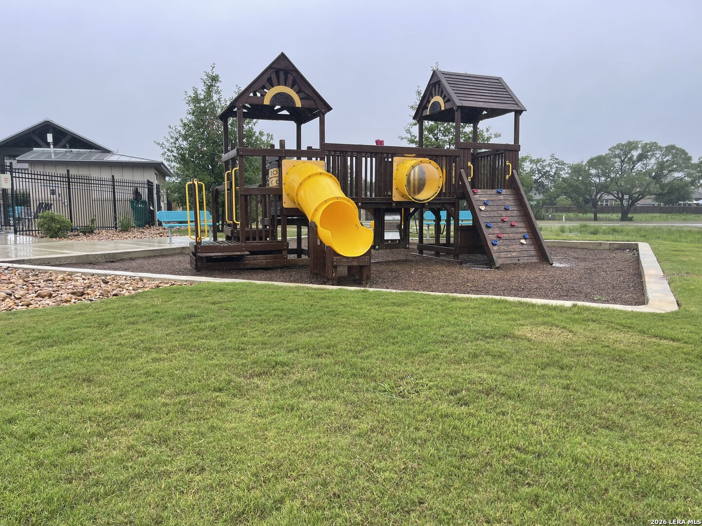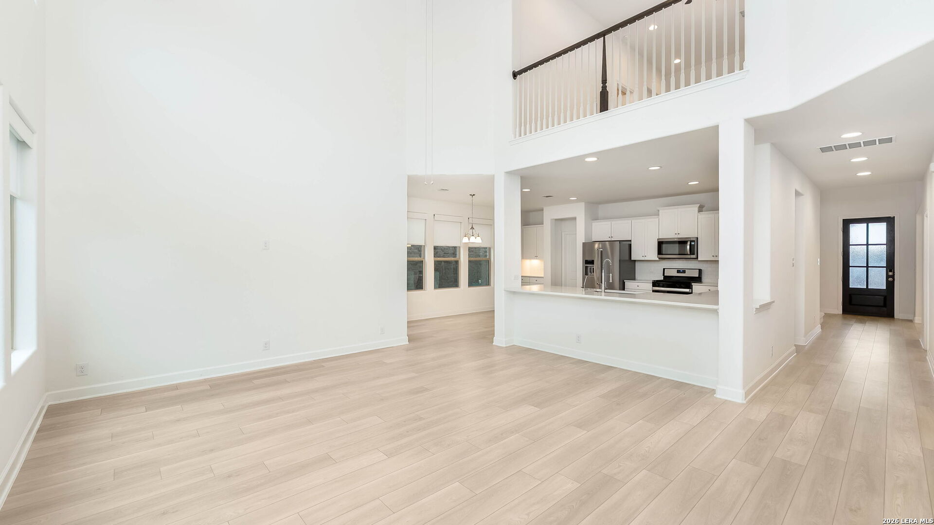 Welcome to this stunning 4-bedroom, 3.5-bathroom home designed for both comfort and entertaining. Featuring soaring 20+ foot ceilings in the living room, this home is filled with natural light and offers an open, airy feel that's perfect for hosting family and friends. The kitchen is beautifully appointed with quartz countertops and plenty of space to cook and gather. For added convenience, the washer, dryer, and refrigerator are all included making this home truly move-in ready. Built with four-sided brick, the exterior offers both timeless appeal and low maintenance. Step outside and enjoy the privacy of no rear neighbors, creating a peaceful backyard setting. Located just a one-minute walk from the community pool and playground, you'll have easy access to great neighborhood amenities right at your doorstep.