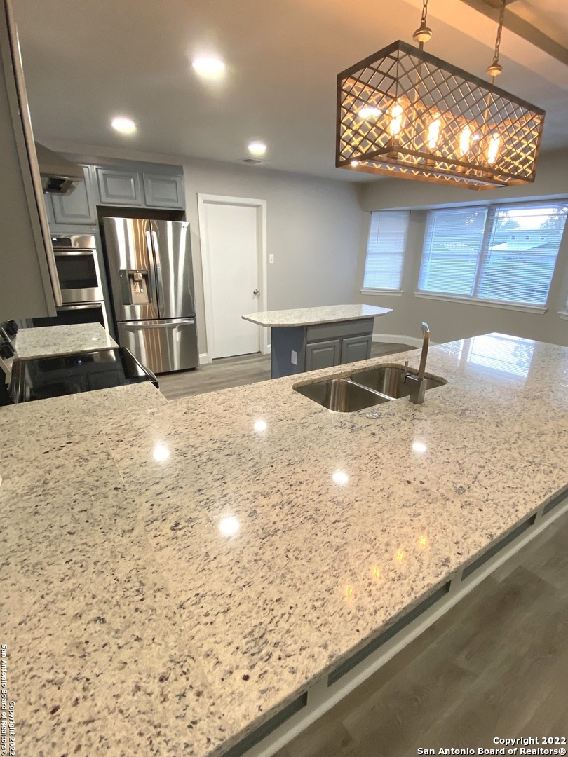 RARE FIND IN THE AREA!! LOCATION LOCATION LOCATION!!! A few blocks away from Old Basin Olmos Park, near to movie theaters, HEB, shopping (Quarry, Pearl and North Star Mall), restaurants, entertainment, minutes from downtown and International Airport. A few blocks from 281 and 410 highways. No Stairs! This gorgeous one story 5 bedrooms, 3 bathrooms, 2 car garage and 6 car driveway home is ready to move in with many updates to include beautiful new floors, no carpet, all new fresh interior neutral paint, fully renovated, granite countertops in kitchen and all 3 bathrooms, modern look and open floor plan. Open floor plan many windows allow a lot of natural light in everywhere, you will also find several additional storage closets throughout the house. Home also has a spacious outdoor space with concrete patio and leveled yard ideal for entertaining and playing. Master bedroom has his and hers walk in closets. Kitchen has been fully renovated, with an optional dedicated room for pantry, granite counter tops and designer backsplash, plenty of space with cabinets and shelves. All 5 bedrooms are oversized; you won't find bedrooms this large anymore. Media room could also be use as game room, bonus room located next to kitchen could be used as office/pantry. Improve your quality of life at this amazing and well kept home ideal for anyone looking to live in a well established neighborhood.