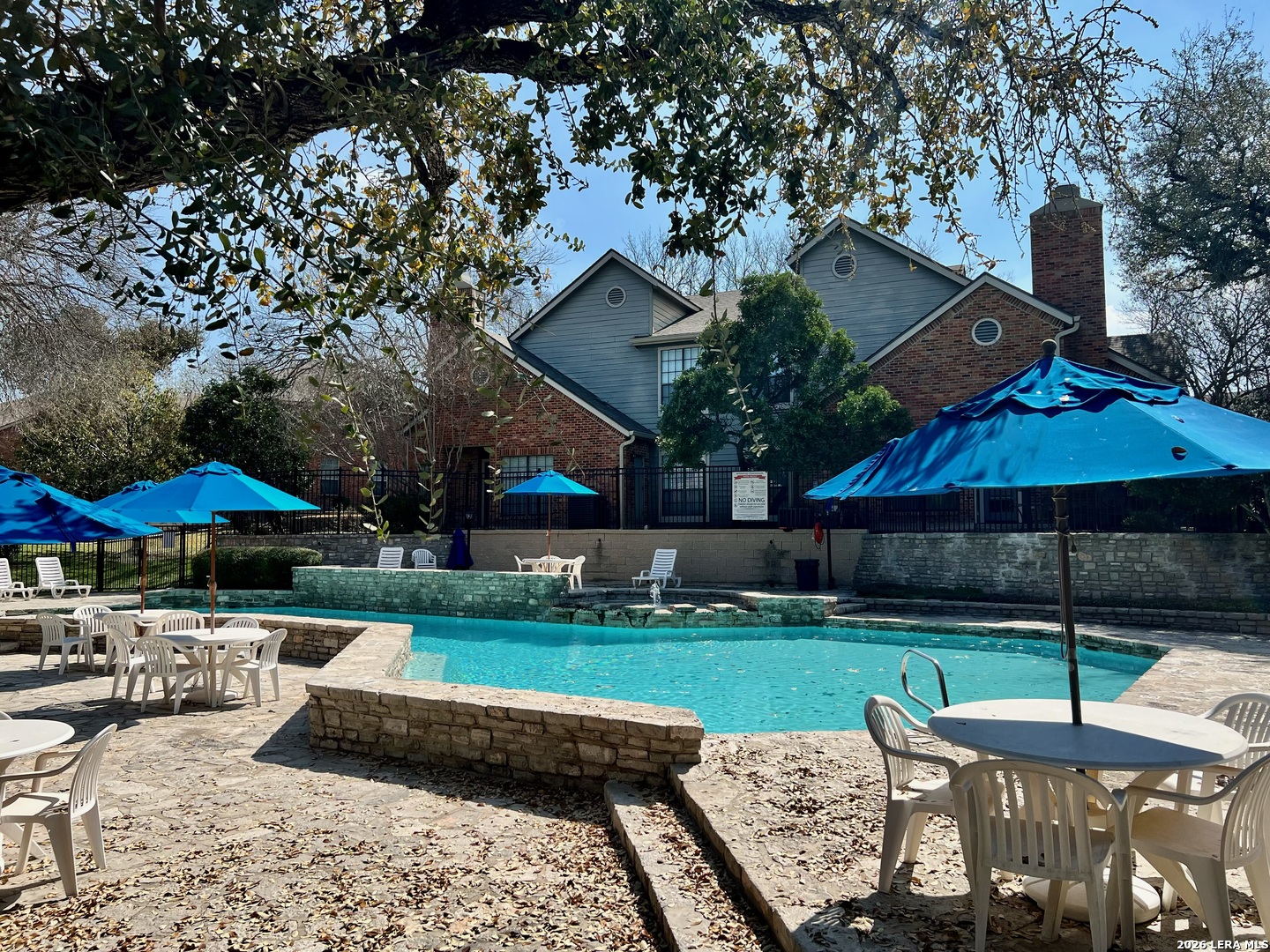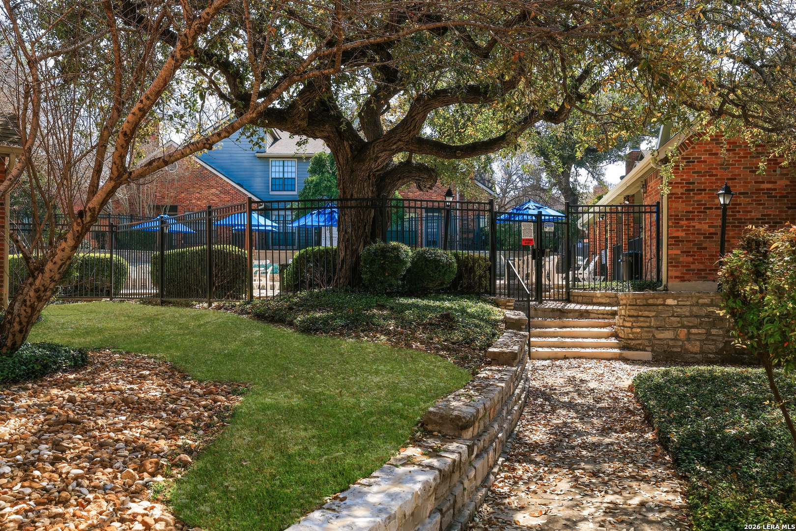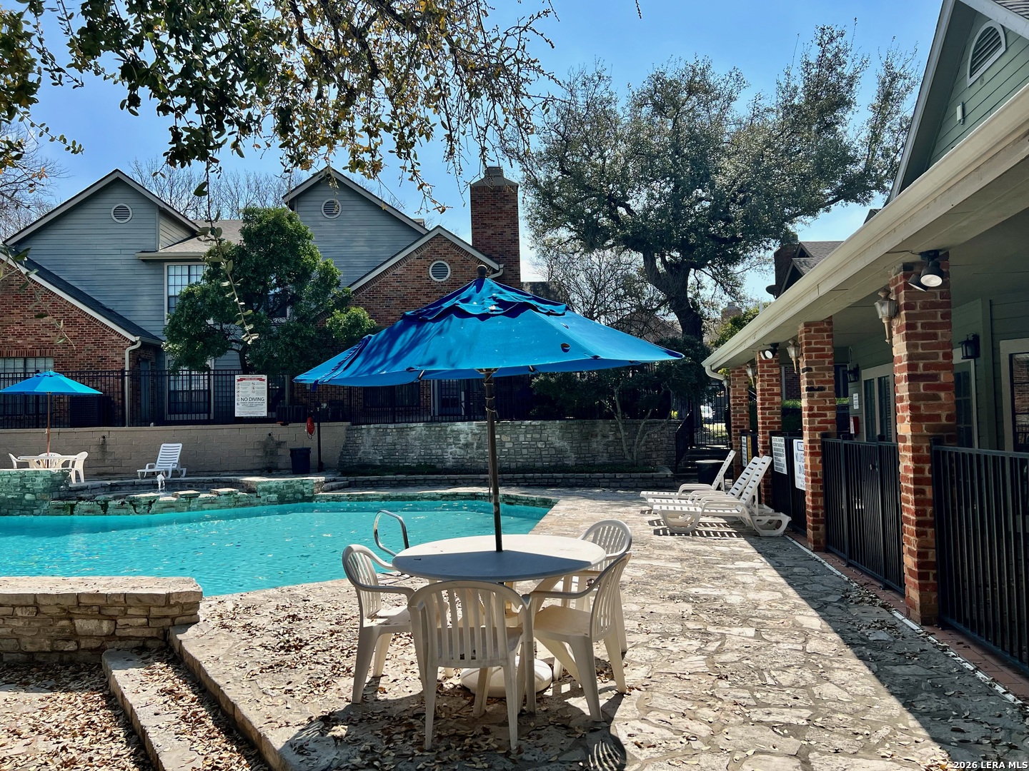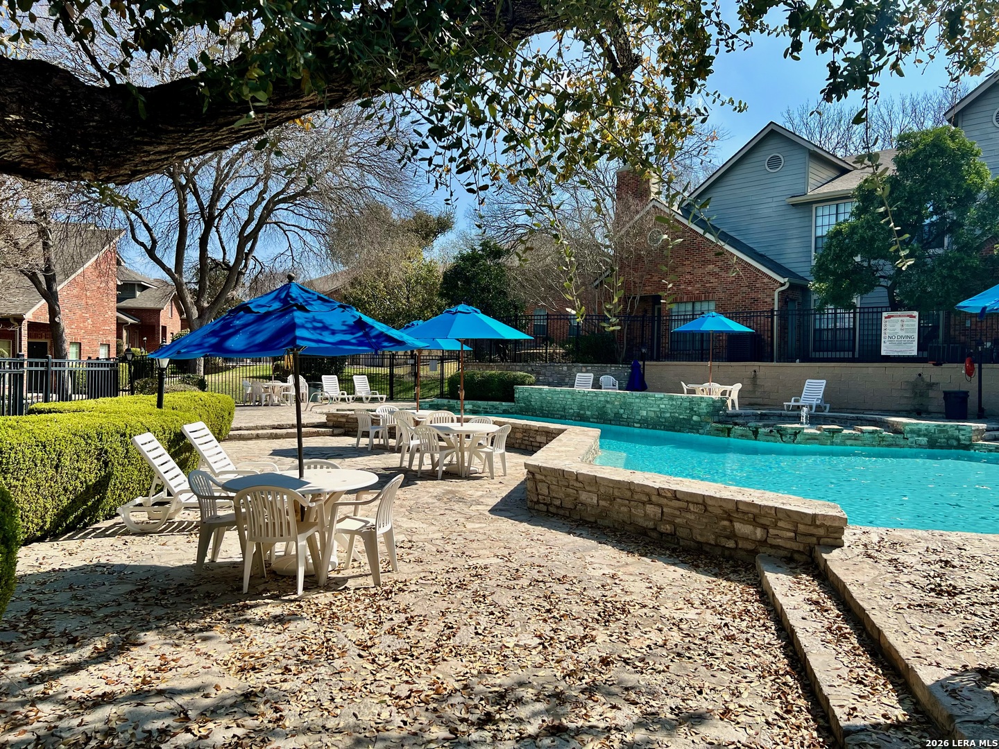 Welcome to this beautifully maintained 2-bedroom, 2.5-bath condominium located in the highly desirable Medical Center area. With easy access to IH-10 and Loop 410, this home offers unbeatable convenience and is perfect for medical students, residents, and healthcare professionals looking to be close to work while enjoying a peaceful community setting. Both spacious bedrooms are located upstairs and feature their own private full bathrooms, providing the ideal layout for privacy and comfort. A convenient half bath is located downstairs for guests. The kitchen is filled with natural light from a charming garden window and showcases granite countertops, freshly painted cabinetry, and all included appliances-stove, refrigerator, dishwasher, and microwave. The indoor laundry room comes complete with washer and dryer for added convenience. Downstairs features tile flooring throughout, and a cozy fireplace that creates a warm and inviting living space. Step outside to a lovely covered patio overlooking the community pool, offering beautiful views and close proximity to both the pool and clubhouse-perfect for relaxing or entertaining. This home blends comfort, thoughtful updates, and an exceptional location in the heart of the Medical Center. For buyers seeking a move-in ready option, the condominium also offers a turnkey opportunity, with all furnishings available for purchase through a separate bill of sale.