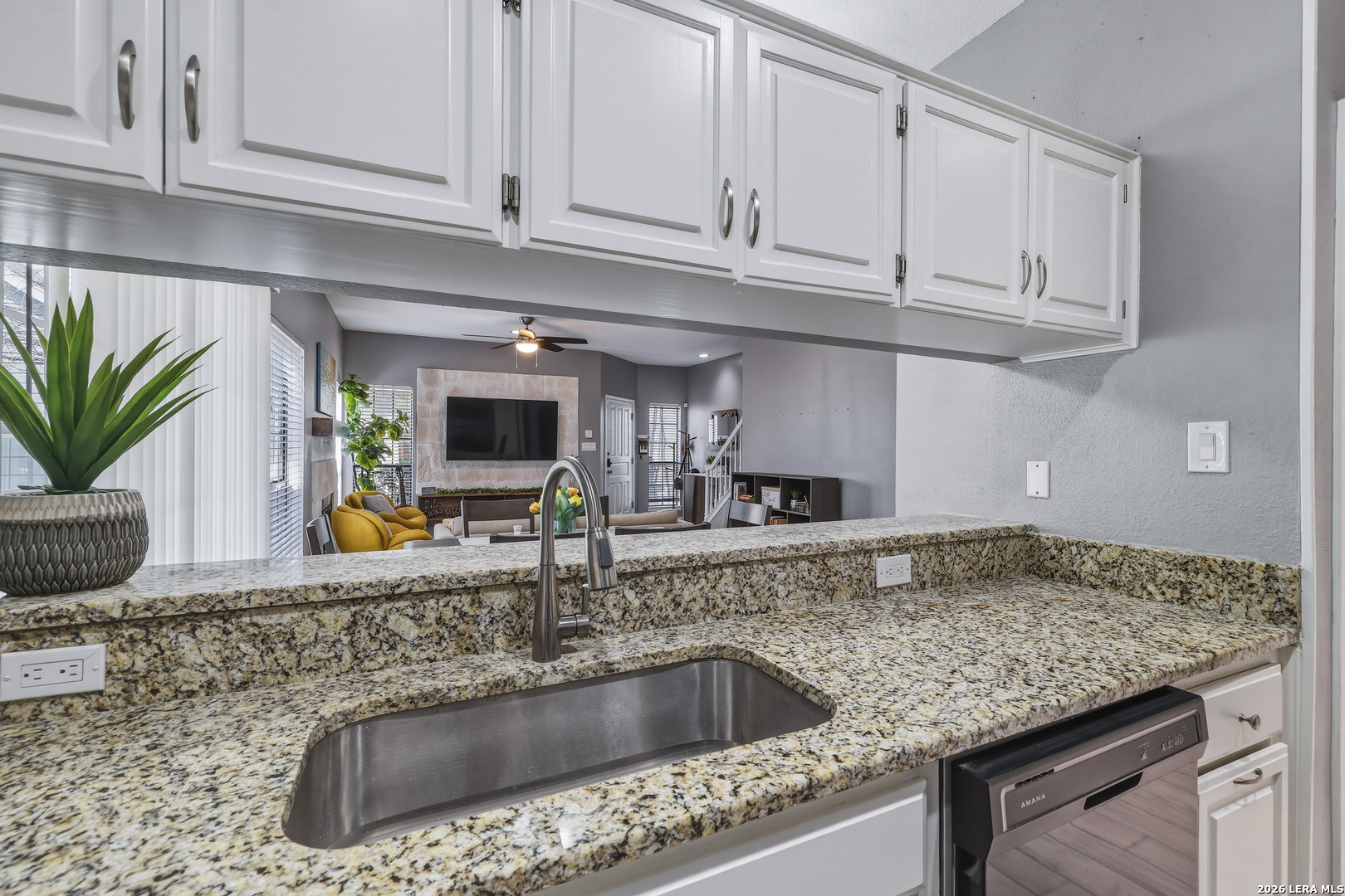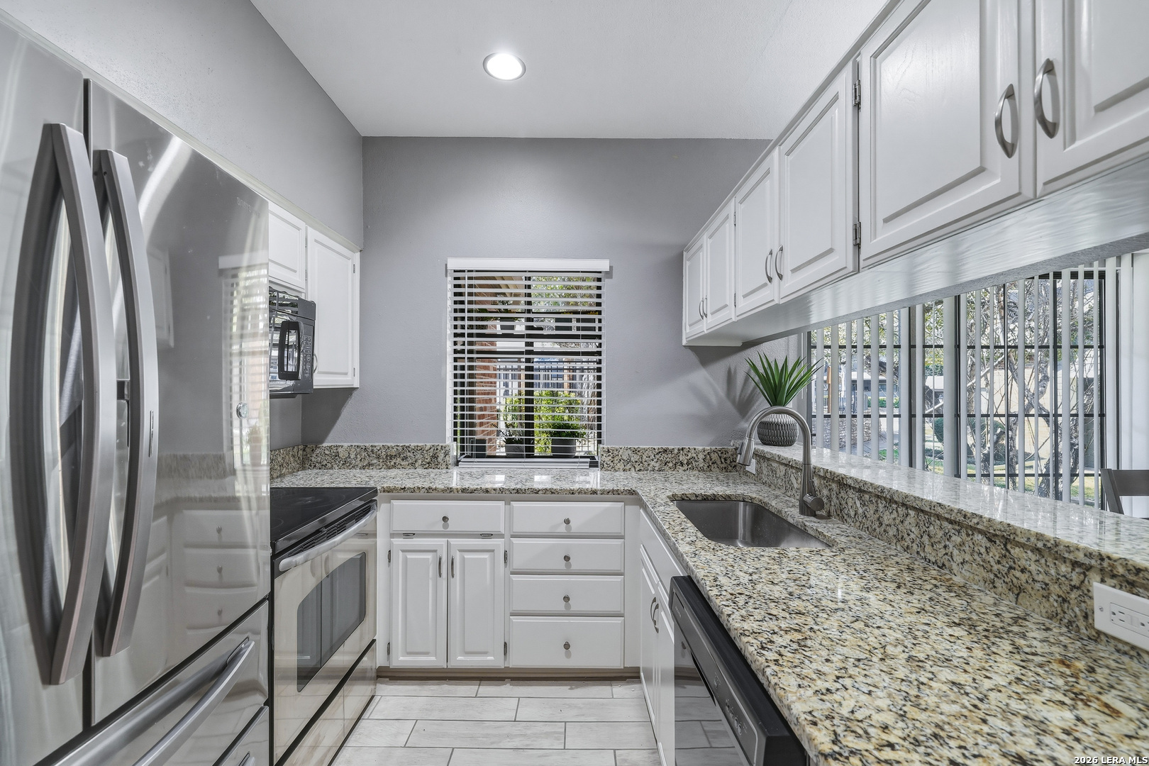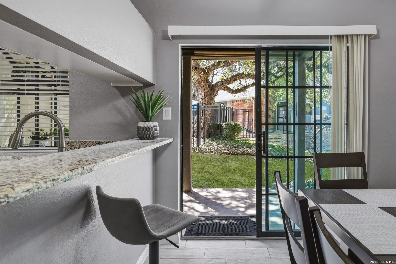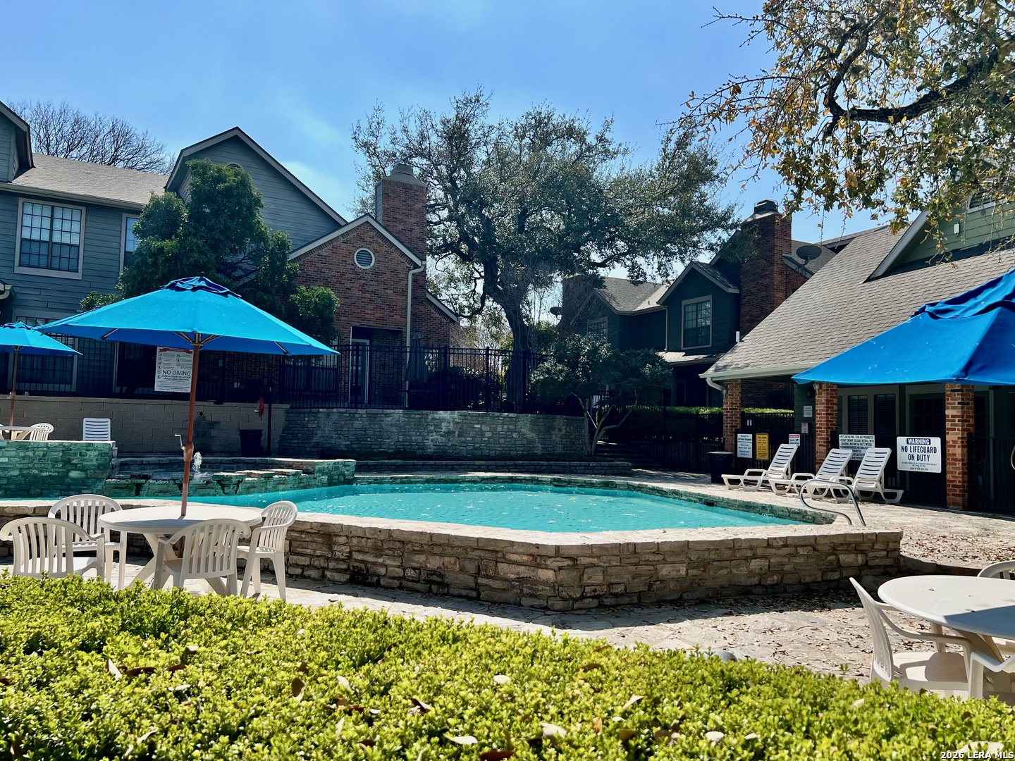 Welcome to this beautifully maintained 2-bedroom, 2.5-bath condominium located in the highly desirable Medical Center area. With easy access to IH-10 and Loop 410, this home offers unbeatable convenience and is perfect for medical students, residents, and healthcare professionals looking to be close to work while enjoying a peaceful community setting. Both spacious bedrooms are located upstairs and feature their own private full bathrooms, providing the ideal layout for privacy and comfort. A convenient half bath is located downstairs for guests. The kitchen is filled with natural light from a charming garden window and showcases granite countertops, freshly painted cabinetry, and all included appliances-stove, refrigerator, dishwasher, and microwave. The indoor laundry room comes complete with washer and dryer for added convenience. Downstairs features tile flooring throughout, and a cozy fireplace that creates a warm and inviting living space. Step outside to a lovely covered patio overlooking the community pool, offering beautiful views and close proximity to both the pool and clubhouse-perfect for relaxing or entertaining. This home blends comfort, thoughtful updates, and an exceptional location in the heart of the Medical Center. For buyers seeking a move-in ready option, the condominium also offers a turnkey opportunity, with all furnishings available for purchase through a separate bill of sale.