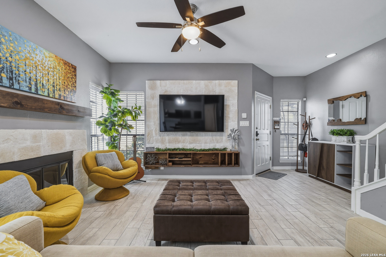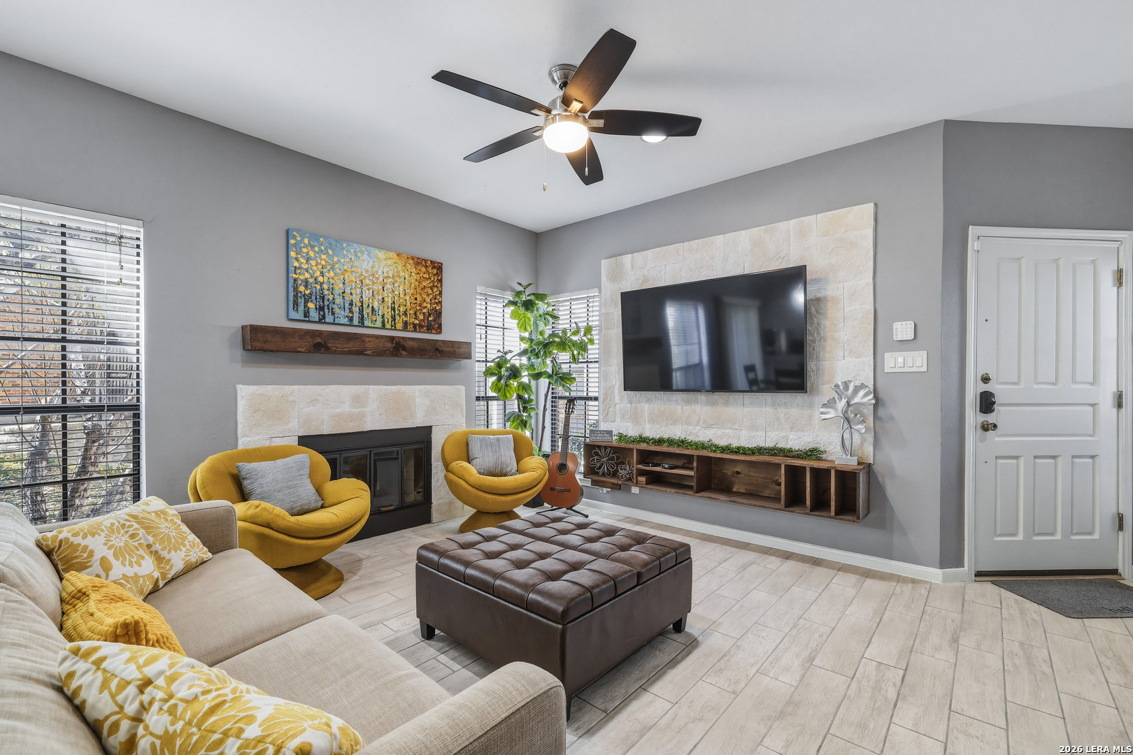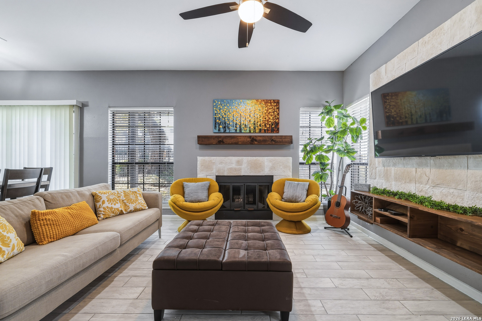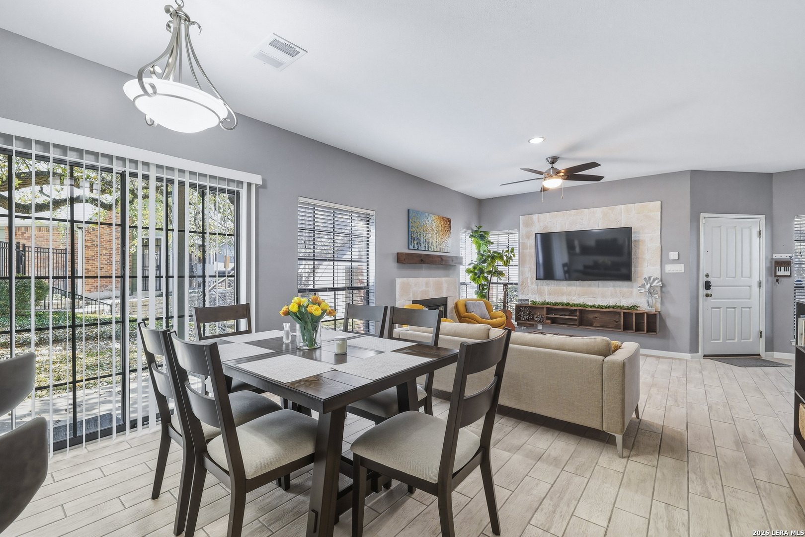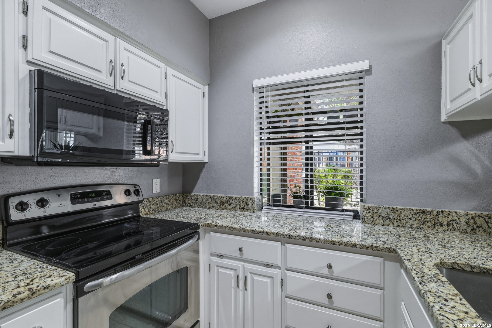 Welcome to this beautifully maintained 2-bedroom, 2.5-bath condominium located in the highly desirable Medical Center area. With easy access to IH-10 and Loop 410, this home offers unbeatable convenience and is perfect for medical students, residents, and healthcare professionals looking to be close to work while enjoying a peaceful community setting. Both spacious bedrooms are located upstairs and feature their own private full bathrooms, providing the ideal layout for privacy and comfort. A convenient half bath is located downstairs for guests. The kitchen is filled with natural light from a charming garden window and showcases granite countertops, freshly painted cabinetry, and all included appliances-stove, refrigerator, dishwasher, and microwave. The indoor laundry room comes complete with washer and dryer for added convenience. Downstairs features tile flooring throughout, and a cozy fireplace that creates a warm and inviting living space. Step outside to a lovely covered patio overlooking the community pool, offering beautiful views and close proximity to both the pool and clubhouse-perfect for relaxing or entertaining. This home blends comfort, thoughtful updates, and an exceptional location in the heart of the Medical Center. For buyers seeking a move-in ready option, the condominium also offers a turnkey opportunity, with all furnishings available for purchase through a separate bill of sale.