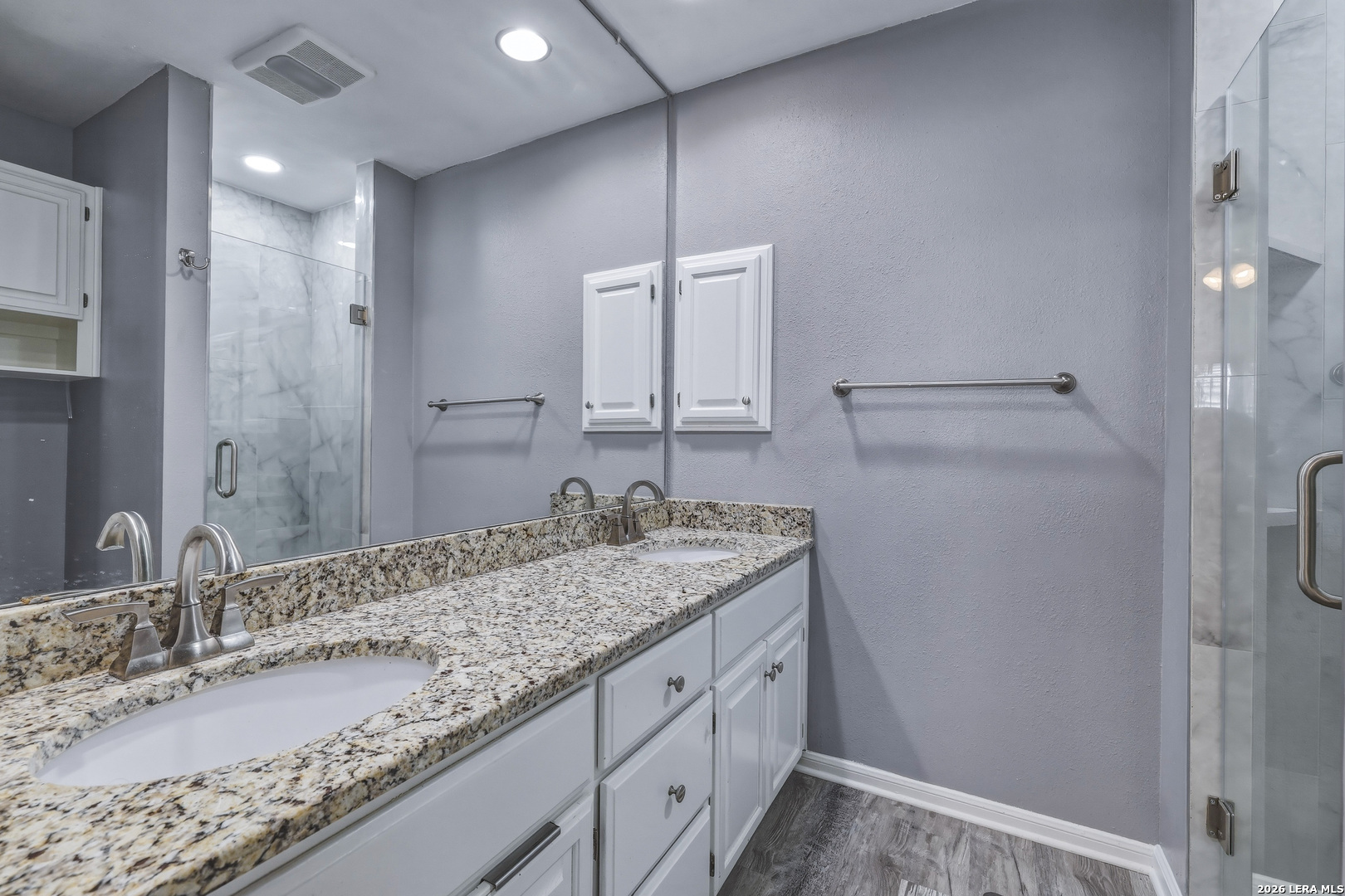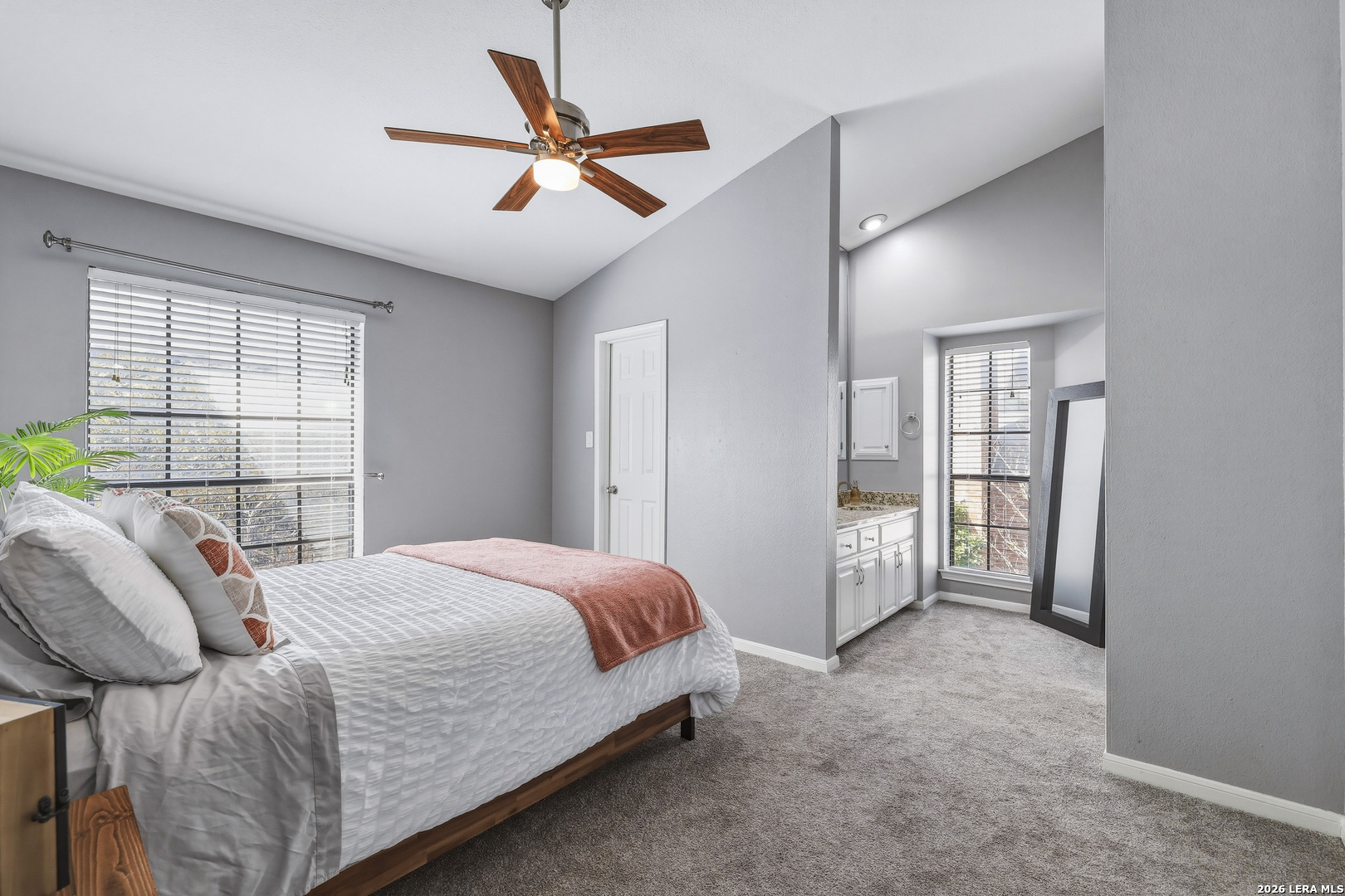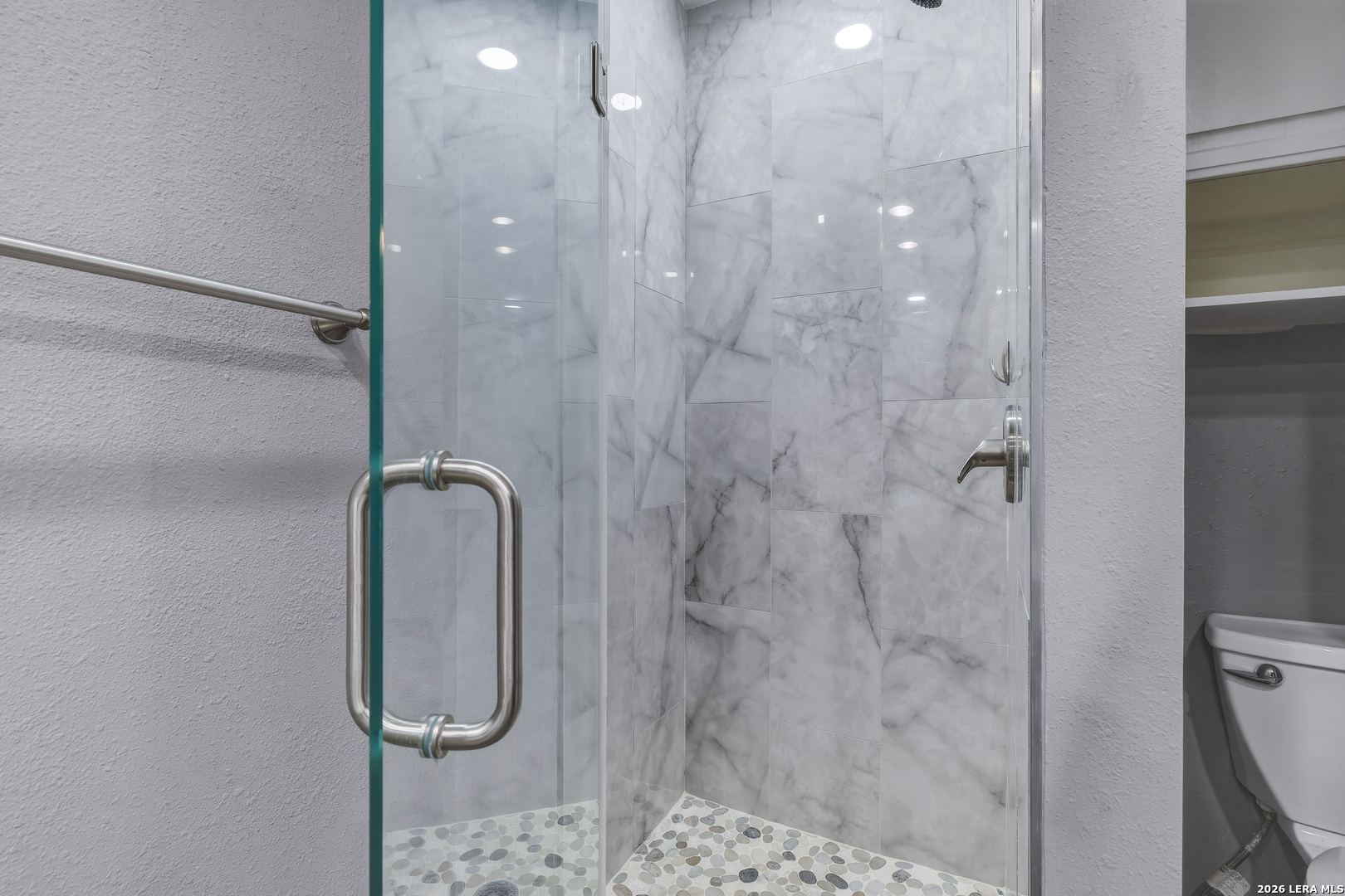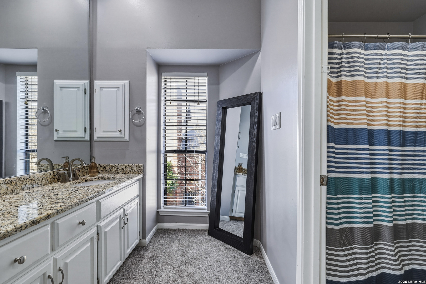 Welcome to this beautifully maintained 2-bedroom, 2.5-bath condominium located in the highly desirable Medical Center area. With easy access to IH-10 and Loop 410, this home offers unbeatable convenience and is perfect for medical students, residents, and healthcare professionals looking to be close to work while enjoying a peaceful community setting. Both spacious bedrooms are located upstairs and feature their own private full bathrooms, providing the ideal layout for privacy and comfort. A convenient half bath is located downstairs for guests. The kitchen is filled with natural light from a charming garden window and showcases granite countertops, freshly painted cabinetry, and all included appliances-stove, refrigerator, dishwasher, and microwave. The indoor laundry room comes complete with washer and dryer for added convenience. Downstairs features tile flooring throughout, and a cozy fireplace that creates a warm and inviting living space. Step outside to a lovely covered patio overlooking the community pool, offering beautiful views and close proximity to both the pool and clubhouse-perfect for relaxing or entertaining. This home blends comfort, thoughtful updates, and an exceptional location in the heart of the Medical Center. For buyers seeking a move-in ready option, the condominium also offers a turnkey opportunity, with all furnishings available for purchase through a separate bill of sale.