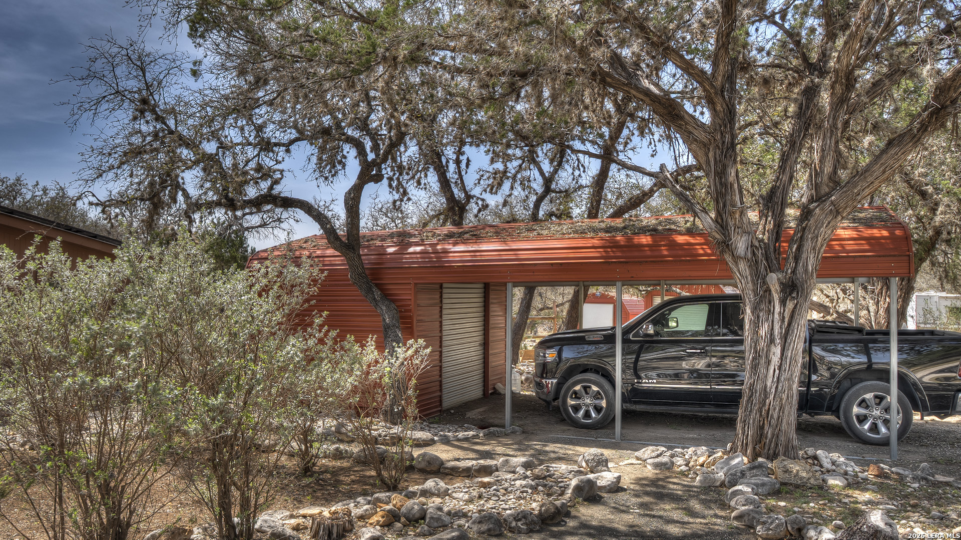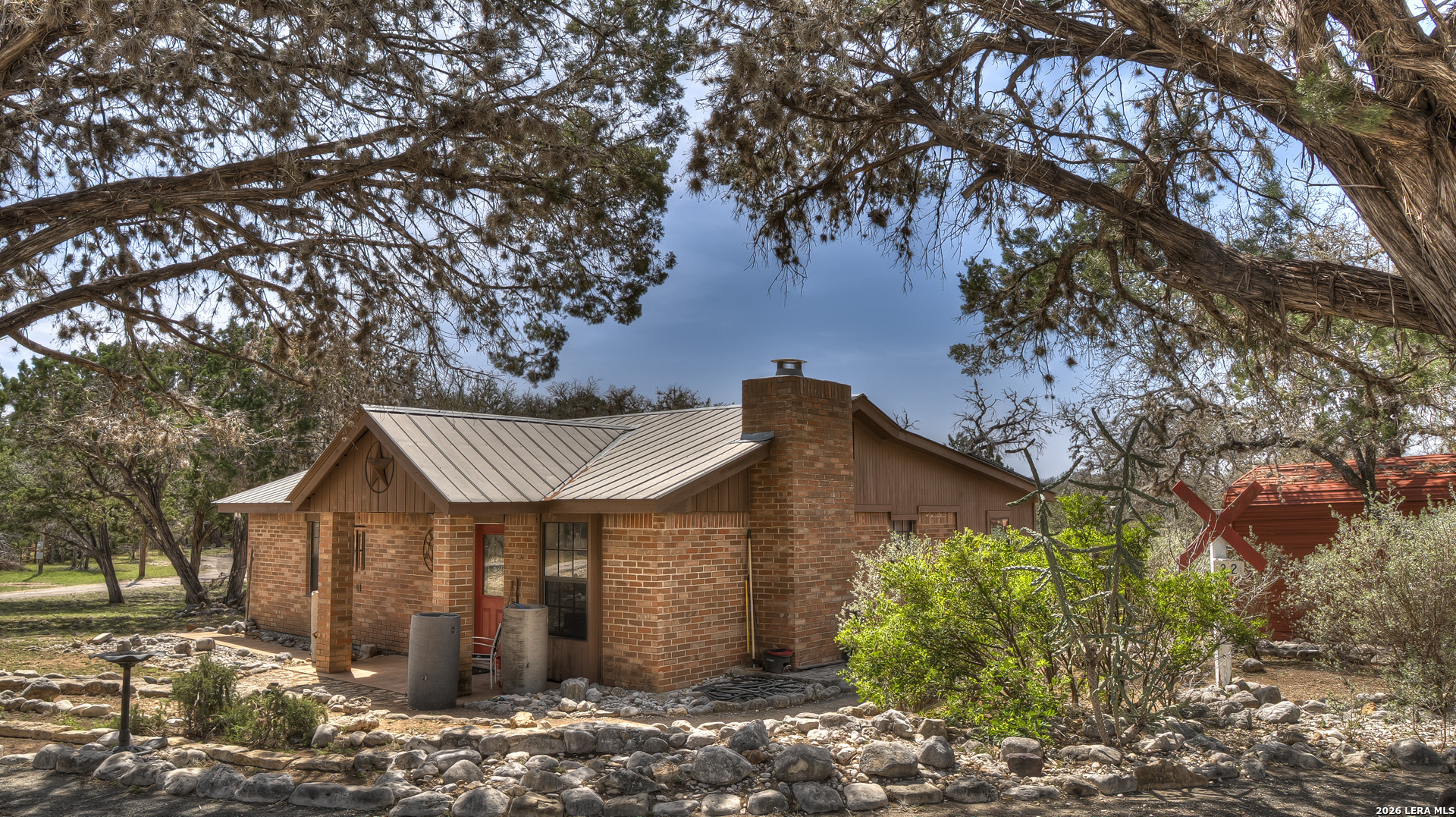 This beautifully updated brick home in the gated community of Twin Forks Estates features 2 spacious bedrooms, 2 bathrooms, and a bonus room that can be used as an office or third bedroom. Enjoy the beautifully remodeled kitchen with all-new countertops, cabinetry, sink, and stainless-steel appliances-perfect for any home chef. The main living area features a cozy wood-burning fireplace, and the large deck overlooking a fenced backyard is the ideal place to watch the wildlife while enjoying quiet mornings. New A/C unit. Extra amenities include an 8x10 storage building, 12x20 carport, and 10x14 garage. Situated on nearly an acre of land with numerous shady trees and ample space for a potential workshop or guest quarters. Best of all-residents have exclusive access to a coveted stretch of the Frio River ideal for swimming, fishing, or simply taking in the serene surroundings. Experience the perfect blend of privacy, natural beauty, and community amenities in your new Hill Country home!