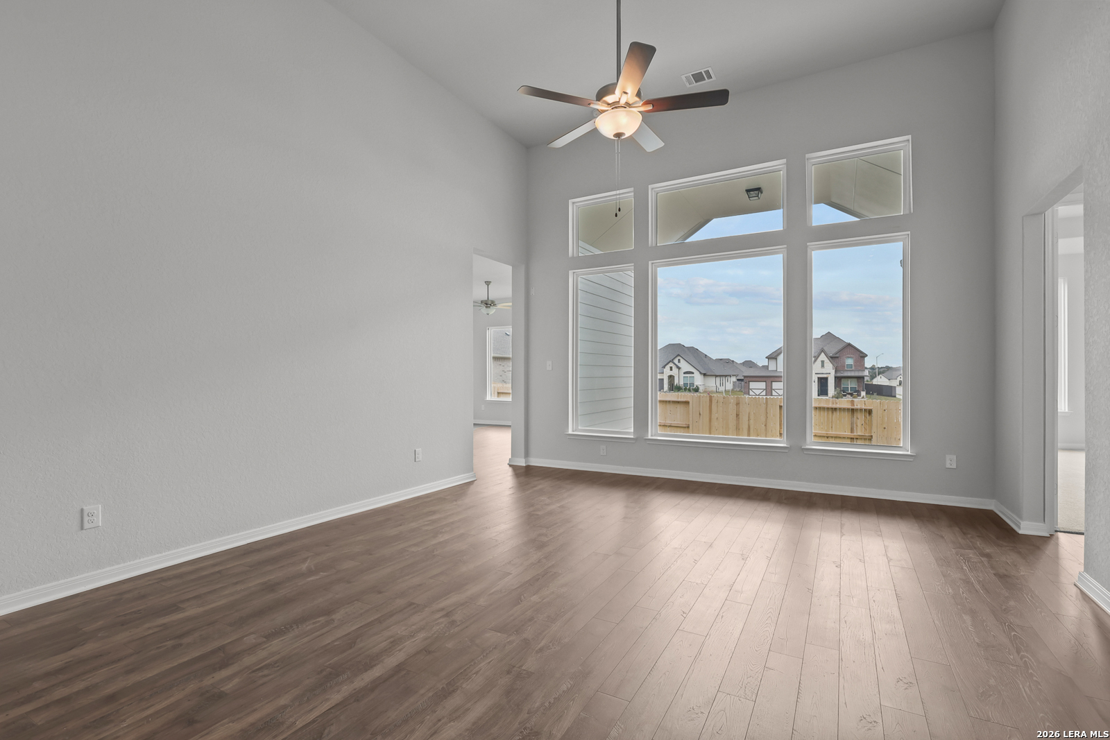 This spacious one-story floor plan with a 3-car garage, a 5' storage space and oversized laundry room with a mud bench is just what you have been searching for! An elegant 8' front door opens to a grand foyer with soaring 14 foot ceilings and Revwood floors that lead to a large family room, an open-concept kitchen, and a dining space. The family chef will enjoy the gourmet kitchen, with its built-in stainless steel appliances, gas cooktop, quartz countertops and walk in pantry. A private study offers a dedicated space for working from home. The primary suite features a bow window in the bedroom, a free-standing tub and separate shower in the bathroom, and two large walk-in closets. The game room provides a flexible space for the whole family to play or relax. A first-floor secondary bedroom with en-suite bathroom is perfect for guests. Don't miss out on this gorgeous home!