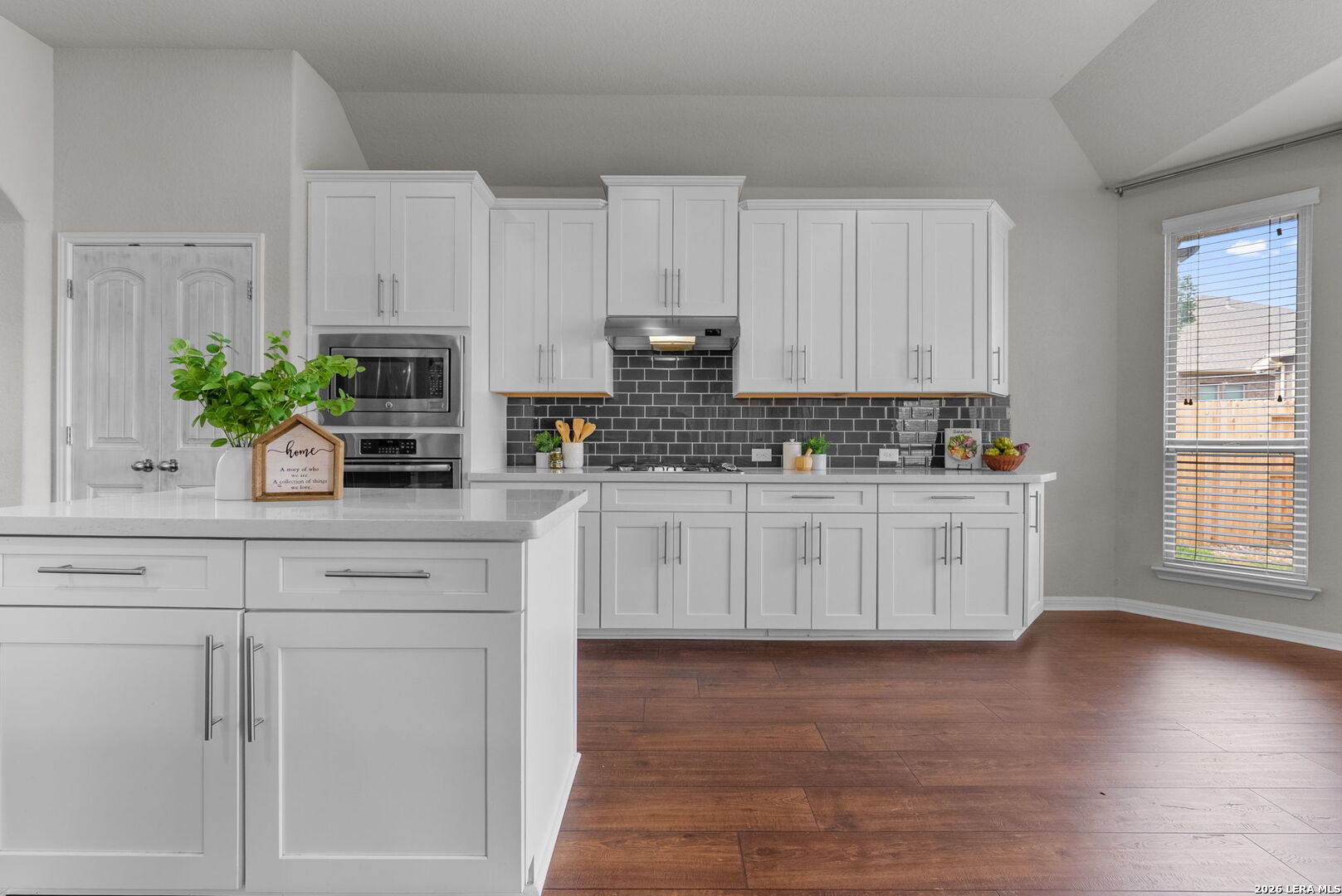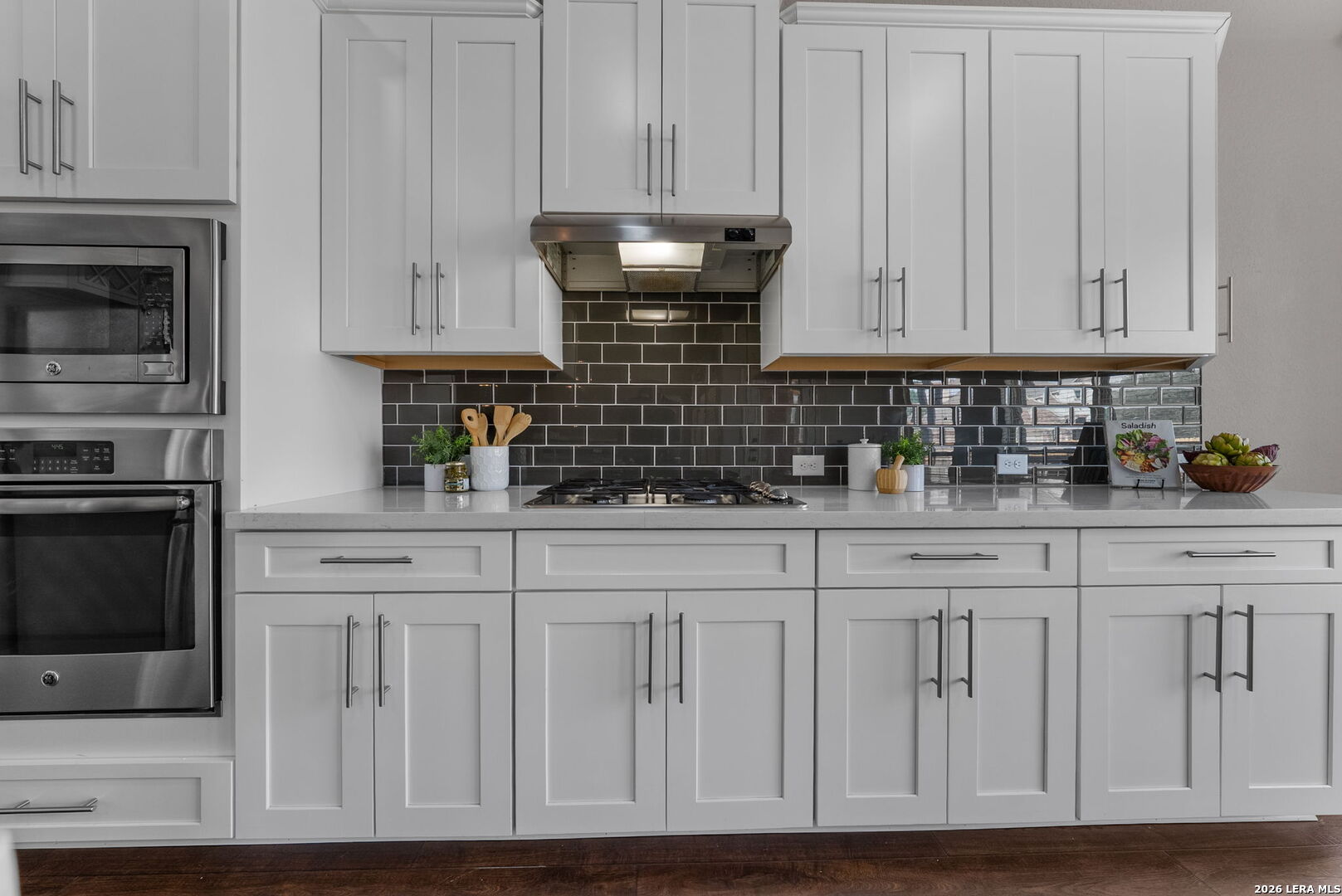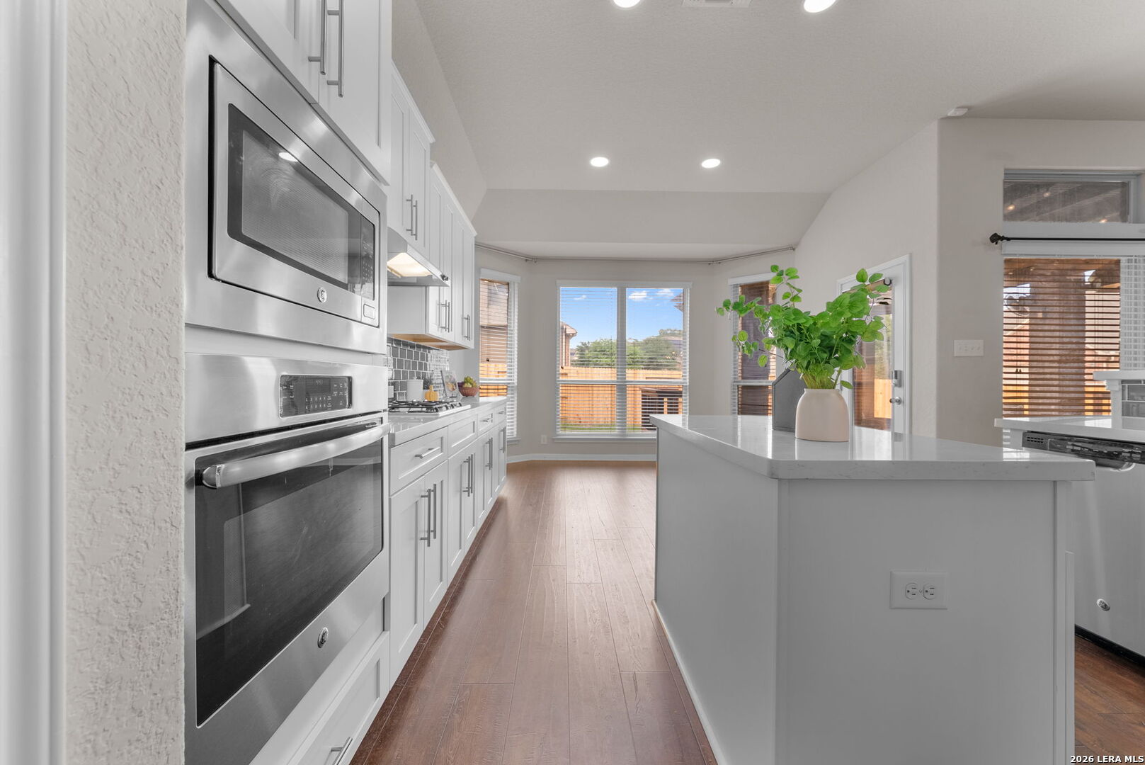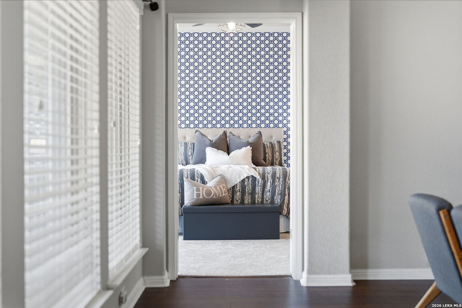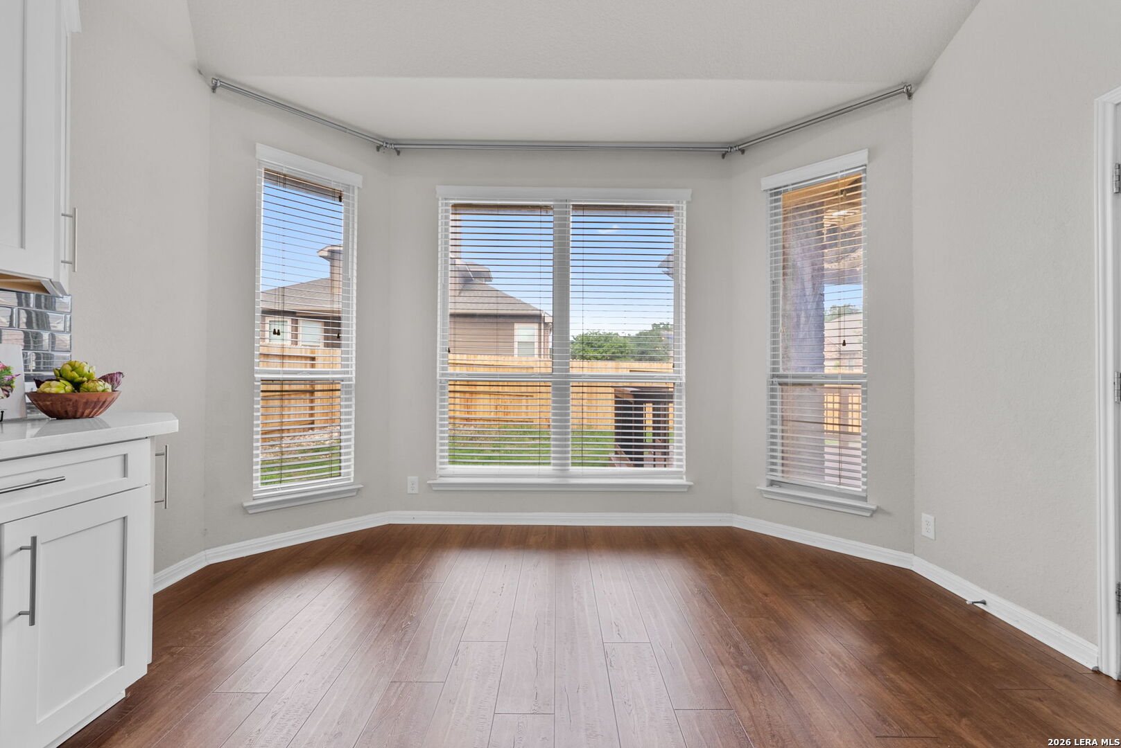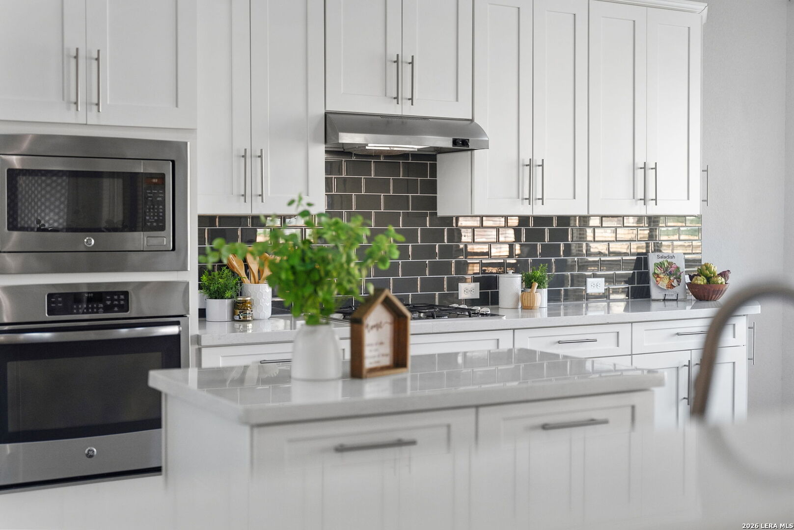 Step into elevated living in the gated enclave of Wortham Oaks, where this meticulously maintained 1.5-story home sits on an oversized corner lot just under a quarter acre. Featuring 4 bedrooms, 2 full baths, and 2 half baths, the functional layout places all bedrooms and the laundry room downstairs, with a private upstairs game room and half bath ideal for guests or entertaining. The open-concept design is anchored by a well-appointed kitchen with white shaker cabinetry, quartz countertops, gas cooking, stainless steel appliances, and a modern subway tile backsplash. The spacious living area offers wood and tile flooring, abundant natural light, and a striking floor-to-ceiling stone fireplace. The primary suite serves as a true retreat with bay windows and dual closets, while added features like surround sound wiring enhance everyday living. Step outside to a covered patio and extended deck overlooking the oversized yard, offering plenty of space to relax or entertain. This home stands out for its lot size, layout, and upgrades. Schedule your private showing today to experience everything this home has to offer.