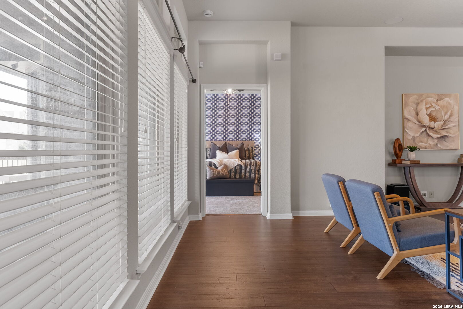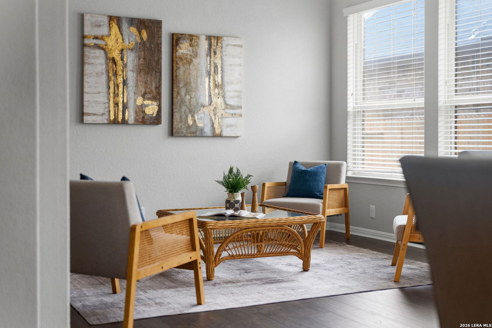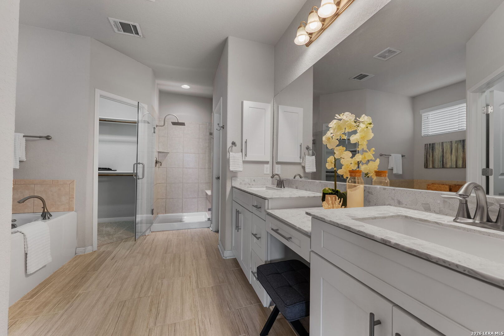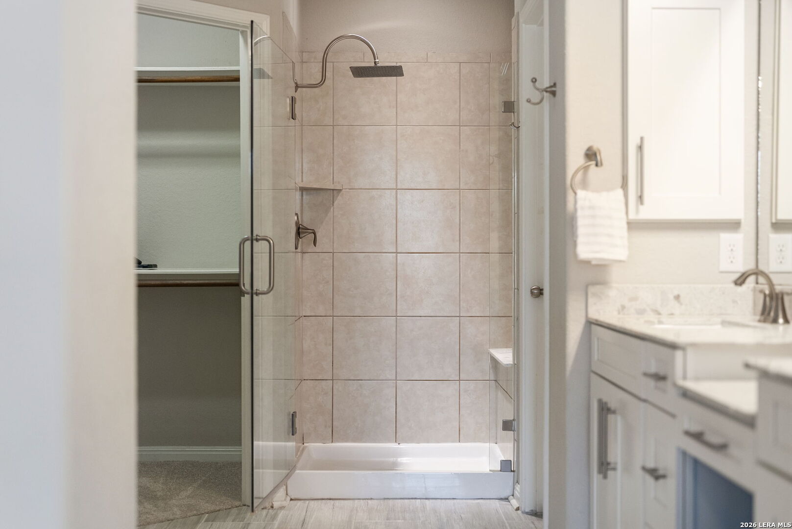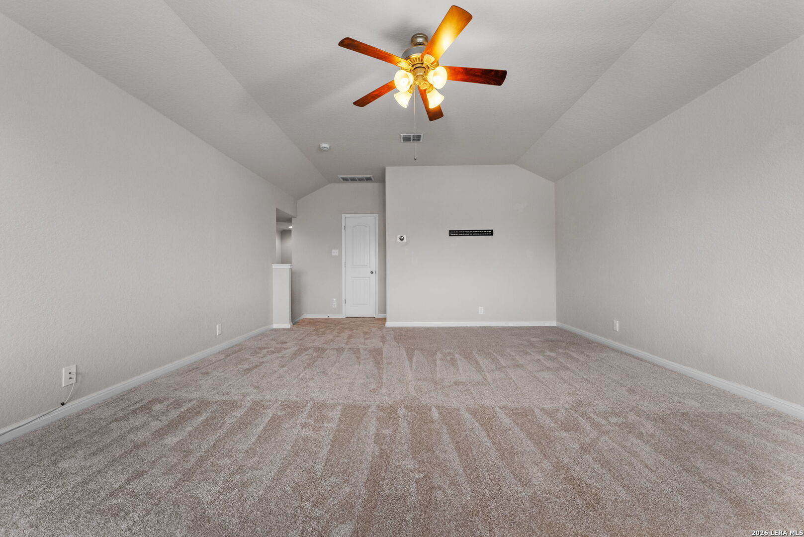 Step into elevated living in the gated enclave of Wortham Oaks, where this meticulously maintained 1.5-story home sits on an oversized corner lot just under a quarter acre. Featuring 4 bedrooms, 2 full baths, and 2 half baths, the functional layout places all bedrooms and the laundry room downstairs, with a private upstairs game room and half bath ideal for guests or entertaining. The open-concept design is anchored by a well-appointed kitchen with white shaker cabinetry, quartz countertops, gas cooking, stainless steel appliances, and a modern subway tile backsplash. The spacious living area offers wood and tile flooring, abundant natural light, and a striking floor-to-ceiling stone fireplace. The primary suite serves as a true retreat with bay windows and dual closets, while added features like surround sound wiring enhance everyday living. Step outside to a covered patio and extended deck overlooking the oversized yard, offering plenty of space to relax or entertain. This home stands out for its lot size, layout, and upgrades. Schedule your private showing today to experience everything this home has to offer.