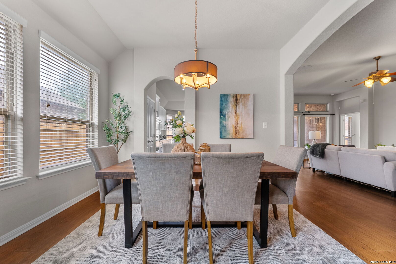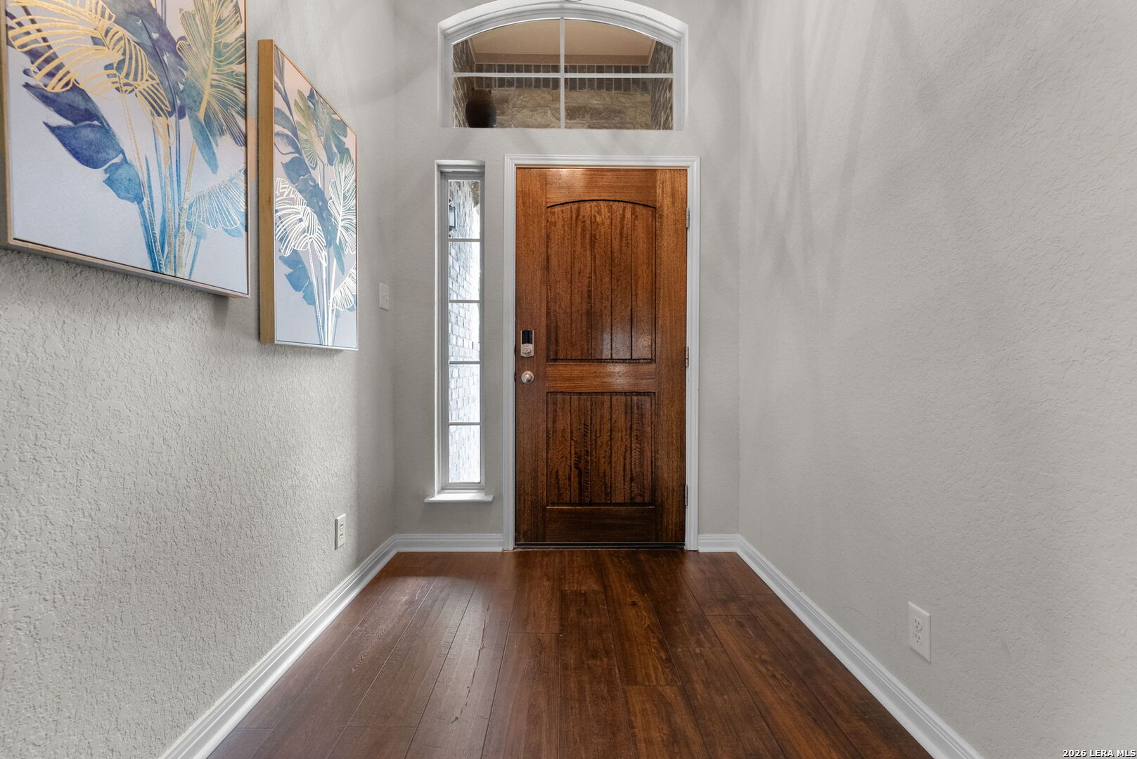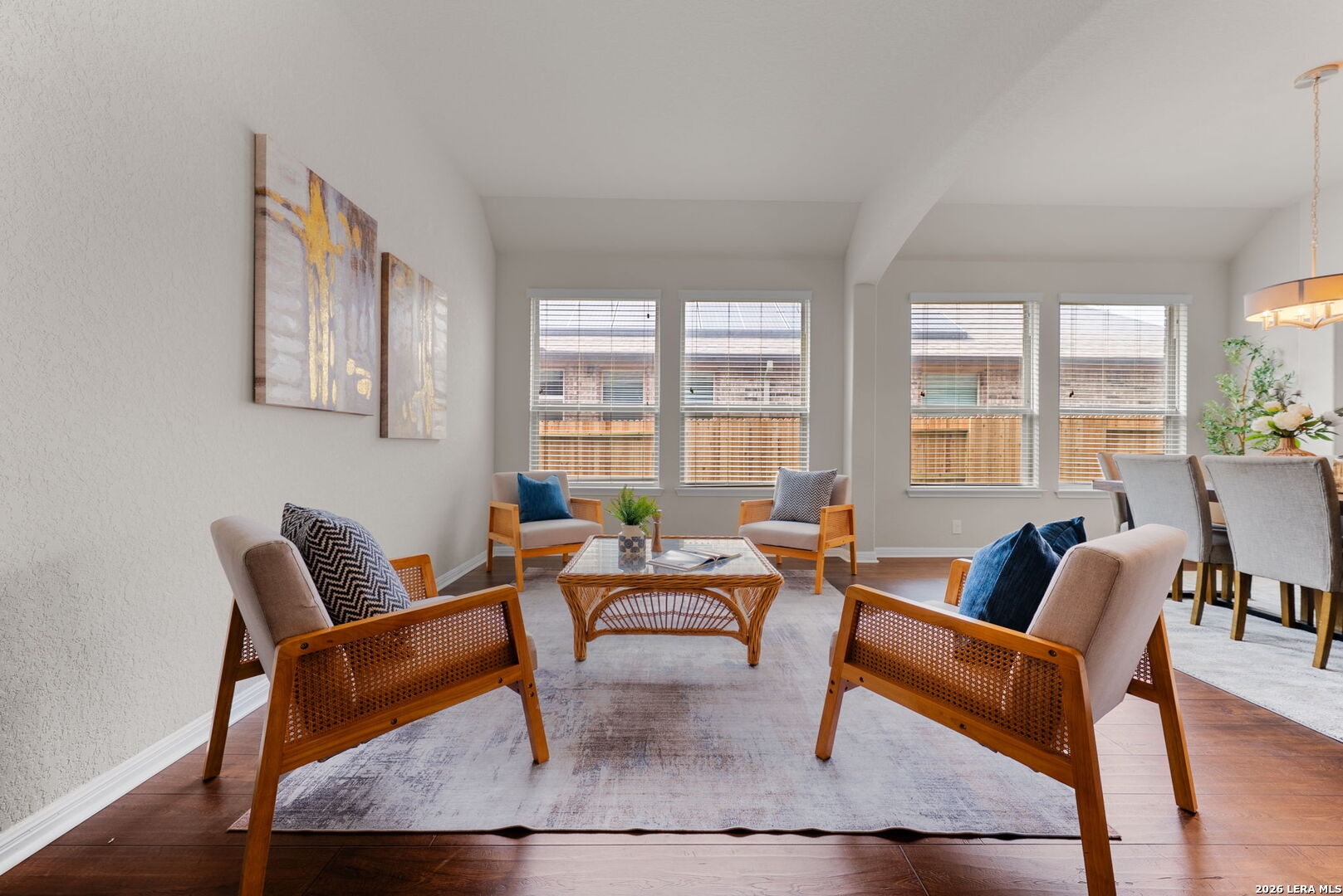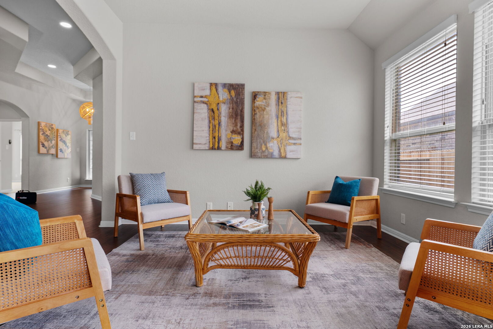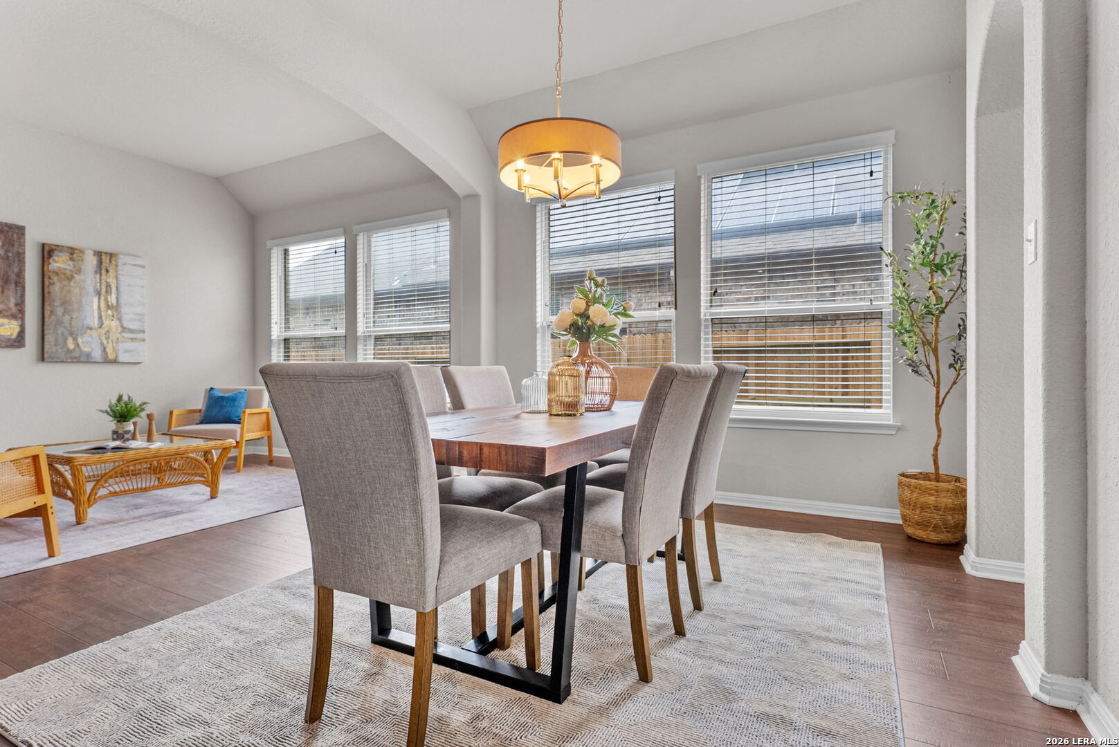 Step into elevated living in the gated enclave of Wortham Oaks, where this meticulously maintained 1.5-story home sits on an oversized corner lot just under a quarter acre. Featuring 4 bedrooms, 2 full baths, and 2 half baths, the functional layout places all bedrooms and the laundry room downstairs, with a private upstairs game room and half bath ideal for guests or entertaining. The open-concept design is anchored by a well-appointed kitchen with white shaker cabinetry, quartz countertops, gas cooking, stainless steel appliances, and a modern subway tile backsplash. The spacious living area offers wood and tile flooring, abundant natural light, and a striking floor-to-ceiling stone fireplace. The primary suite serves as a true retreat with bay windows and dual closets, while added features like surround sound wiring enhance everyday living. Step outside to a covered patio and extended deck overlooking the oversized yard, offering plenty of space to relax or entertain. This home stands out for its lot size, layout, and upgrades. Schedule your private showing today to experience everything this home has to offer.