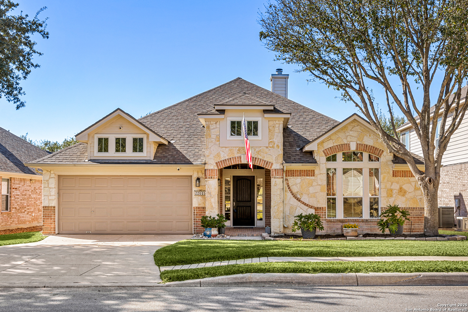 Welcome to 22015 Dolomite Drive, a well-maintained and thoughtfully upgraded home located near Hwy 281 and TPC Parkway in the highly regarded NEISD school district. The setting offers everyday convenience with quick access to shopping, dining, and major roadways while still feeling comfortable and private. This three-bedroom home with a dedicated office features an open floor plan with high ceilings and plenty of natural light. Plantation-style garden shutters on every window add both function and charm. The living area flows easily into the kitchen, making the space practical for daily living and casual gatherings. The kitchen includes granite countertops, a deep sink, double ovens, and an LG refrigerator, offering ample workspace and storage. The primary suite is tucked away for privacy and features high ceilings, a spacious bath with double vanities and a garden tub, and a custom walk-in closet designed by California Closets. Secondary bedrooms and the office provide flexible space for work, guests, or hobbies. This home has been carefully upgraded with long-term comfort in mind. Features include an upgraded 200-amp electrical panel with generator inlet that can power the entire home, including HVAC, a 30-amp dedicated garage outlet ideal for EV charging, wall-mounted garage door opener, Culligan water softener, no-subscription 4K security camera system, extra blown-in insulation, and a wood-burning fireplace. The exterior has been freshly painted, and the yard is supported by an automatic sprinkler system and St. Augustine ProVista grass. The backyard offers a rare level of privacy with no rear wall or direct neighbor views, creating a quiet space to relax outdoors. Major systems such as the roof, HVAC, and water heater are all current, making this a truly move-in ready home. Located just minutes from HEB, Target, Hwy 281, and a wide variety of shopping and dining options, this home combines comfort, convenience, and peace of mind. Book your personal tour today!