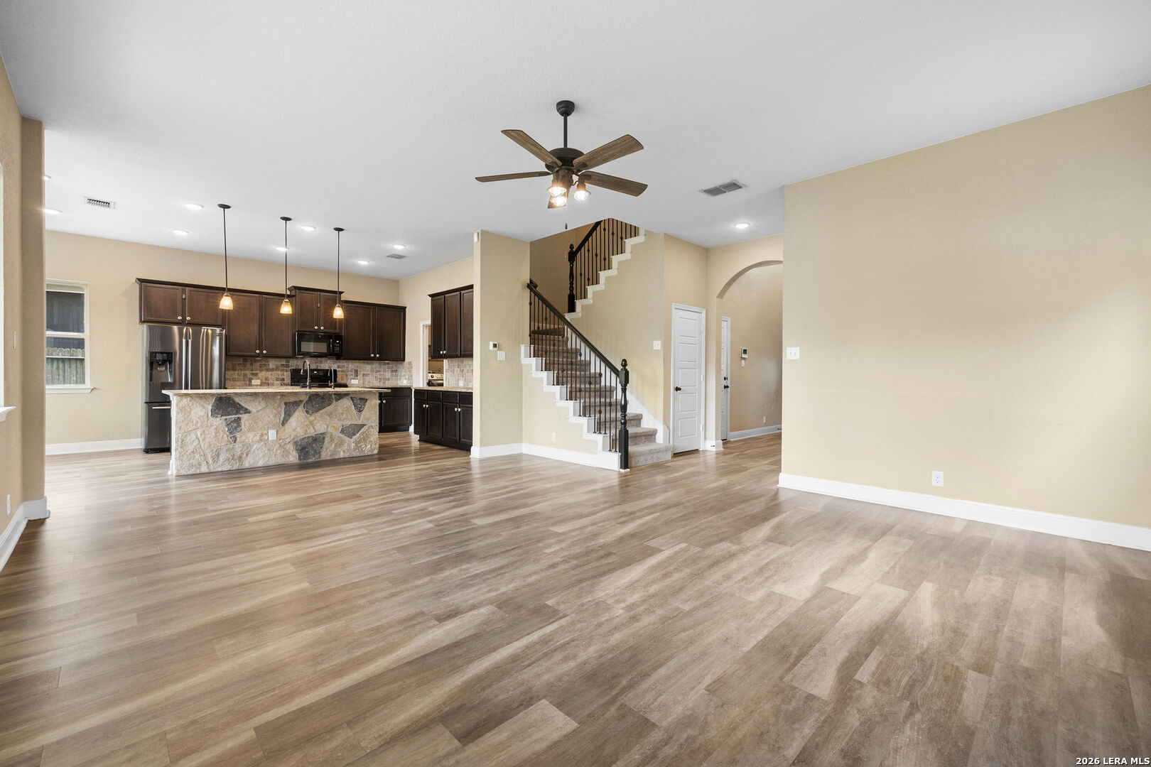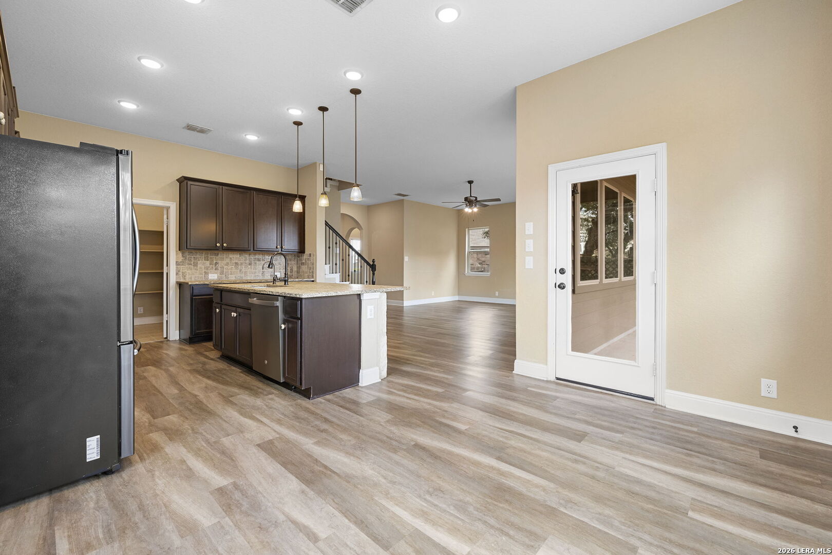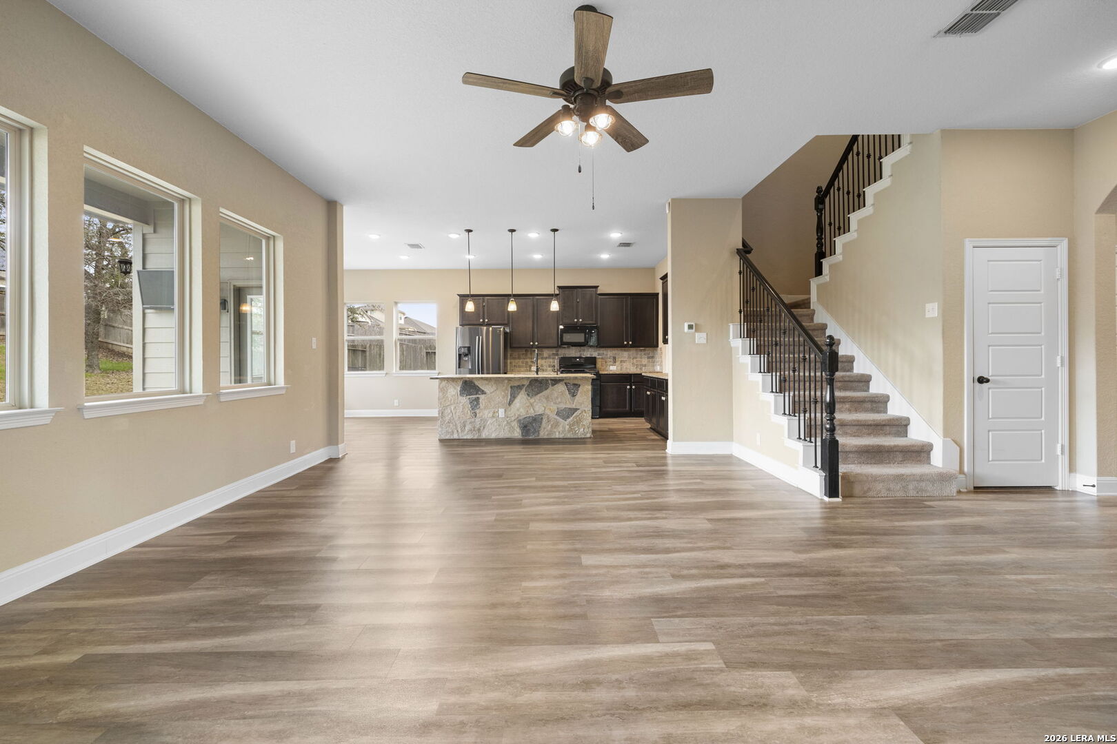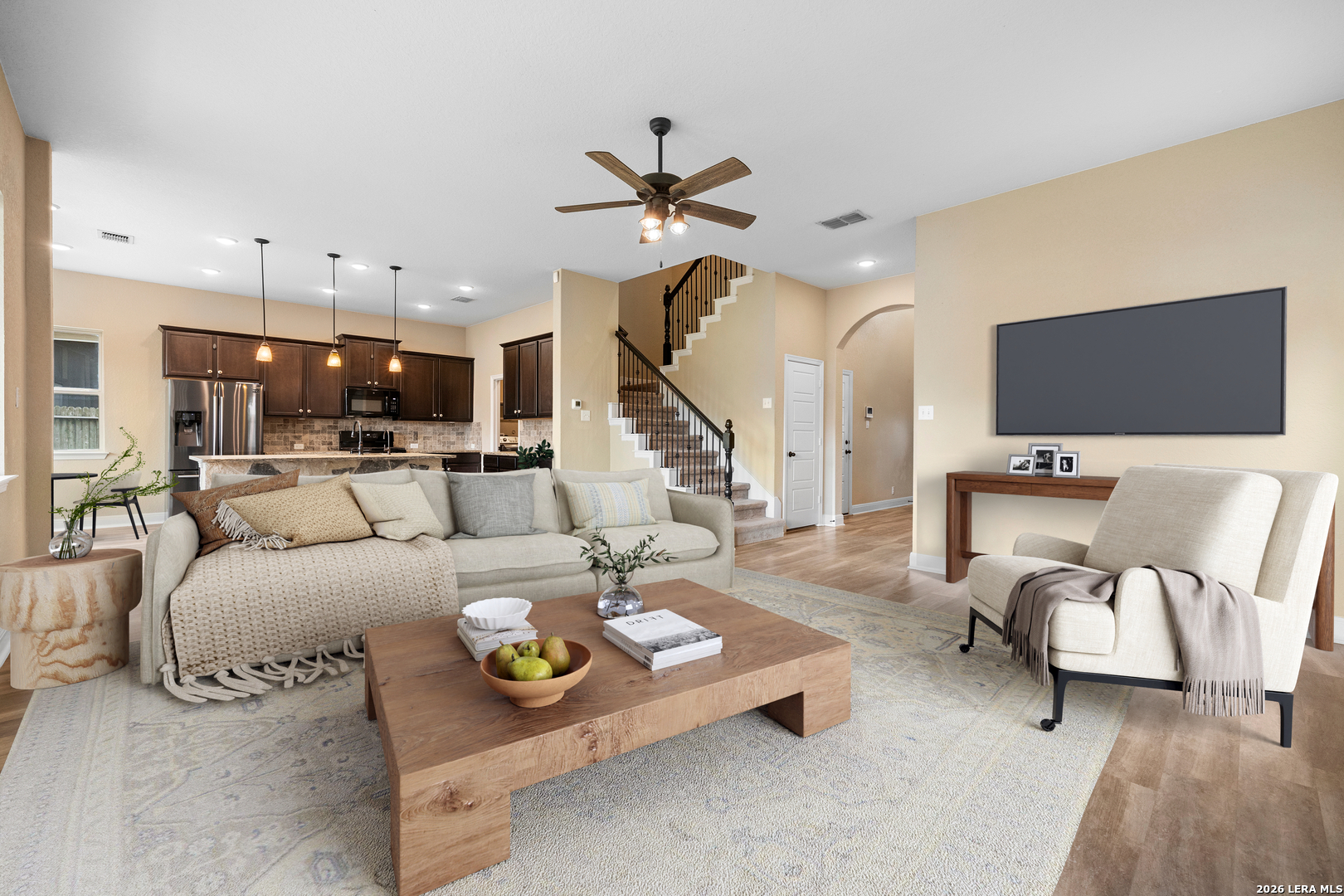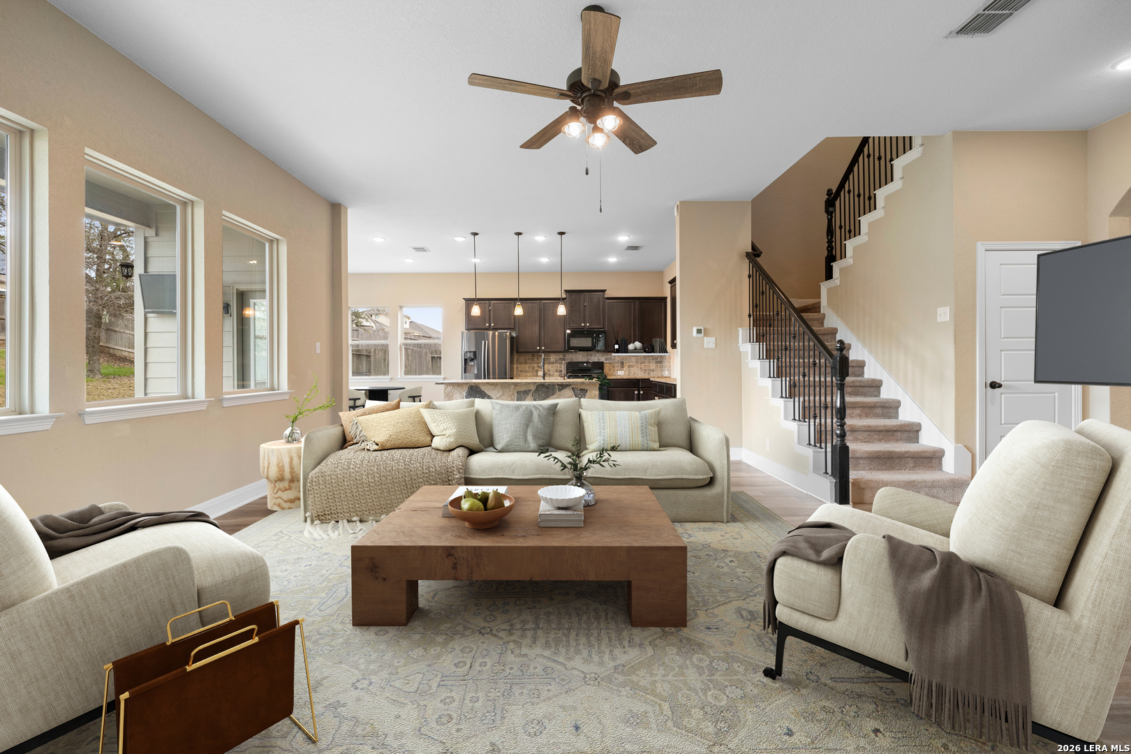 Welcome home to a place where comfort, style, and everyday living come together beautifully. Nestled in a desirable Wortham Oaks, this thoughtfully designed home offers an inviting open-concept layout filled with natural light and warm, welcoming spaces. The heart of the home is the spacious kitchen and living area-perfect for gathering with friends, hosting family dinners, or simply enjoying a quiet evening at home. The kitchen features generous counter space, a large island for casual seating, and seamless flow into the living and dining areas, creating a space that feels both functional and connected. The private primary suite provides a relaxing retreat with a well-appointed bath and ample closet space, while the additional bedrooms offer flexibility for guests, work-from-home needs, or growing households. Step outside to enjoy a covered patio and backyard space ideal for morning coffee, weekend barbecues, or unwinding at the end of the day. Located near shopping, dining, and major commuting routes, this home blends Hill Country charm with everyday convenience.