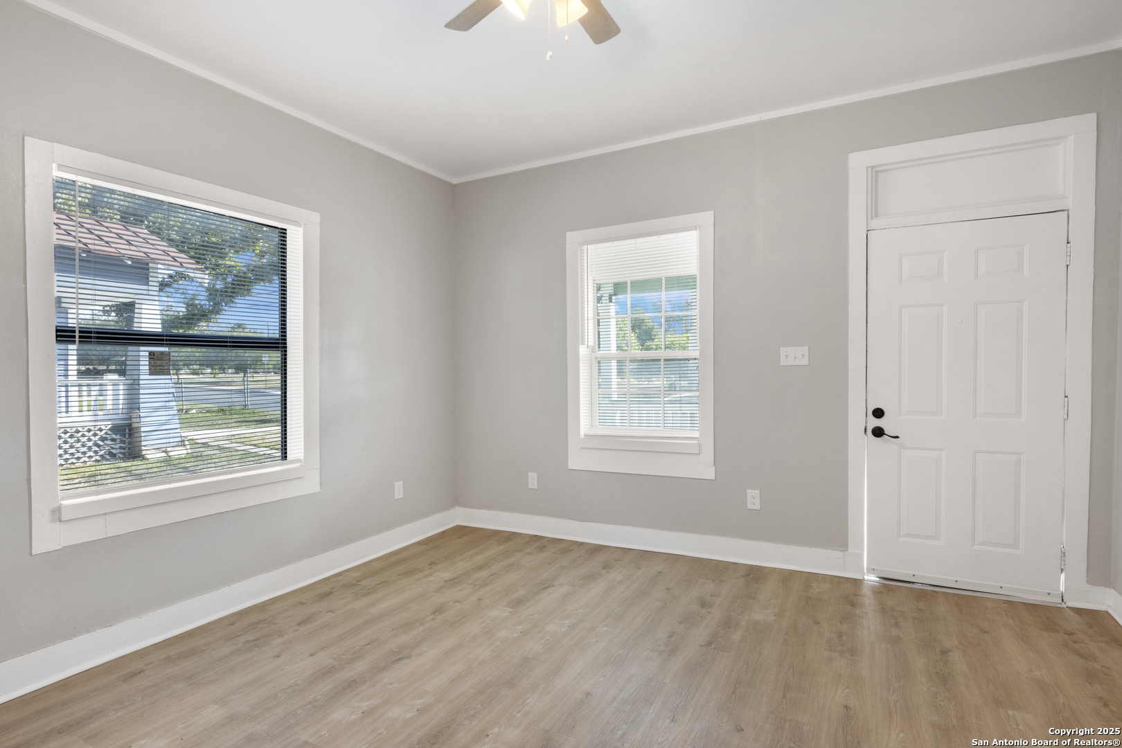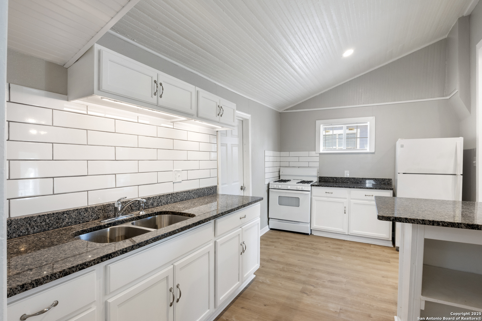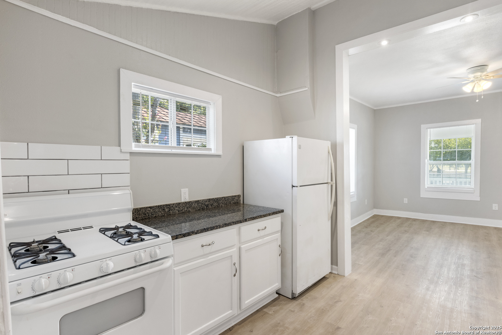 Charming and fully renovated 3-bedroom, 2-bath rental home located directly across from San Pedro Springs Park. This property features an open layout with new vinyl plank flooring throughout. The updated kitchen includes granite countertops, new cabinets, a gas stove, and a refrigerator. The bathrooms have been refreshed, and all bedrooms offer comfortable living space. Enjoy outdoor living with a covered front porch and a fully fenced yard. The enclosed back patio provides washer and dryer connections for added convenience. Available now for immediate move-in, this home combines modern updates with an ideal location near trails, green space, and recreation.
