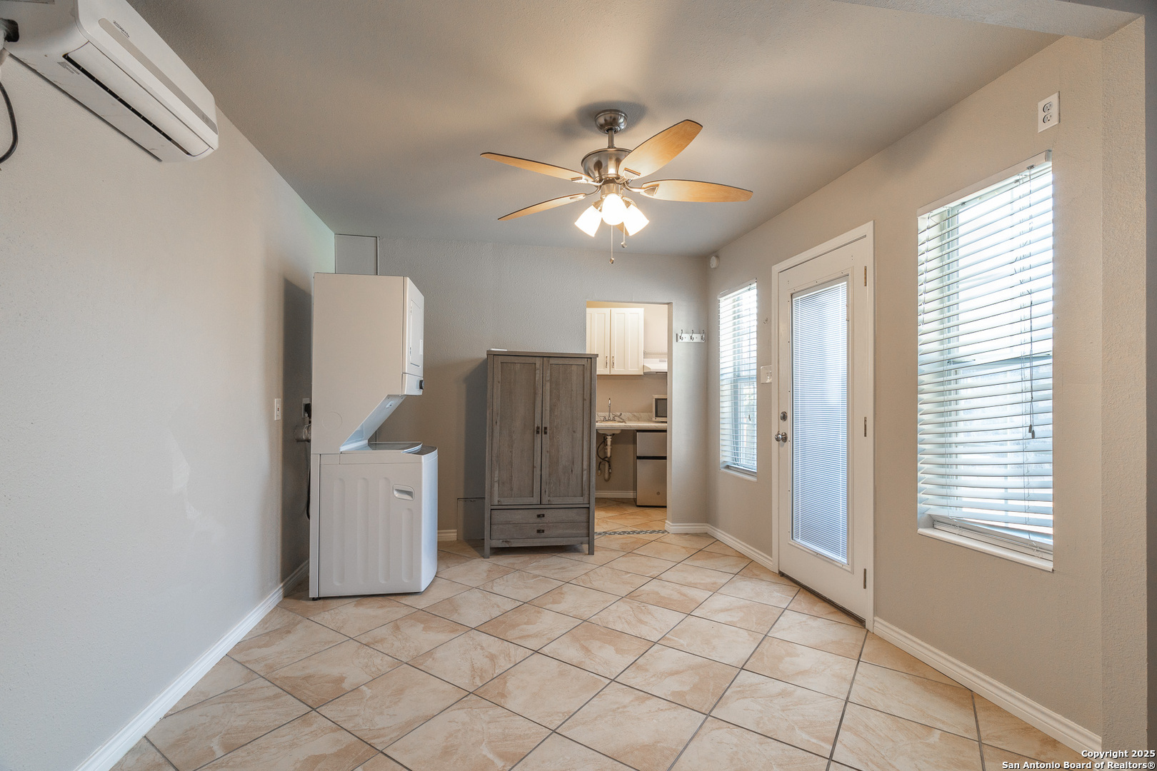Charming and private open-concept studio casita located in a quiet, serene setting. Ideal for a working professional seeking a peaceful place to relax. This detached back unit features a spacious living area, full bath, and updated finishes throughout. Enjoy access to a shared pool, and the convenience of an in-unit stacked washer & dryer. All utilities are included in the monthly rent!