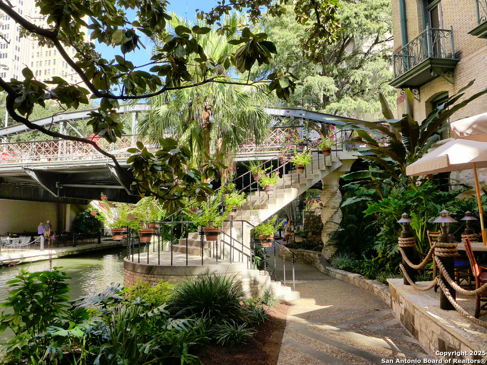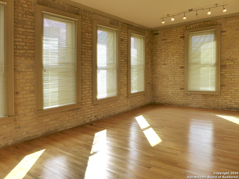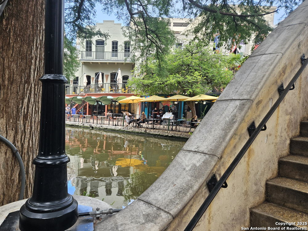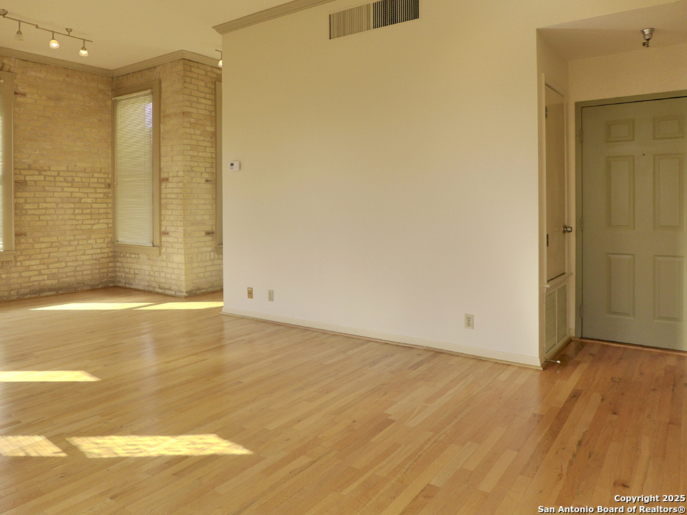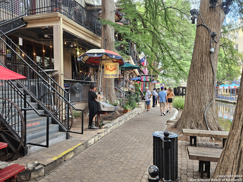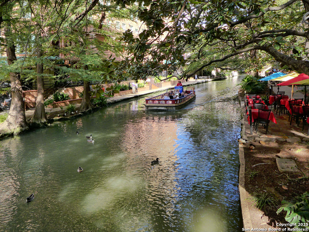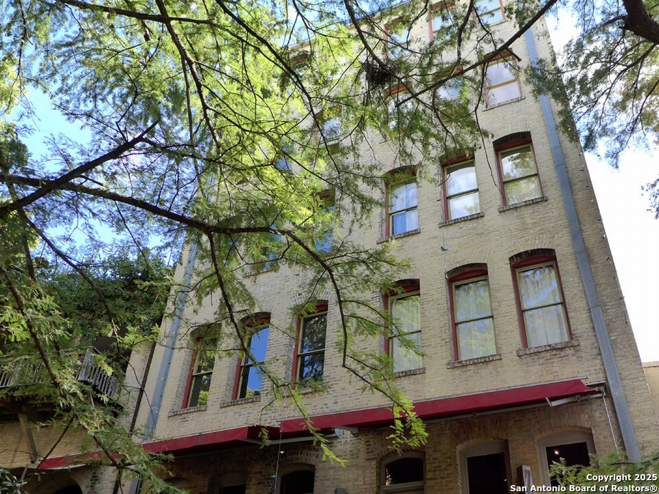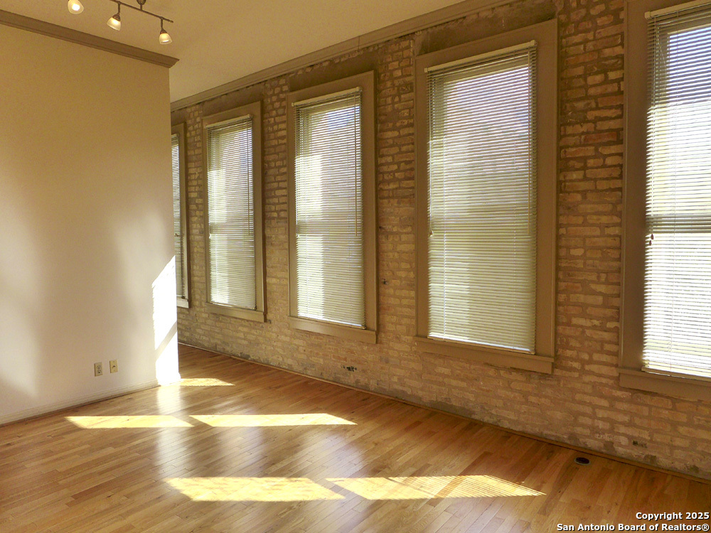 Experience the charm of downtown living in this stylish condo featuring soaring ceilings, exposed brick walls, crown molding, and beautiful refinished hardwood floors. The updated galley kitchen includes solid-surface countertops, tile backsplash, refrigerator, and even a built-in trash compactor for convenience. A versatile wet bar area is perfect for mixing drinks, storage, or a compact laptop station. Enjoy access to a laundry room shared with only one other residence, and take advantage of the included parking pass for nearby Riverbend Garage. Just steps away from the vibrant River Walk, where you'll find cafes, restaurants, and shopping. This one-of-a-kind home blends historic character with modern comfort.
