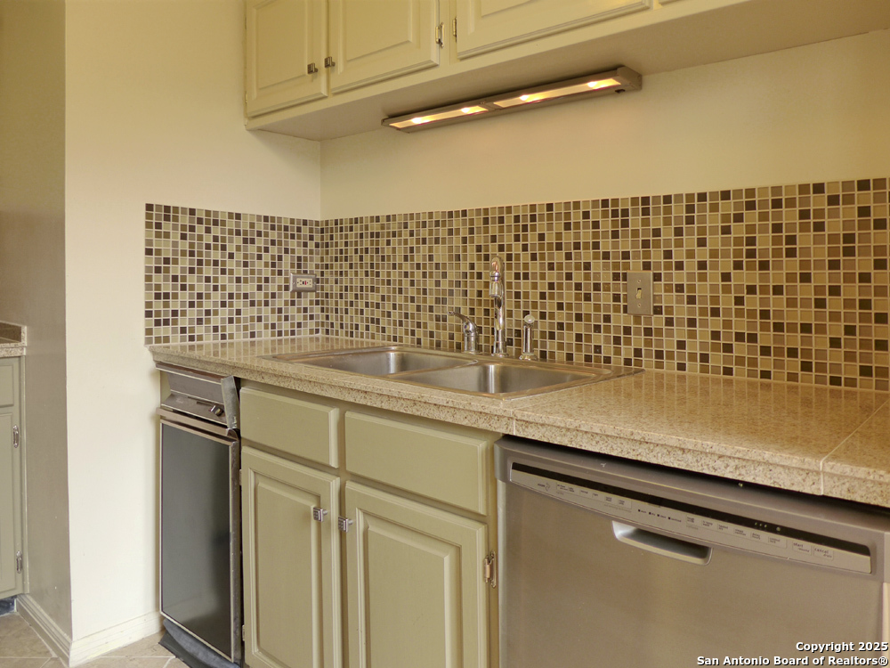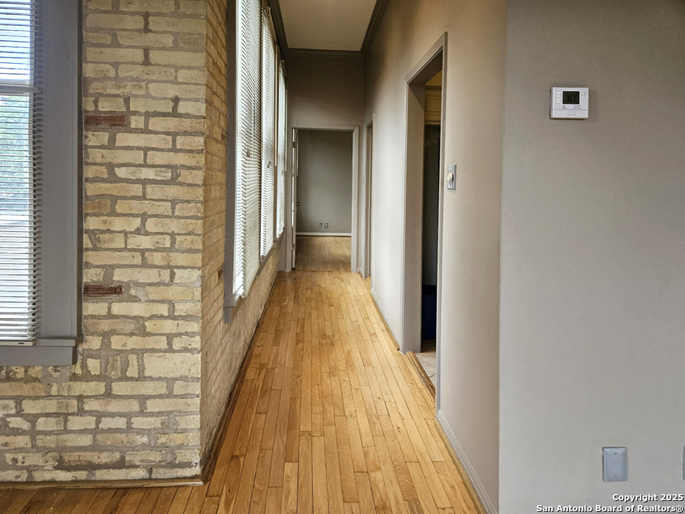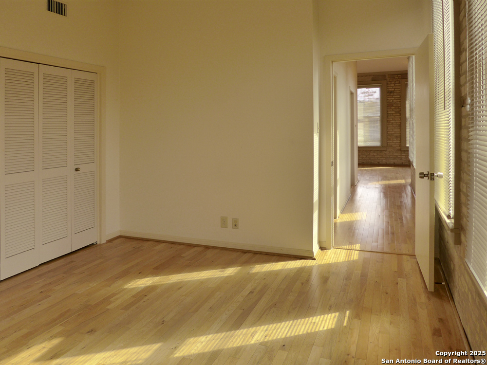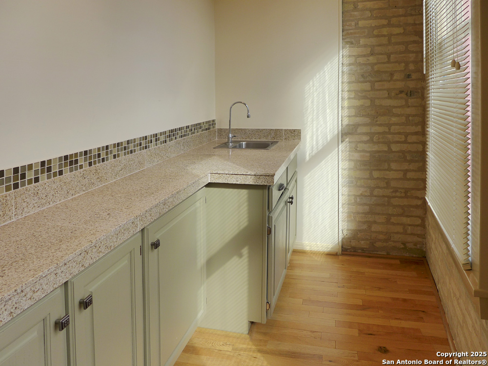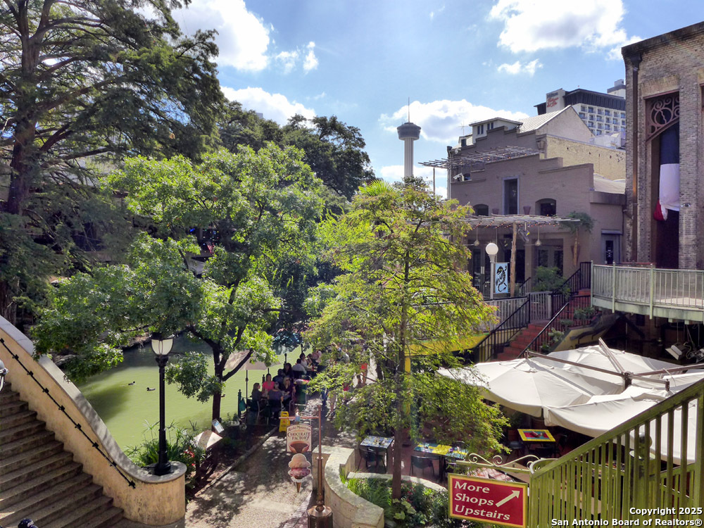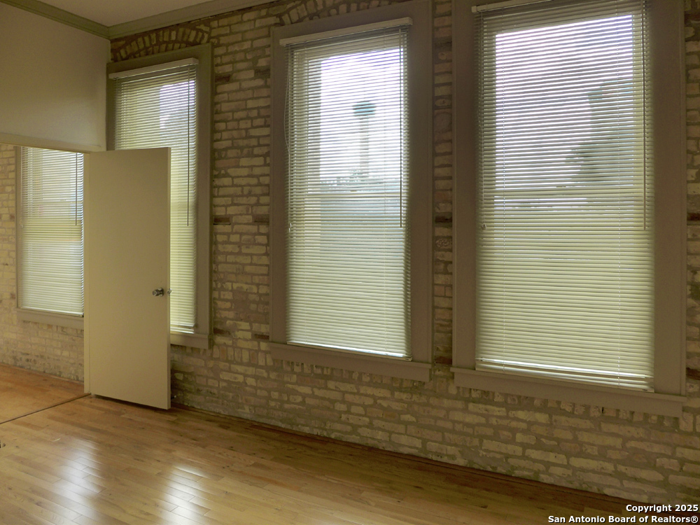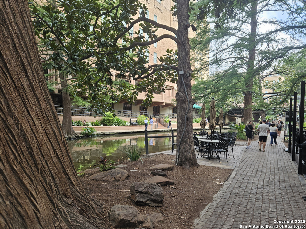 Experience the charm of downtown living in this stylish condo featuring soaring ceilings, exposed brick walls, crown molding, and beautiful refinished hardwood floors. The updated galley kitchen includes solid-surface countertops, tile backsplash, refrigerator, and even a built-in trash compactor for convenience. A versatile wet bar area is perfect for mixing drinks, storage, or a compact laptop station. Enjoy access to a laundry room shared with only one other residence, and take advantage of the included parking pass for nearby Riverbend Garage. Just steps away from the vibrant River Walk, where you'll find cafes, restaurants, and shopping. This one-of-a-kind home blends historic character with modern comfort.