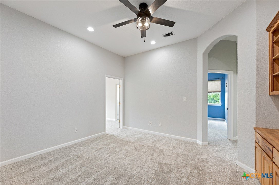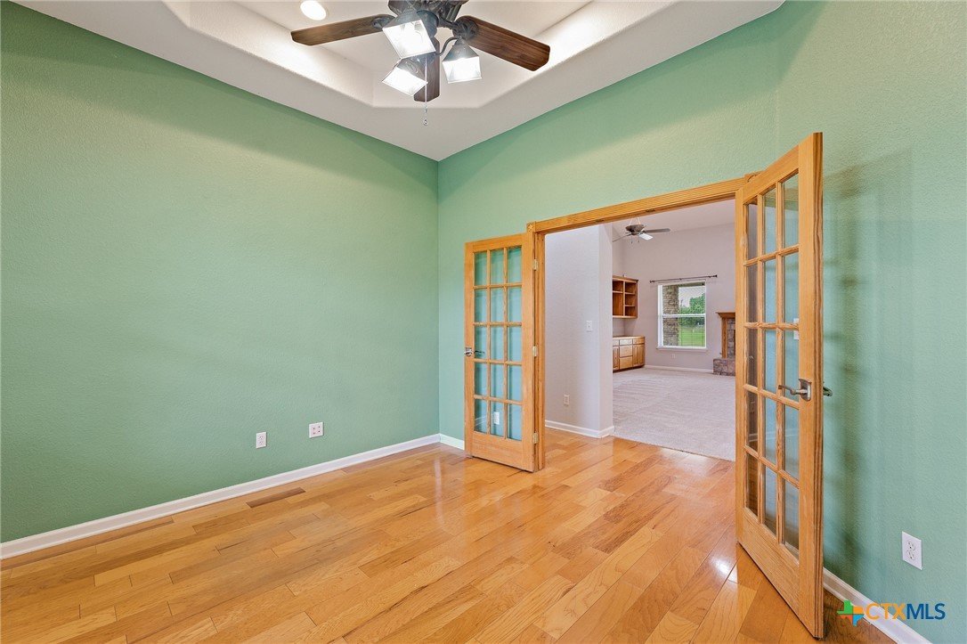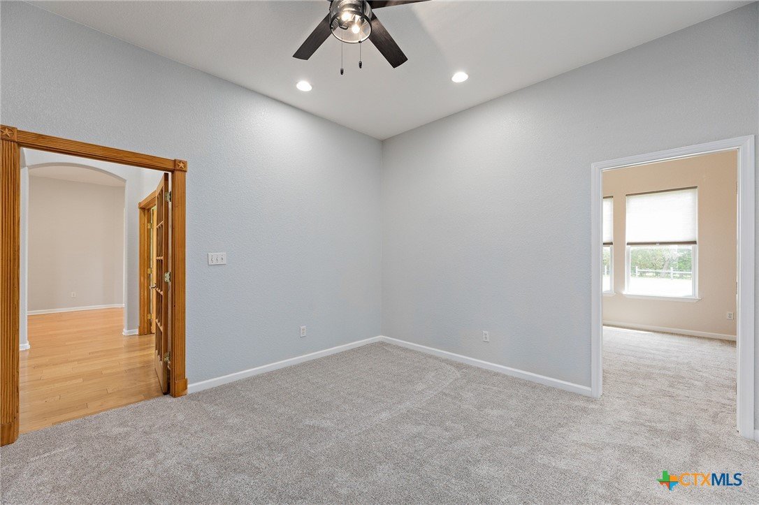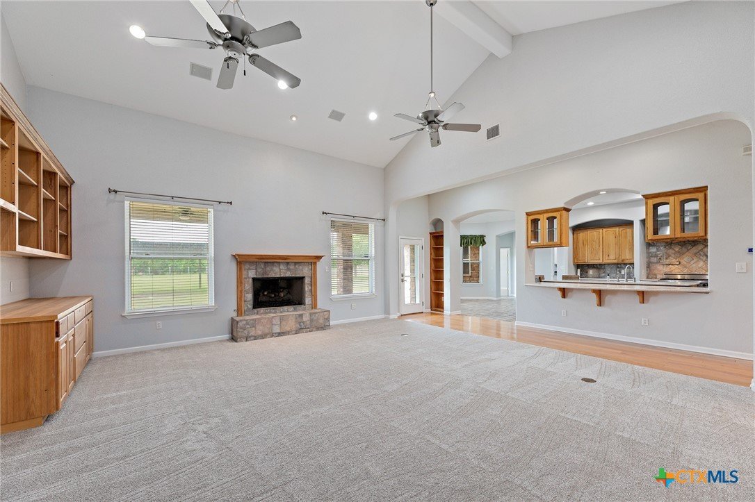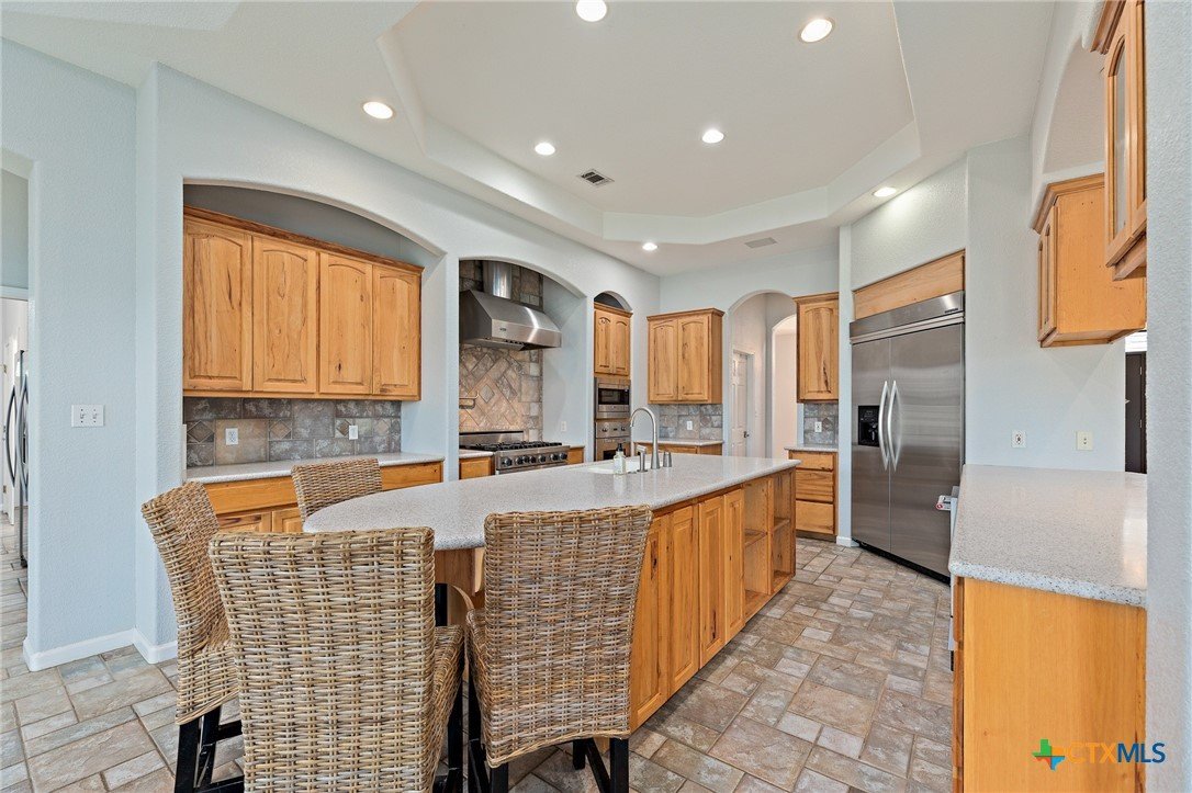 Custom Hill Country Retreat on 6.2+ Acres in Liberty Hill ISD! Tucked behind the gates of Sundance Ranch, one of Liberty Hill's most sought-after equestrian communities, this custom one-story home sits on over 6.2 wooded acres alive with wildlife and privacy. Built in 2003 and thoughtfully designed for both everyday living and effortless entertaining, the property has been freshened up with interior paint and new carpet throughout. Step inside to a light-filled open floor plan anchored by a dramatic family room featuring soaring cathedral ceilings, a custom built-in bookcase and entertainment center, and a warm fireplace that grounds the space. With 4 bedrooms, 4 baths, a private office, flex space, formal dining, and a sunlit breakfast area, there is room for every season of life. At the heart of the home is a true chef's kitchen outfitted with top-tier Viking appliances, including a built-in electric oven and microwave, propane range and cooktop, icemaker, and oversized built-in refrigerator. A wet bar with sink makes hosting effortless, and the covered front and back porches invite you to slow down and enjoy the Texas air. Take the party outside to the built-in covered BBQ smoker, perfect for weekend gatherings under the oaks. Fully fenced and cross-fenced, the acreage offers flexibility for horses, a workshop, or simply room to roam. A 3-car side-entry oversized garage provides storage and space for toys, trucks, or trailers. Country living, custom craftsmanship, and community prestige. This is the one you have been waiting for.