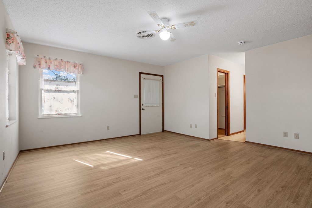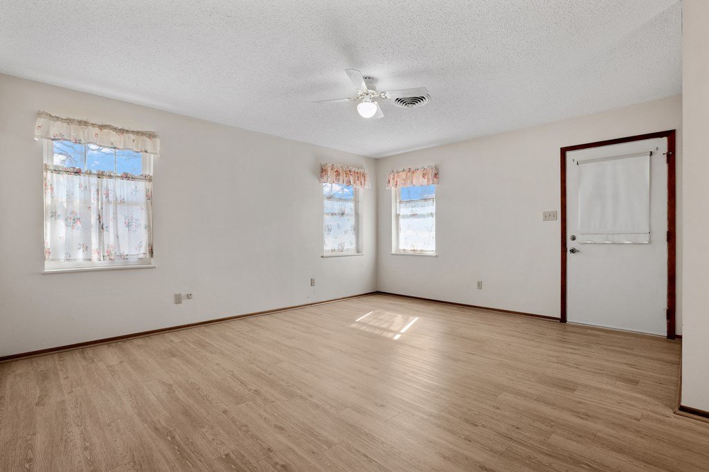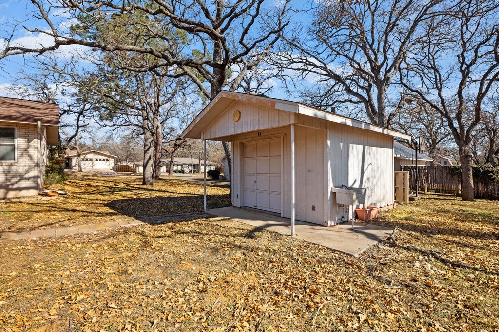Nestled on a cul-de-sac street, this spacious 3-bedroom, 2-bathroom home is ready for you to make it your own. The galley-style kitchen seamlessly flows into the dining area and cozy living room, where you'll find a charming corner wood-burning fireplace perfect for chilly evenings. The versatile flex space is ideally located with doors leading to both the dining area and the primary suite, offering plenty of potential for customization. Storage is abundant throughout the home, with numerous closets and storage spaces for all your needs. Enjoy the tranquility of mature post oak trees that provide ample shade and enhance the beauty of the yard, visible from both the front porch and back deck. A detached outbuilding with plumbing opens up a world of possibilities—whether you envision it as a workshop, studio, or additional living space. Recent updates include double-pane windows and a 2023 new roof, ensuring peace of mind for years to come. With its prime location and potential for personalization, this home is a canvas to create your dream living space in Fredericksburg. More Information: https://www.adamccarroll.com/listings/221-timberidge-dr-fredericksburg-tx/
