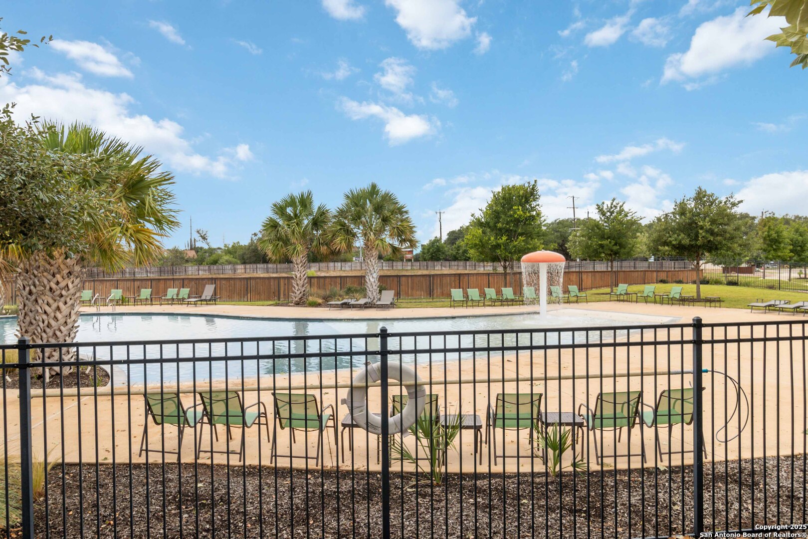 Welcome Home to Comfort, Space, and Style in Sienna! Nestled at the end of a peaceful cul-de-sac, this stunning two-story home offers the perfect blend of modern elegance and everyday functionality. Built in 2019 and backing onto a serene greenbelt, this 5-bedroom, 4-bath residence spans 3,484 square feet of beautifully designed living space in the highly sought-after NEISD school district, with excellent charter and private schools nearby. Conveniently located with instant access to Highways 281 and 1604, you'll enjoy easy commutes to shopping, dining, and everything San Antonio has to offer. From the moment you arrive, you'll notice the meticulously maintained lawn-kept lush year-round by a built-in sprinkler system and backyard drip lines for your gardens. Step inside the grand two-story foyer, where a flexible front room awaits-perfect as a formal dining area, home office, or sitting room. The heart of the home is an expansive, open-concept living and dining area that flows seamlessly into a chef-inspired kitchen featuring rich cabinetry, a large granite island, breakfast bar, gleaming stainless-steel appliances (including a gas oven), and a reverse osmosis water filtration system. The soaring two-story living room is bathed in natural light from a wall of windows and anchored by a beautiful fireplace, creating a warm, inviting atmosphere. Your first-floor primary suite offers a private retreat with high ceilings, a spa-like ensuite featuring a garden tub, dual vanities, a separate shower, and two oversized walk-in closets. Upstairs, you'll find not one-but two additional living spaces, perfect for a game room, media room, or study area. Four spacious secondary bedrooms and two full baths provide plenty of room for guests, or hobbies. Step outside to enjoy the covered patio complete with a built-in gas line-ready for your grill or outdoor fireplace. The fenced backyard includes a handy storage shed and backs up to a tranquil greenbelt, offering added privacy. Additional features include $27K in solar panels for energy efficiency, a high-quality water softener, sturdy garage shelving with a dedicated workspace, and an oversized garage with plenty of storage. Located in the desirable Sienna neighborhood, residents enjoy access to a sparkling community pool, playground, and clubhouse-perfect for making the most of those sunny Texas days. Don't miss the chance to make this exceptional property your forever home-where comfort, convenience, and community come together beautifully.
