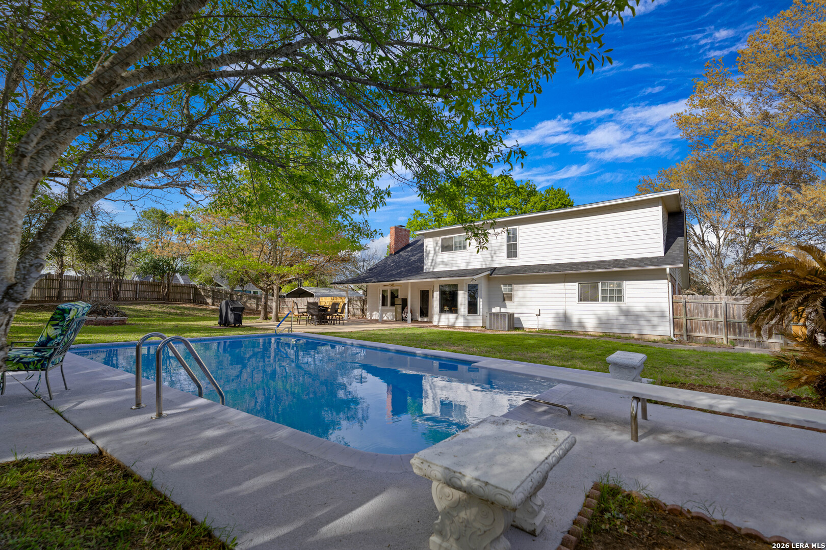Opportunities like this are rare offering flexibility, functionality, and long-term value all in one property. Located just outside Seguin and minutes from the Guadalupe River, this unrestricted estate is located outside of the floodplain and features two separate residences, making it ideal for multi-generational living, income production, or a private retreat. Positioned along the IH-10 corridor, the property provides convenient access to San Antonio, New Braunfels, and Austin allowing you to stay connected to major employment, dining, and entertainment hubs while enjoying the space and privacy of a rural setting. Seguin continues to experience steady growth and expansion, further enhancing the long-term appeal and investment potential of the area. The main home spans over 4,200 square feet with five bedrooms, a dedicated office, and a thoughtful two-story layout designed for both everyday living and entertaining. Mature trees, beautiful landscaping, a well-maintained pool, and expansive outdoor living spaces create a true South Texas setting. A second residence of approximately 1,700+ square feet offers a private living space complete with its own gated entrance off Buerger Lane, full kitchen, living and dining areas, laundry, covered parking, and storage perfect for guests, rental income, or extended family. The property is serviced by county water, with an additional private water well supporting irrigation and pool use, adding efficiency and long-term utility value. With FM frontage, dual access, and no restrictions, this property offers a unique combination of lifestyle, income potential, and future flexibility in a rapidly growing corridor.