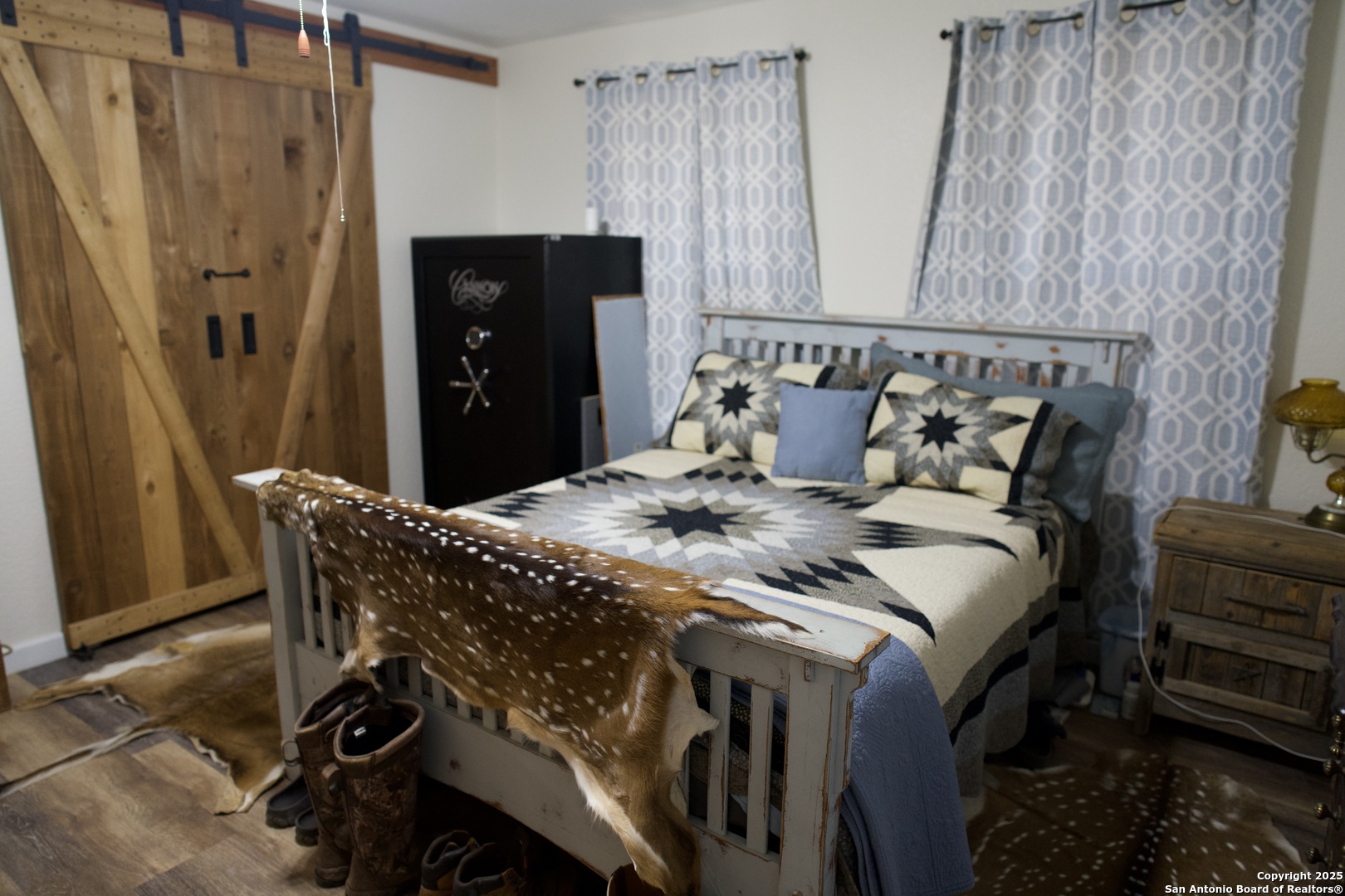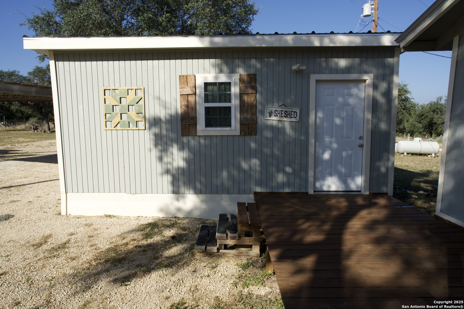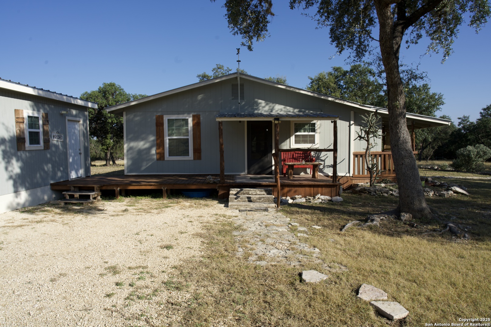 Discover your private slice of Texas Hill Country on this beautiful 10.55-acre retreat featuring a charming 1,350 sq. ft. home surrounded by abundant wildlife and rugged natural beauty. The residence offers warm Hill Country character with a wood-burning stove and a spacious covered porch-perfect for taking in the morning breeze, watching the sunrise, or relaxing under star-filled skies. A versatile property designed for outdoor living and self-sufficiency, it boasts a water well, greenhouse, guest quarters with full bathroom and an RV onsite for extra space or guest accommodations. Cool off and unwind in the swimming pool after a day spent exploring the land. The property includes a horse barn as well as a new metal barn with large roll-up garage doors, offering exceptional storage for equipment, vehicles, or workshop needs. The new barn also features a dedicated meat-packing room with mini split, deer-cleaning station, and bathroom-perfect for hunters, homesteaders, or anyone who enjoys processing game onsite. Hot water on demand in the shed, guest cabin and processing room. The land is alive with wildlife, including frequent whitetail and plentiful Axis deer, offering incredible hunting opportunity or simple enjoyment of nature in its truest form. Whether you're seeking a homestead, hunting retreat, horse property, or weekend escape, this Hill Country haven delivers space, comfort, and unmatched Texas serenity.
