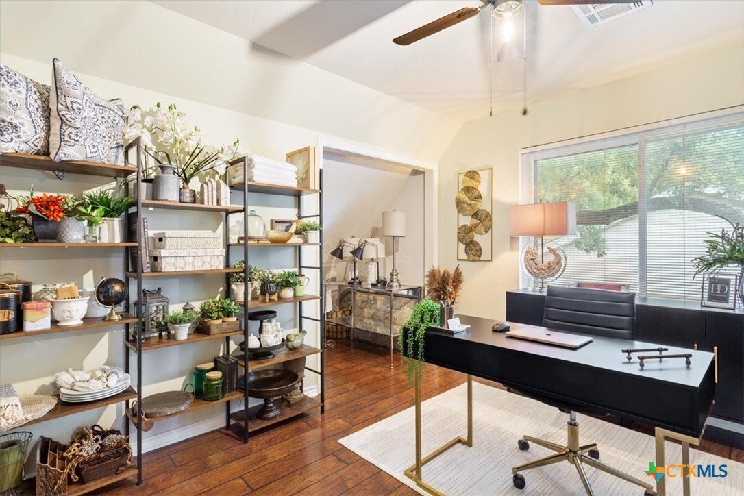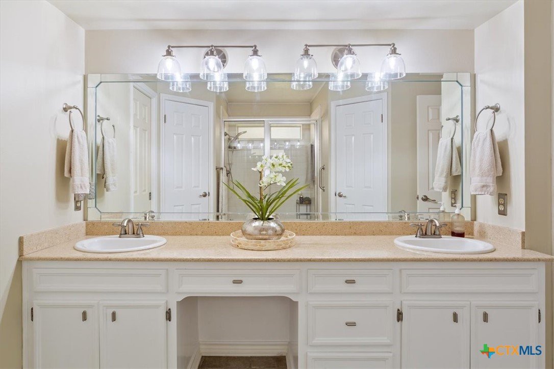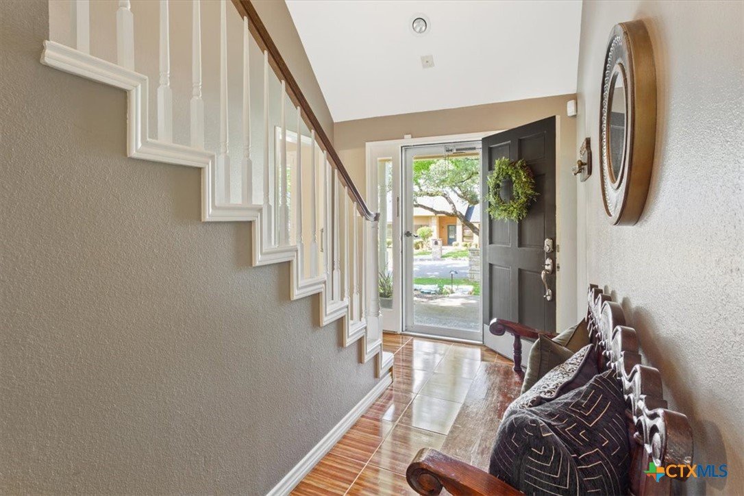 Welcome to this charming custom home in Canyon Creek (no HOA!), surrounded by mature trees and peaceful, park-like surroundings. From morning coffee on the front porch to evenings on the backyard deck under the shade of a majestic oak tree, you’ll love the setting—and yes, it's also wired for a hot tub. Inside, you’ll find a stunning tall entryway, wood-look tile floors, plantation shutters, skylights and floor-to-ceiling windows that fill the home with natural light. The updated kitchen features stainless steel appliances, quartz countertops, and a smartly designed island. The living room centers around a stunning white stone fireplace while the dining area boasts a picture window view. The spacious primary suite is downstairs with a spa-like bath, double vanities, walk-in shower, and his-and-hers closets. Upstairs offers two bedrooms plus a flex room with skylight and a beautifully designed and spacious bathroom featuring vaulted ceiling with skylight, tub/shower combo and large vanity. The garage is a dream with epoxy floors, built-in tool chests, air hose reel and upgraded lighting. With a new top-of-the-line Trane HVAC system, this home blends comfort, efficiency, and style. If you are looking for a home with charm that is like none other - this is the home for you! Check out the video and schedule a tour today! *all appliances including W/D, TV's, BUILT IN TOOL CHESTS, air hose reel in garage convey. *Furniture, decor and tools are also available for sale. List of home improvements in supplements