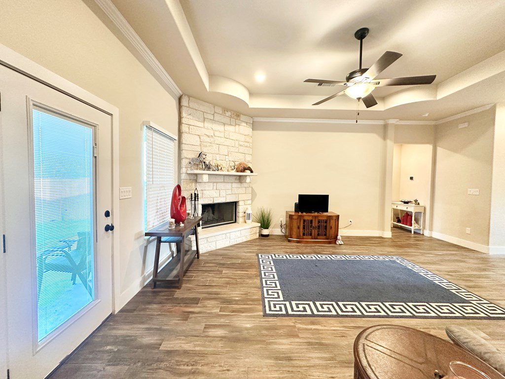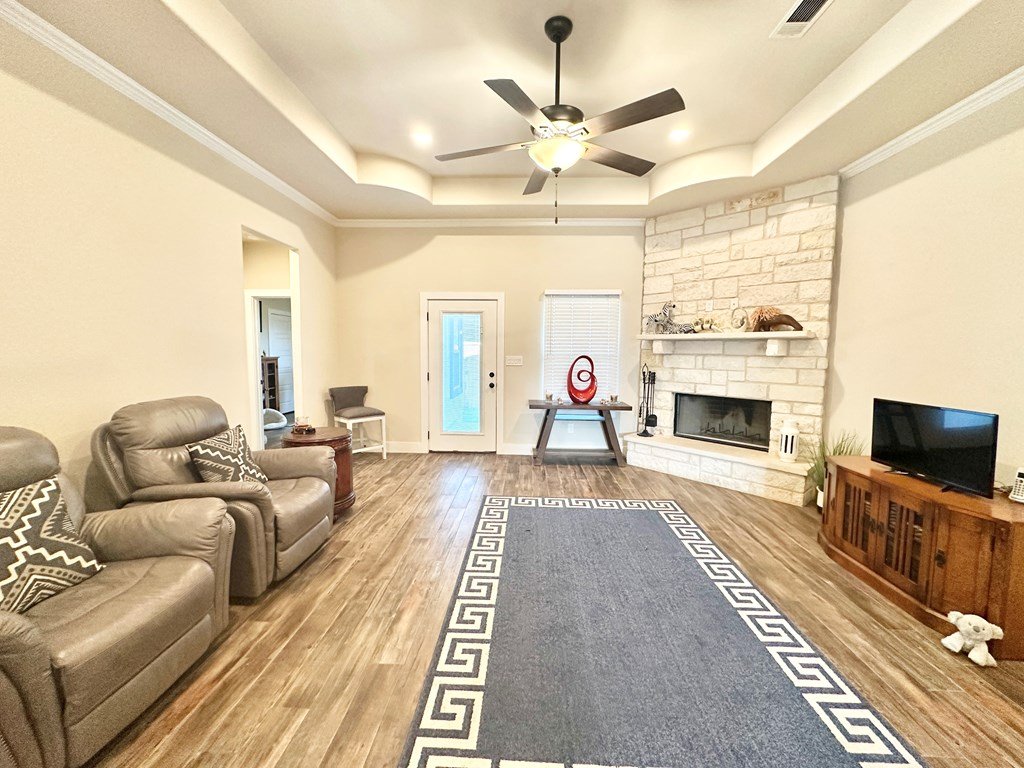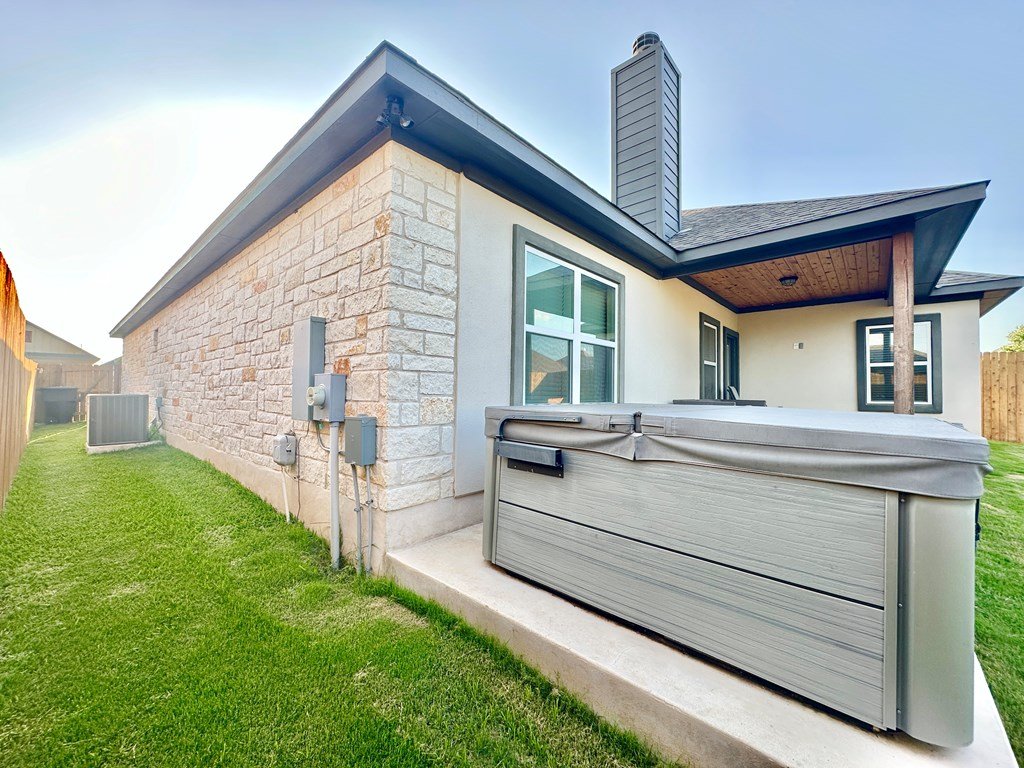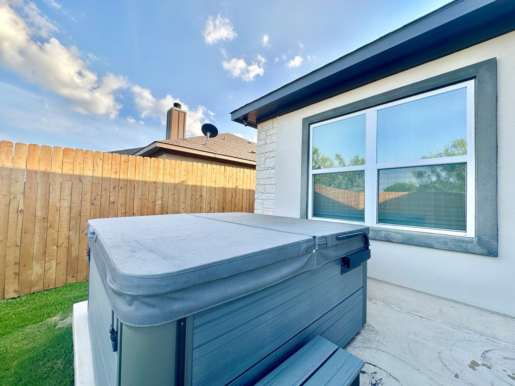 Walking Distance To Fredericksburg Elementary & 5min To Main Street! Where Comfort Meets Class—A Home with Purpose, Peace, and Premium Upgrades. Welcome to a home that truly stands apart—built in 2021, beautifully maintained, and thoughtfully enhanced by its owners. Located just 2.1 miles / five minutes from Main Street Fredericksburg, this open concept 3-bedroom, 2.5-bath 2,017sqft residence offers the perfect balance of quiet living and convenient access to local shops, restaurants, wineries, and more—all without the restrictions of an HOA. Just the right distance - close to everything, but not next to everything. It's 30 minute comfortable walk through neighborhoods to get to Main Street! Upscale Finishes, Perfect Location & Modern Design, Enjoy the floor-to-ceiling corner stone fireplace, foam insulation for energy efficiency, stained cabinetry throughout, and a formal dining room for entertaining. The kitchen features an island and comes complete with stainless steel Bosch appliances (Bosch Gas Range, Bosch Microwave, Bosch Dishwasher, Samsung Refrigerator, LG Washer, Samsung Dryer) all of which will convey with the home. The guest bedrooms & Bath are cozily situated on opposite sides of the home from the primary suite. The primary suite offers a view of your private backyard & spa, along with a spa-like jetted tub as well as an upscale glass door enclosed walk-in shower. Set on a generous lot, this home has enhanced privacy with a custom 8-foot extra tall stained wood fence, complete with gate access on both sides of the backyard. The fencing was thoughtfully extended to the front side of the home, creating a private outdoor area on the concrete slab—perfect for using a BBQ smoker. Another detail that sets this property apart from many nearby homes is the professionally cut and smoothed driveway curb, allowing effortless driveway access without the high bump that's common on this street—ideal for any vehicle, from compact cars to larger trucks or vans. A new & modern resort-style spa is included with the sale. Perfect for unwinding under the stars. The yard has a full sprinkler system, making landscaping easy to maintain year-round—another feature missing in many nearby homes. This property is ideally situated for daily ease and weekend enjoyment. Within walking distance to the Fredericksburg elementary school and just minutes from H-E-B, restaurants, shopping, live music venues, wineries, rec centers, and healthcare facilities. Plus, there's no HOA, giving you more freedom and flexibility. Schedule a Tour Today!