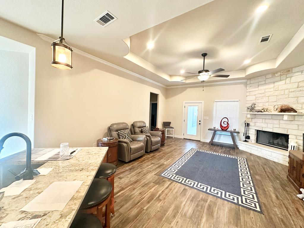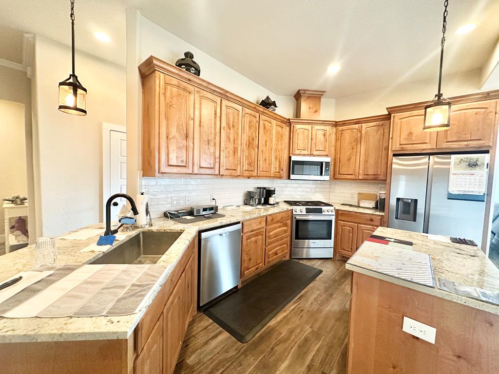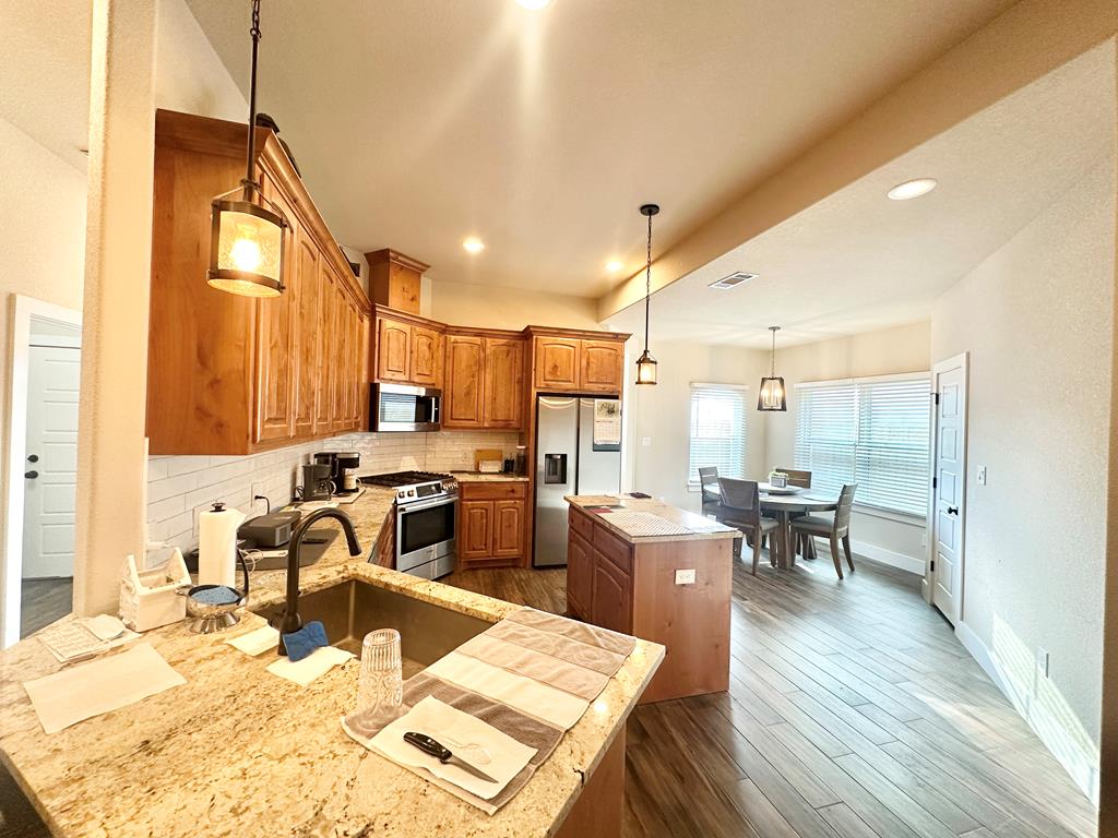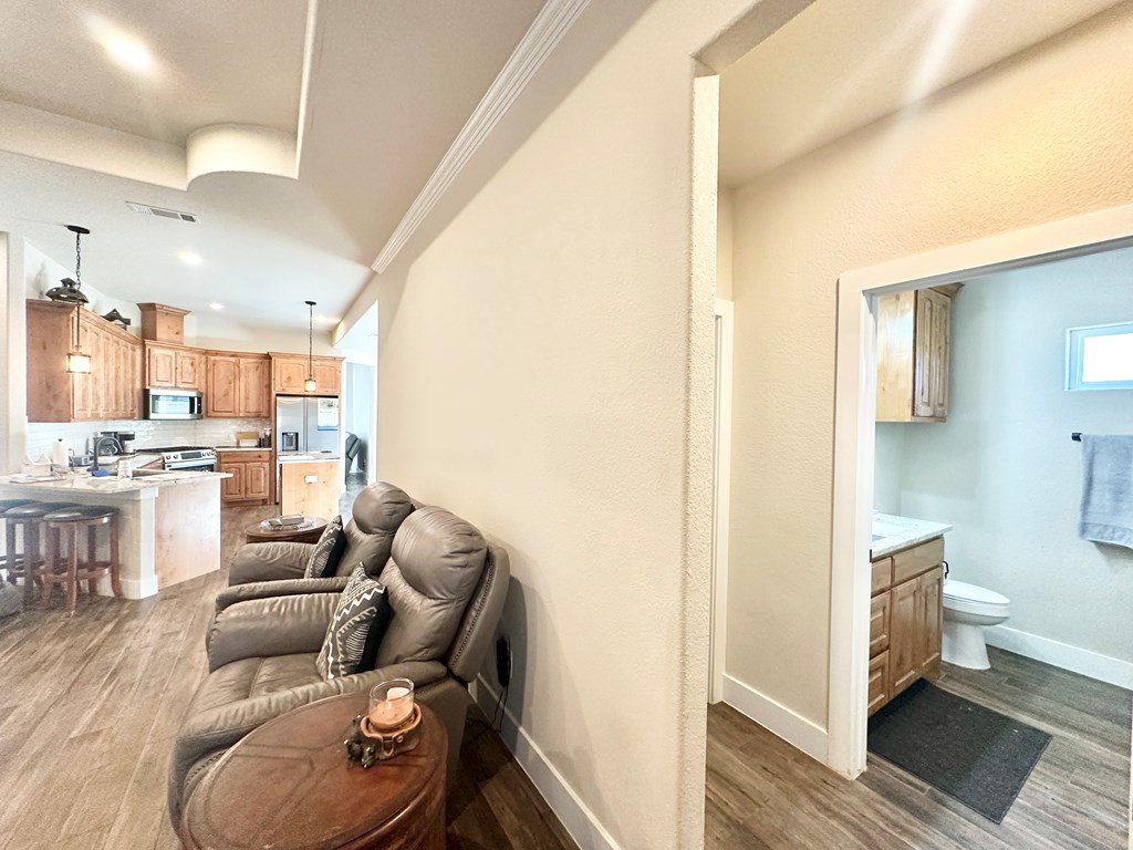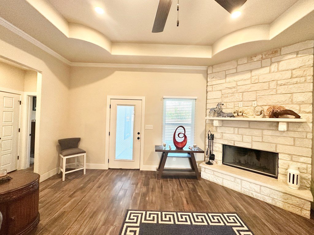 Walking Distance To Fredericksburg Elementary & 5min To Main Street! Where Comfort Meets Class—A Home with Purpose, Peace, and Premium Upgrades. Welcome to a home that truly stands apart—built in 2021, beautifully maintained, and thoughtfully enhanced by its owners. Located just 2.1 miles / five minutes from Main Street Fredericksburg, this open concept 3-bedroom, 2.5-bath 2,017sqft residence offers the perfect balance of quiet living and convenient access to local shops, restaurants, wineries, and more—all without the restrictions of an HOA. Just the right distance - close to everything, but not next to everything. It's 30 minute comfortable walk through neighborhoods to get to Main Street! Upscale Finishes, Perfect Location & Modern Design, Enjoy the floor-to-ceiling corner stone fireplace, foam insulation for energy efficiency, stained cabinetry throughout, and a formal dining room for entertaining. The kitchen features an island and comes complete with stainless steel Bosch appliances (Bosch Gas Range, Bosch Microwave, Bosch Dishwasher, Samsung Refrigerator, LG Washer, Samsung Dryer) all of which will convey with the home. The guest bedrooms & Bath are cozily situated on opposite sides of the home from the primary suite. The primary suite offers a view of your private backyard & spa, along with a spa-like jetted tub as well as an upscale glass door enclosed walk-in shower. Set on a generous lot, this home has enhanced privacy with a custom 8-foot extra tall stained wood fence, complete with gate access on both sides of the backyard. The fencing was thoughtfully extended to the front side of the home, creating a private outdoor area on the concrete slab—perfect for using a BBQ smoker. Another detail that sets this property apart from many nearby homes is the professionally cut and smoothed driveway curb, allowing effortless driveway access without the high bump that's common on this street—ideal for any vehicle, from compact cars to larger trucks or vans. A new & modern resort-style spa is included with the sale. Perfect for unwinding under the stars. The yard has a full sprinkler system, making landscaping easy to maintain year-round—another feature missing in many nearby homes. This property is ideally situated for daily ease and weekend enjoyment. Within walking distance to the Fredericksburg elementary school and just minutes from H-E-B, restaurants, shopping, live music venues, wineries, rec centers, and healthcare facilities. Plus, there's no HOA, giving you more freedom and flexibility. Schedule a Tour Today!