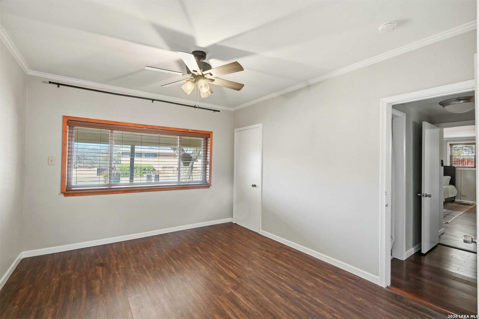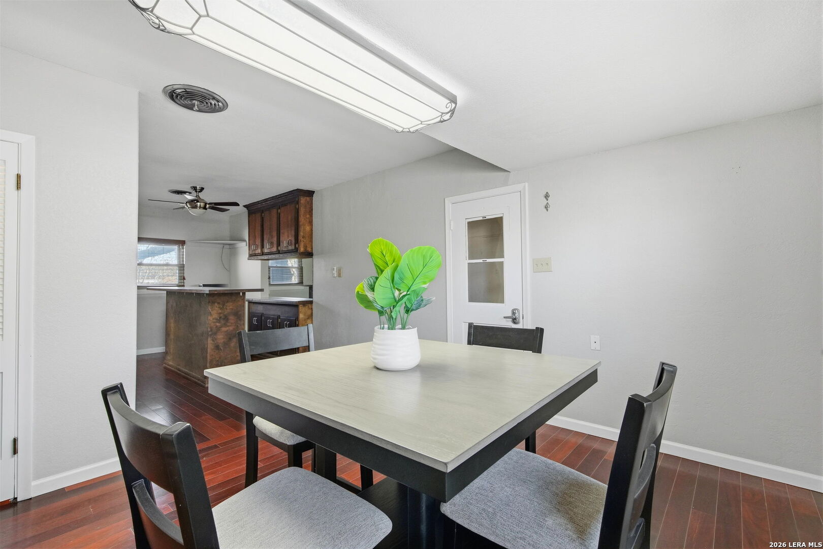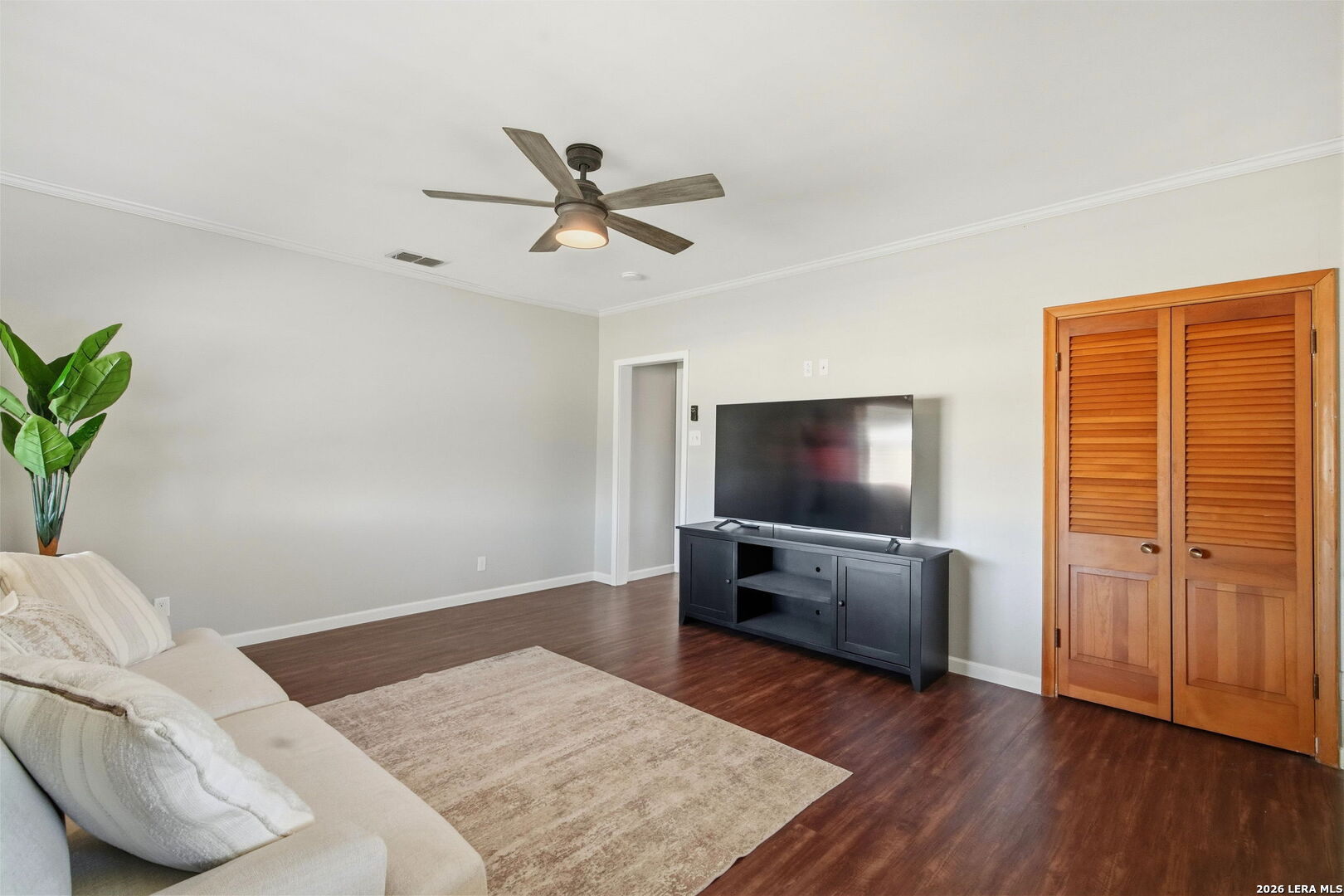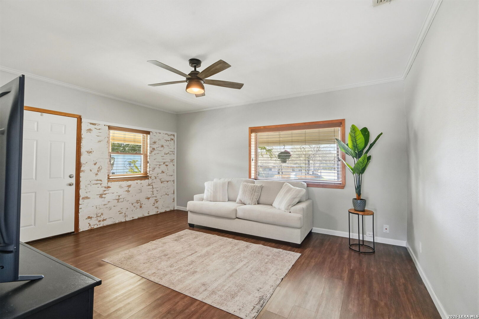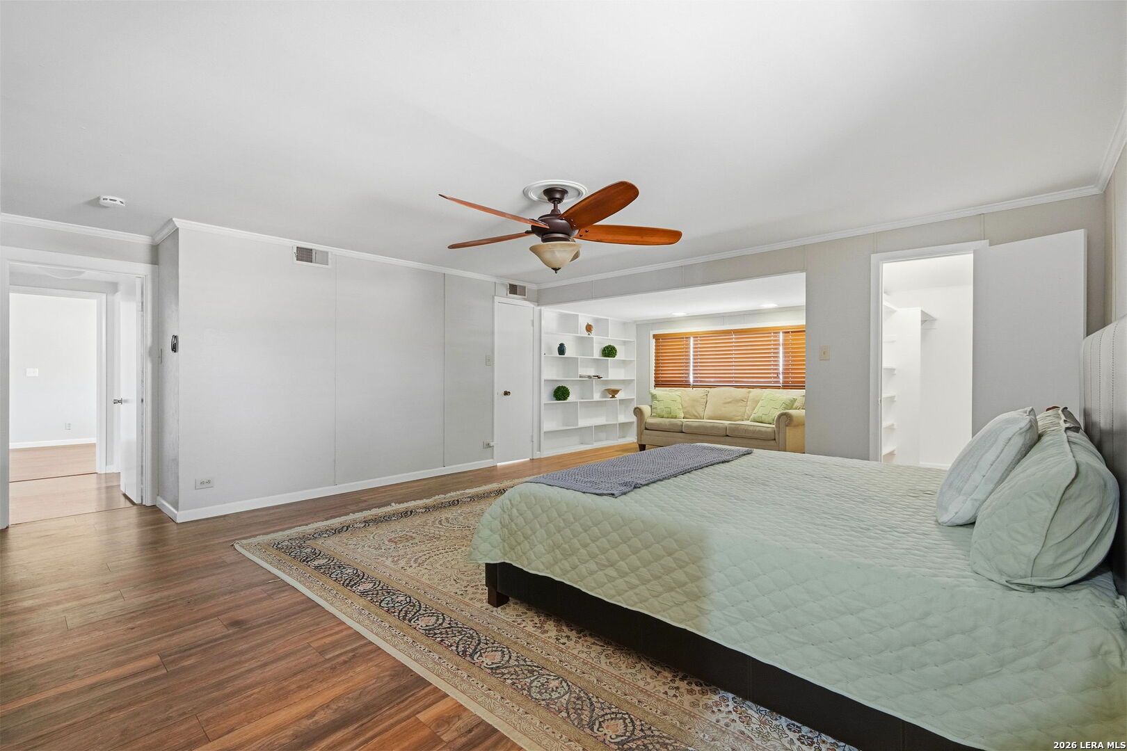 Beautifully appointed and timeless, this sprawling Castle Hills estate is ideally positioned on a prominent corner lot in one of San Antonio's most established communities. Offering 5 spacious bedrooms and 4 full bathrooms, plus a versatile bonus space above the 3-car garage that provides exceptional flexibility for additional bedrooms, a private office, gym or media room. Designed for both everyday living and effortless entertaining, the open-concept kitchen flows seamlessly into the main living area and features granite countertops, custom cabinetry, double stainless steel ovens, a striking rock backsplash and direct access to the backyard. The expansive living room is anchored by a stunning rock fireplace and enhanced with built-in speakers for an inviting, connected atmosphere. The generously sized primary suite offers double closets, room for a sitting area or workspace and a beautiful ensuite bath complete with dual vanities and an oversized double-headed walk-in shower. In addition, a newly renovated secondary bathroom adds fresh, modern appeal. Recent upgrades provide both peace of mind and energy efficiency, including a new HVAC system, metal roof, solar panels, water softener, and double-paned windows. The interior has been freshly repainted and features no carpet throughout, creating a clean, move-in-ready feel. A rare opportunity to own a mid century classic, yet thoughtfully updated Castle Hills property offering space, flexibility and long-term value, this one is truly a must-see.