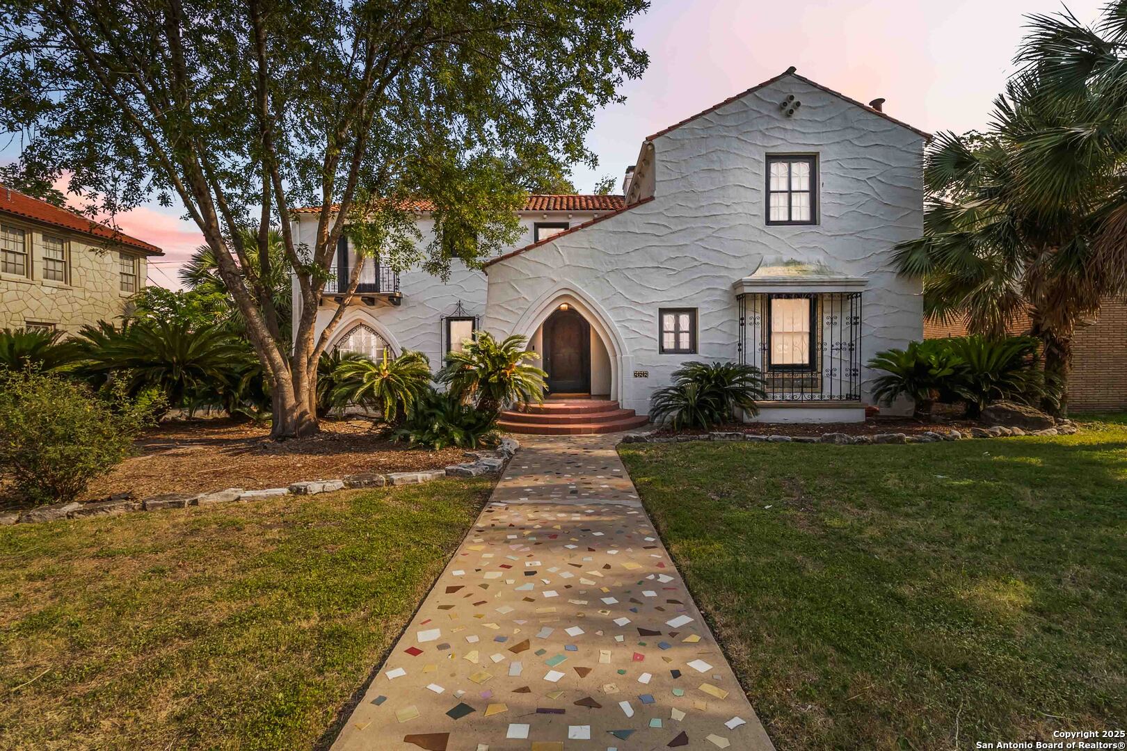 Step into a piece of San Antonio history with this architectural masterpiece designed by renowned architects Atlee and Robert Ayers, creators of iconic local landmarks such as the McNay Museum and the Tobin Center. This 1929 Spanish colonial home is not just a residence; it's an oasis designed for both luxurious living and entertaining. As you approach, you're greeted by the magnificent charm that enhances the home's curb appeal. Inside, discover a world of custom craftsmanship featuring a sunroom adorned with arched windows and an original decorative tile floor, painted ceiling beams, and oversized rooms perfect for gatherings. The solid plaster interior walls and original hardwood floors add warmth and character throughout the home. Recent upgrades include an elegant kitchen remodel with new cabinetry and top end finishes, upgraded HVAC system with smart thermostats, updated fixtures, pool decking and recent pool rehab of plaster & tile ... blending historic charm with contemporary convenience. The backyard is a private entertainer's paradise! A large covered patio provides shelter from the elements while you take in breathtaking views. The oversized heated pool and hot tub are ideal for hosting guests or simply relaxing to the soothing sounds of rustling palm trees. A discreet pool house encloses all the necessary equipment, maintaining the aesthetic beauty of the space. Completing this unique property is a detached casita featuring a bedroom, kitchenette, and full bathroom, perfect for guests or as a private retreat. Don't miss the opportunity to own this one-of-a-kind home. Experience the blend of history and modern luxury for yourself!