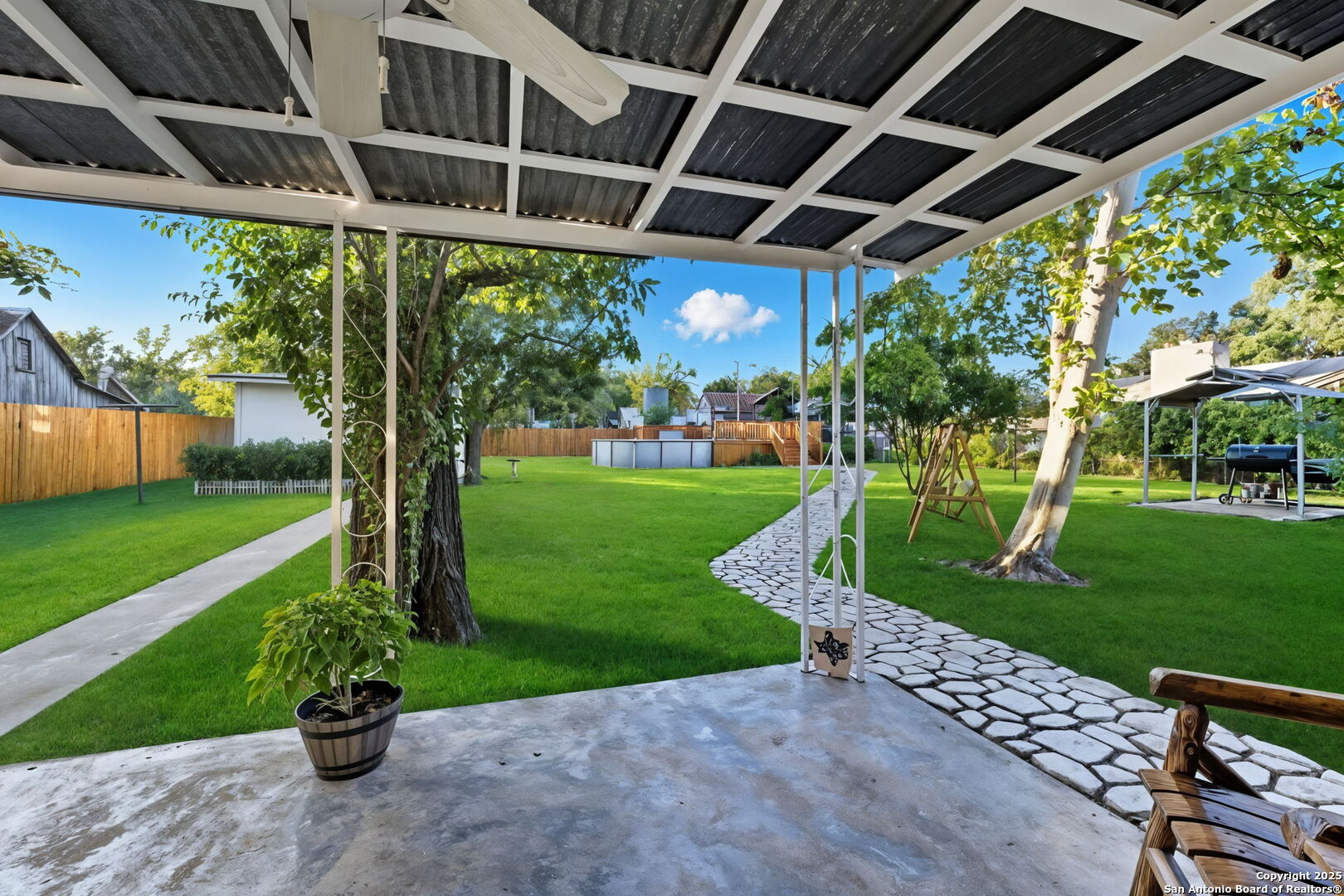 Welcome home to this 3-bedroom, 1.5-bath property offering 1,595 sq ft on a 0.41-acre lot in the heart of Comfort. This well-kept home features a remodeled kitchen with granite, energy-efficient double-paned Low-E windows, mature pecan trees, a storage shed, and an above-ground pool with deck. The yard is fenced for privacy. The roof was replaced in 2021, and the windows were added in 2005. A twin-tank ("double barrel") softener & full-house filter supply soft water, while the 1-year-old water heater, smart thermostat, and radiant barrier add comfort & efficiency. The covered patio provides a perfect spot for relaxing outdoors or entertaining in the spacious backyard. Ideally located next to Comfort City Park & within walking distance of downtown shopping, this home blends convenience with Hill Country charm. Short-term rentals are allowed, offering great income potential or vacation use. This is an excellent opportunity in the Texas Hill Country- don't let this one get away!