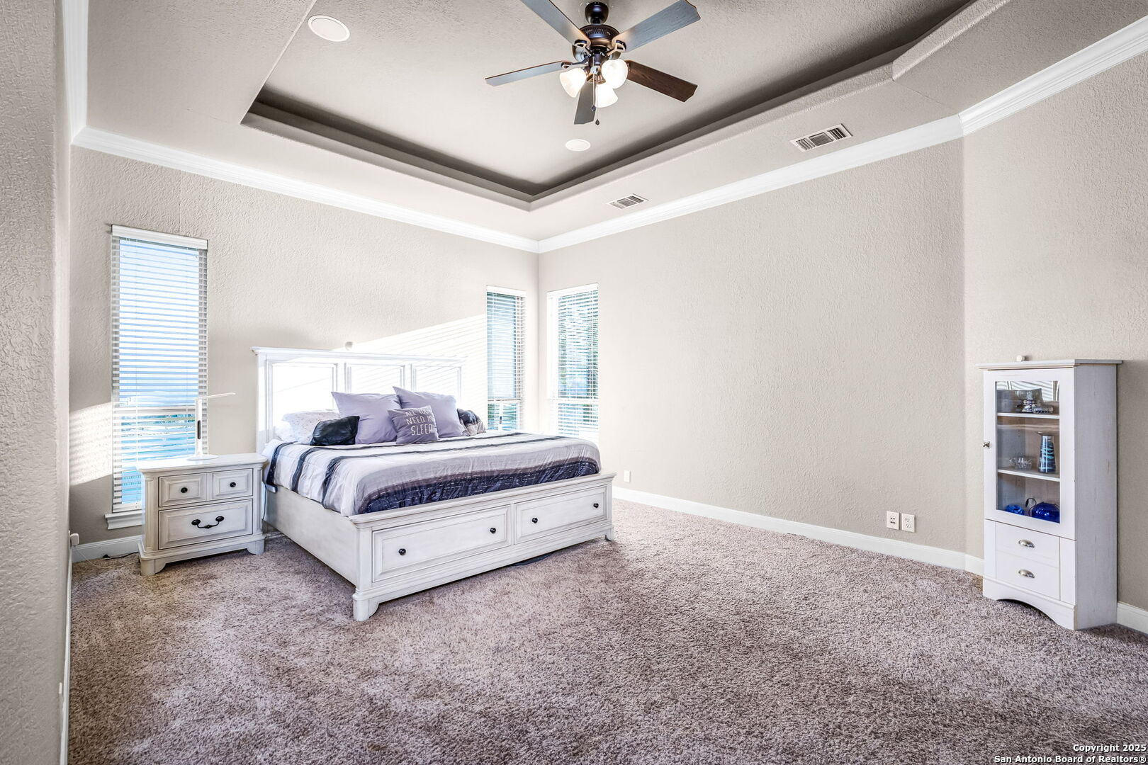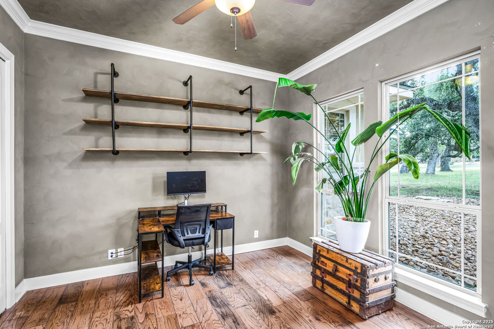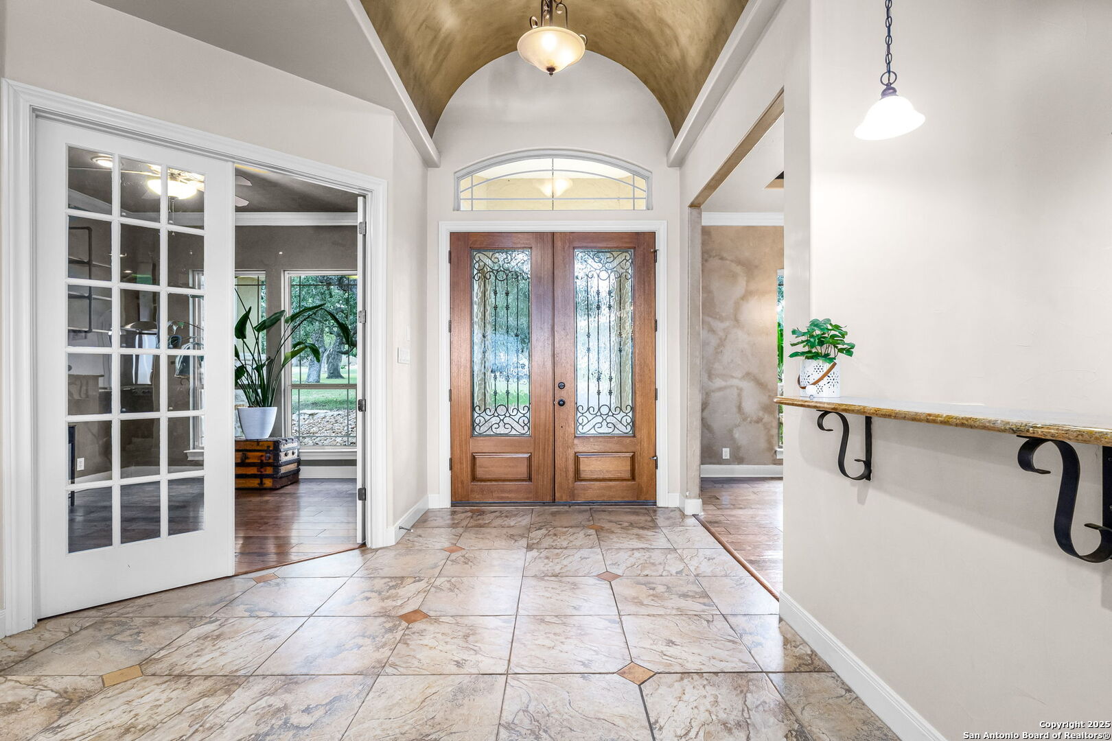 Welcome to this custom-built 2003 Parade of Homes beauty, perfectly perched on an elevated lot with Hill Country views! The circular driveway makes a grand first impression, leading to a home designed for both entertaining and everyday living. Step inside to a spacious barrel ceiling entry that flows into the formal dining room, a dedicated office to the right, and an inviting living area complete with a wet bar, perfect for hosting gatherings in style. The kitchen overlooks it all, creating a seamless connection for cooking and conversation. The main level features both the primary suite and a secondary en-suite bedroom, offering ideal comfort and privacy. The primary wing is truly a retreat, an expansive bedroom with a cozy sitting area and double doors leading to the expansive balcony with wood burning fireplace. The luxurious bath includes a large walk-in shower, separate whirlpool tub, dual vanities, his-and-hers walk-in closets, two private toilets, and a bidet. Downstairs, discover a rare Hill Country feature: a walk-out lower level with a game room, wet bar, media room, and two additional bedrooms. It's the ideal setup for multi-generational living or weekend guests. This home combines character, functionality, and incredible potential AND it's priced to sell. All three A/C units are new. Schedule your private tour today and see why this one stands out from the rest!