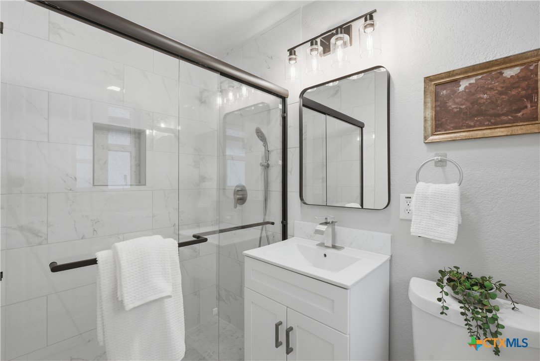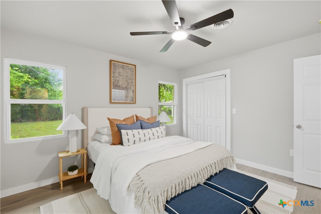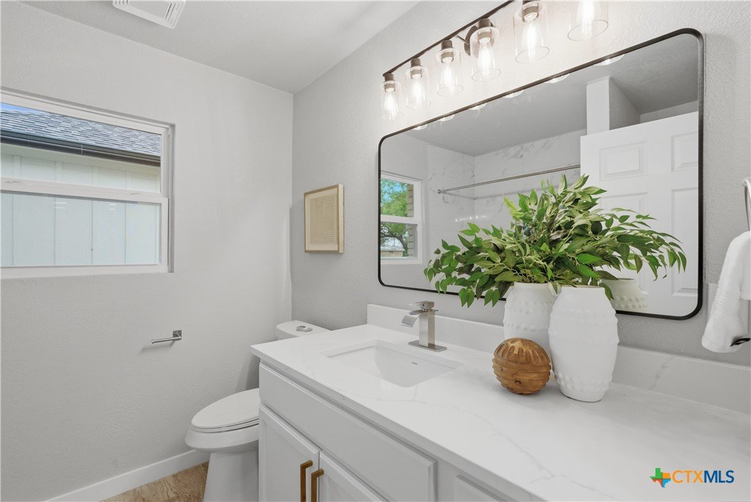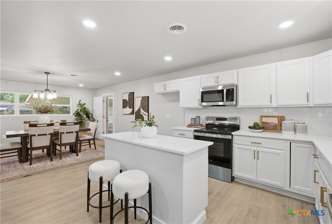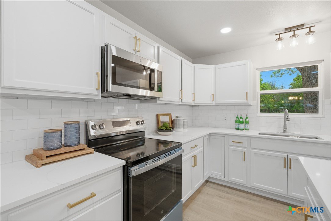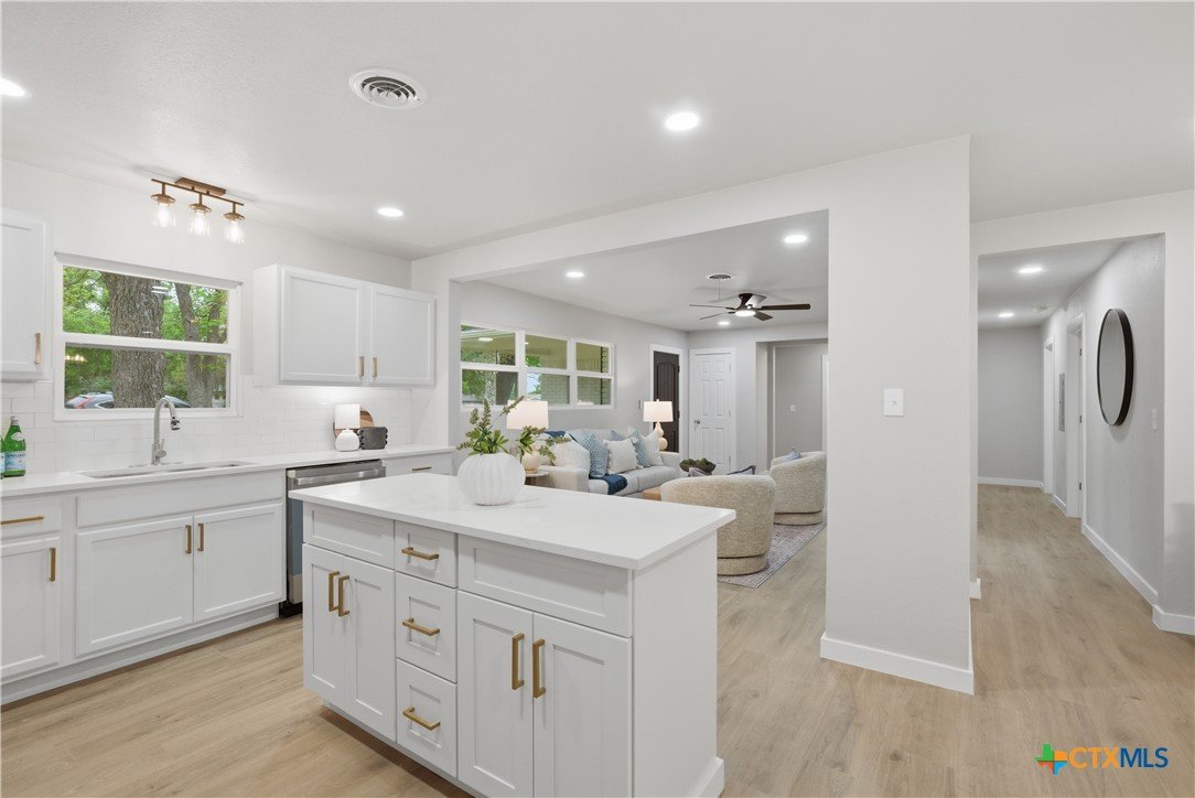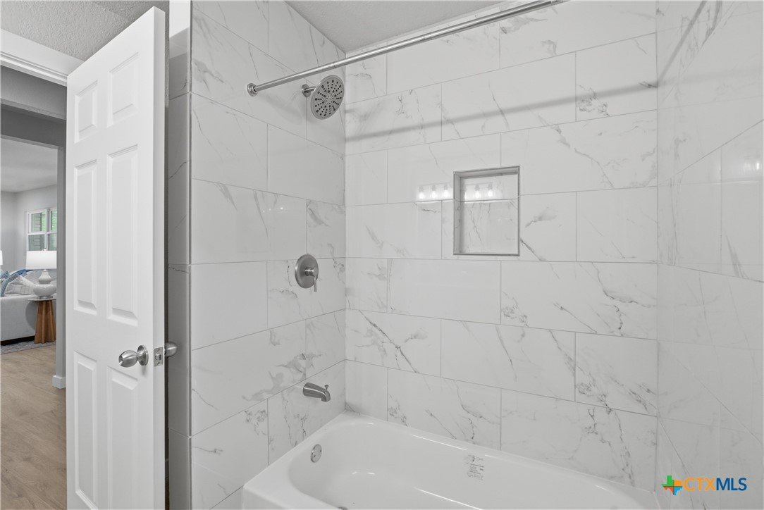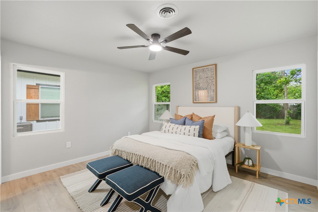 Completely remodeled and move-in ready, this home features luxury vinyl plank flooring throughout—no carpet anywhere. Major updates include a brand new HVAC system and ductwork, brand new roof, brand new windows, and all new fixtures throughout. The open floor plan creates a bright, inviting space, and all rooms include ceiling fans for added comfort. Both bathrooms offer tile floors and beautifully tiled showers, while the kitchen and baths are finished with quartz countertops and brand new stainless steel appliances. Enjoy a sunroom perfect for a home office or extra living space. Located in an established neighborhood with mature trees, just minutes from Baylor Scott & White and surrounded by restaurants and shopping. Backyard is fenced and includes a storage shed.