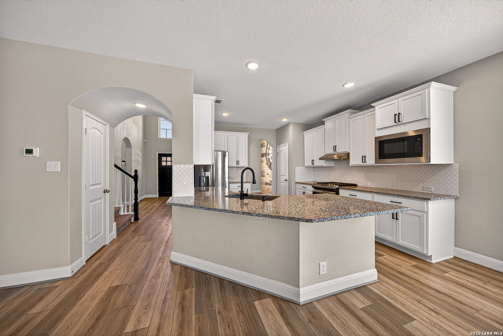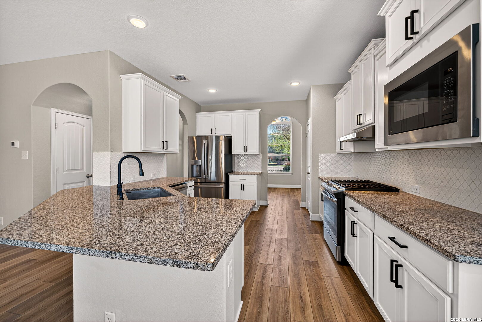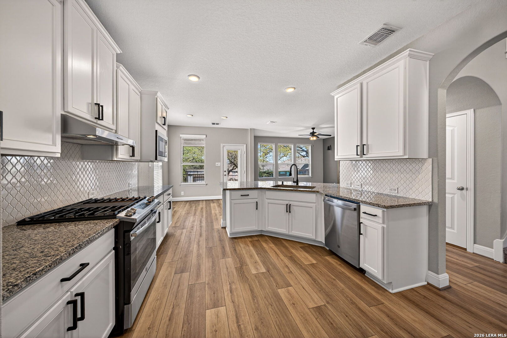 A beautiful 4-bedroom home with a flex room that can serve as a 5th bedroom, office or mancave. Designed for modern living, this home features LVP throughout downstairs, carpet in the upstairs bedrooms, ceiling fans in each bedroom, and two-inch blinds throughout. The kitchen is a chef's dream, boasting granite countertops, stainless steel side-by-side refrigerator, breakfast area, and peninsula seating, all seamlessly flowing into the dining and living areas. The primary suite includes a private walk-in closet and spa-like bathroom with separate vanity and large walk-in shower. Additional bedrooms are served by a Jack and Jill bathroom with private vanities, while the guest bath features engineered marble. Upstairs, a loft/game room provides the perfect space for family fun or entertaining guests. A standout feature of this home is the solar panel system, which provides energy efficiency and covers approximately half of the monthly electricity bill, helping you save on utilities while living sustainably. Step outside to a covered patio with an additional patio and shed, perfect for outdoor gatherings. With spacious living areas, high-end finishes, and energy-efficient solar panels, 22227 Waldon Vale offers comfort, modern convenience, and smart savings all in one exceptional home.