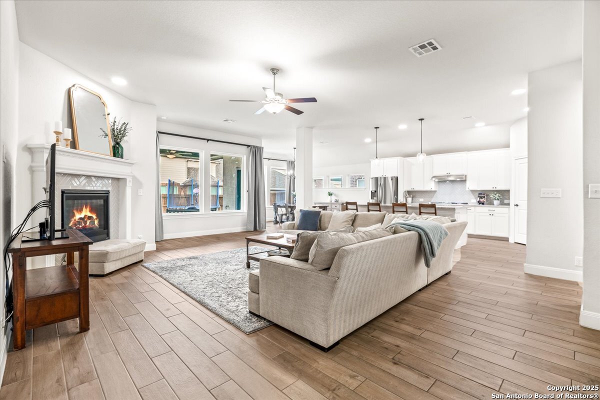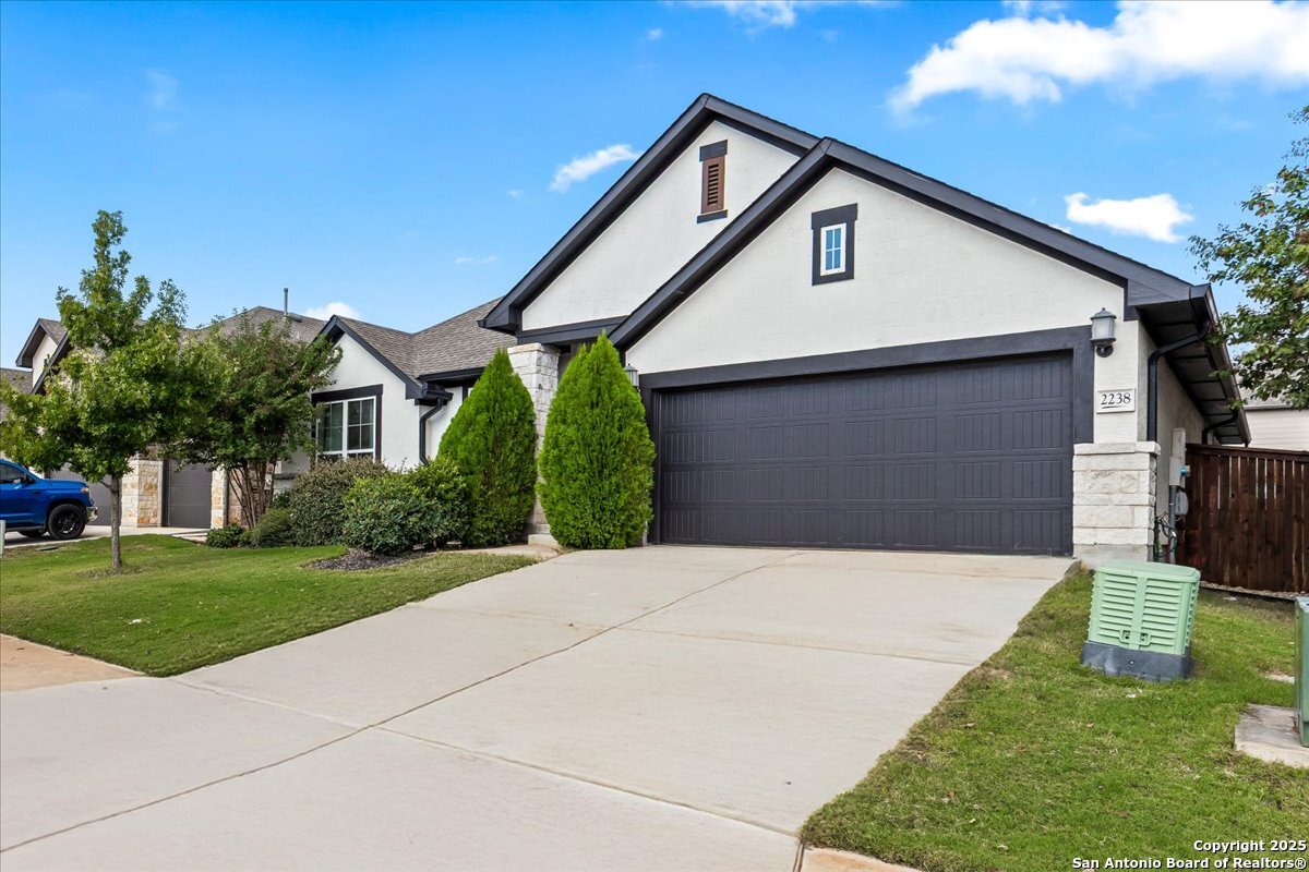 Experience stylish Hill Country living in this beautifully designed 3-bedroom, 2-bath home in the sought-after Veramendi Master Planned Community. The open-concept layout seamlessly connects the living, kitchen, and dining areas, perfect for everyday living and entertaining. A sleek kitchen features stainless steel appliances, gas cooktop, built-in oven and microwave, and a striking herringbone backsplash. The home includes a dedicated flex room/ study with a Murphy bed for added versatility and has no carpet throughout. The spacious primary suite boasts bay windows, dual vanities, and a large walk-in shower with herringbone tile and expansive glass panels. Enjoy outdoor living on the covered patio with ample space for dining and relaxation. Residents of Veramendi enjoy exceptional amenities, including swimming pools, splash pads, pavilions, walking trails, playgrounds, and more exciting additions coming soon-such as a two-tiered pool, indoor gathering space, pickleball, and sports courts. Enjoy the community and come join the fun!