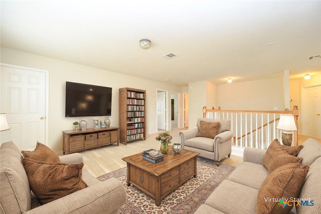 This spacious home offers a smart layout and a convenient location in a quiet neighborhood close to Fort Hood, shopping, and schools. Inside, owner updates enhance the kitchen with refreshed light fixtures, a new sink, and updated appliances, adding both function and style to the heart of the home. Just inside the foyer, a versatile room provides flexible use as a formal living area, dining space, or home office. The great room opens seamlessly to the island kitchen and breakfast area, creating an easy flow for everyday living and entertaining. Upstairs, a generously sized loft adds even more flexible space for a game room, second living area, or study zone. The owner’s suite is impressively sized, featuring a bath with a soaking tub, separate shower, and a large walk-in closet. One secondary bedroom includes built-in features, offering added character and functionality. Out back, enjoy a covered patio along with a wood deck, perfect for relaxing or hosting guests. A detached shed provides extra space for tools or equipment, and a 30-amp RV outlet adds a hard-to-find bonus. With its roomy floor plan, thoughtful upgrades, and central location, this home offers comfort, versatility, and everyday convenience.