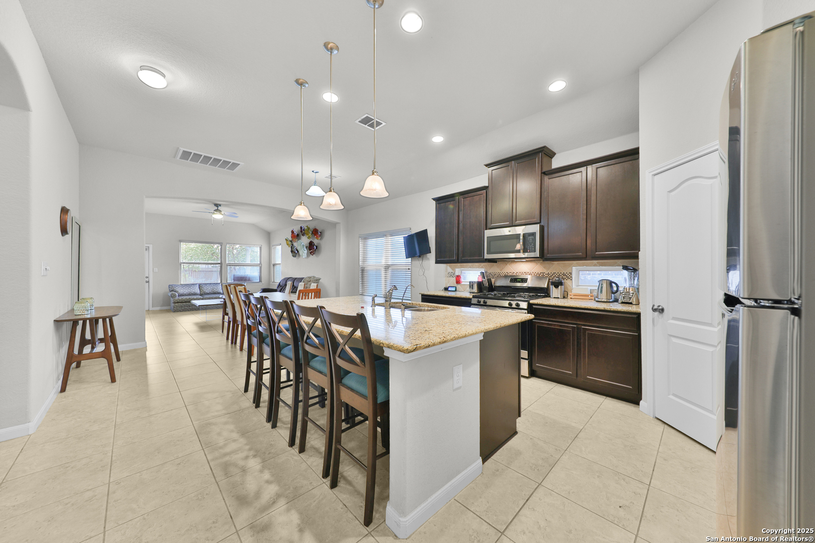 Well-maintained 3-bedroom, 2-bathroom home with a 2-car garage and 5 ft. extension. The gourmet kitchen opens to the family room for easy living. Ceramic tile flooring runs through the family and dining rooms. The primary bedroom includes a bay window, and the kitchen features a box-out sitting area. A grand covered patio provides additional space to enjoy the outdoors.