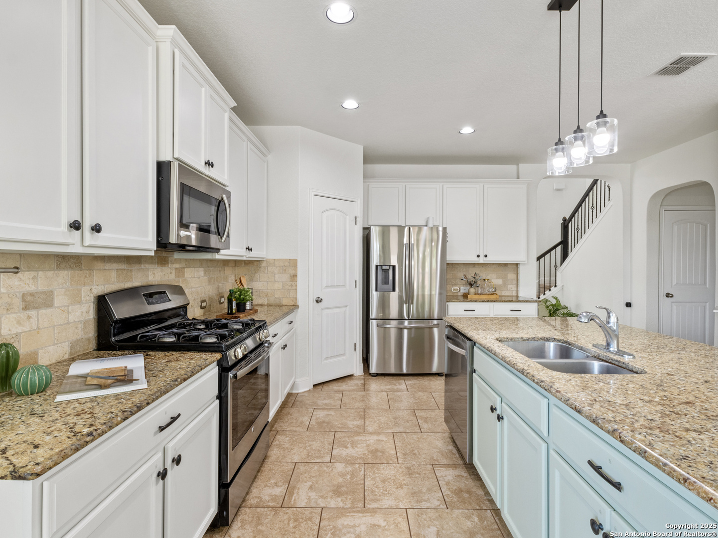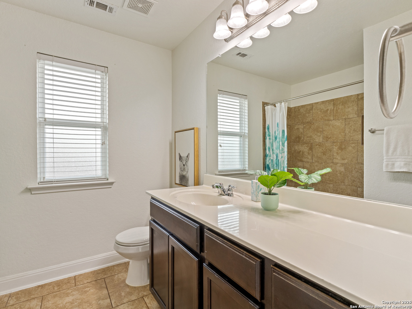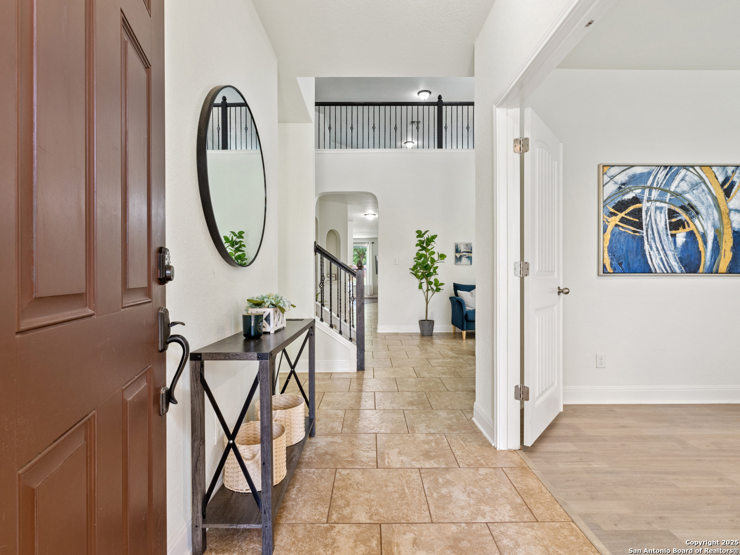 No need to upsize, this home has it all! Welcome to 22438 Akin Fawn, a spacious 4-bedroom, 3.5-bath home in North San Antonio offering the perfect blend of comfort and functionality with an OFFICE, THREE LIVING AREAS, a DOWNSTAIRS PRIMARY SUITE with dual closets, and an UPSTAIRS JUNIOR SUITE for guests. The open-concept kitchen and family room are ideal for entertaining, featuring a large island, abundant storage, and seamless flow for gatherings, while the OVERSIZED GAMEROOM with a flex space provides endless options for a media room, gym, or hobby area. You will love the high ceilings and the many windows for natural light, while the SOLAR PANELS offer energy efficiency and lower utility costs. Outside you'll enjoy an expansive patio and extra large backyard perfect for games, BBQ, parties, and relaxation. Located just off Evans Road with easy access to Loop 1604 and Hwy 281, this vibrant community is easily accessible and includes a community pool, clubhouse, basketball court, park, and playground-offering the best of both entertainment and outdoor fun. At 22438 your not just living, you are creating a lifestyle!! Zoned outside the city limits too.