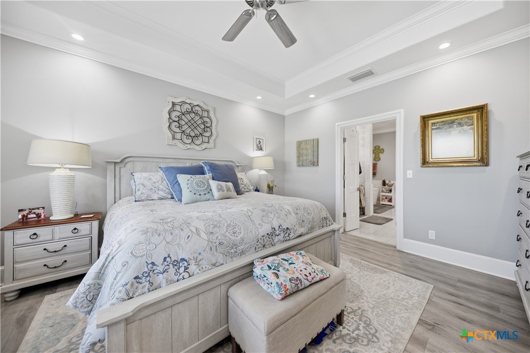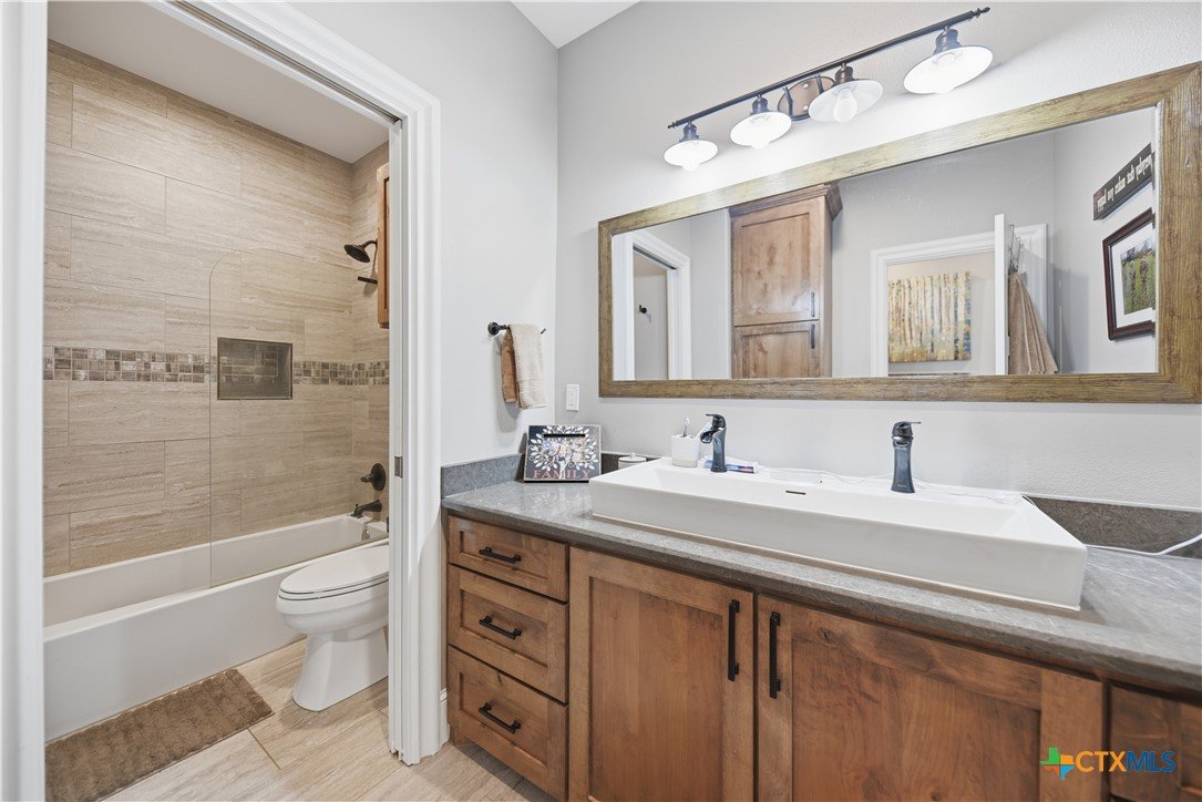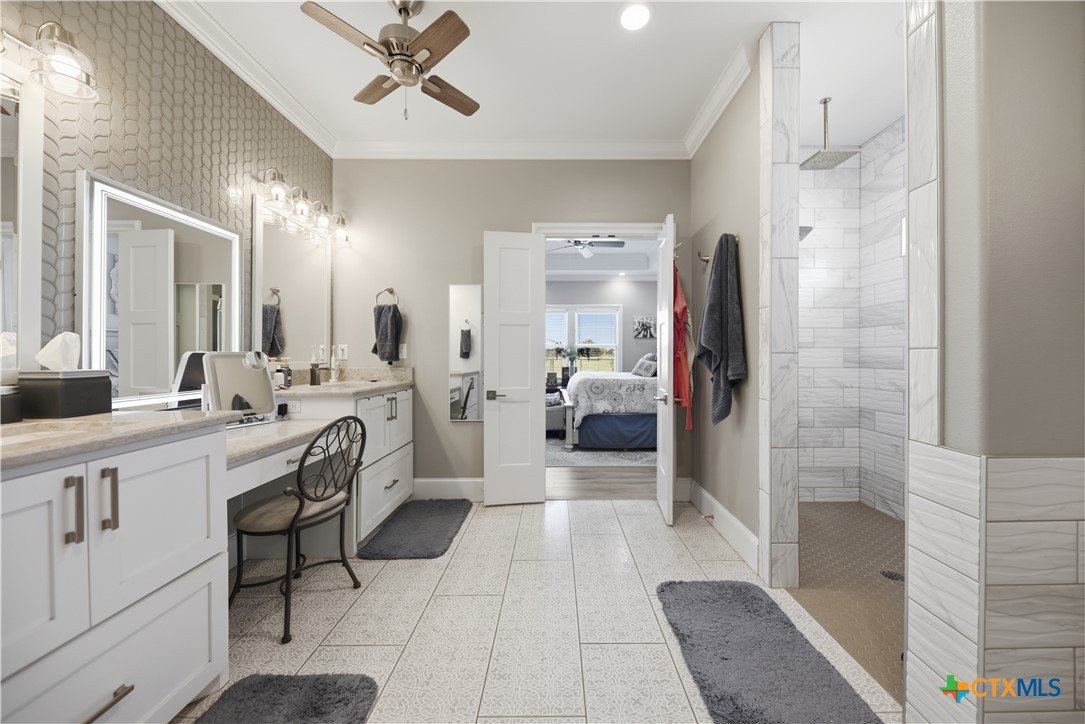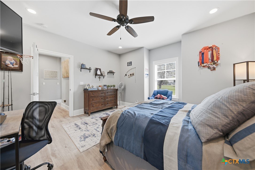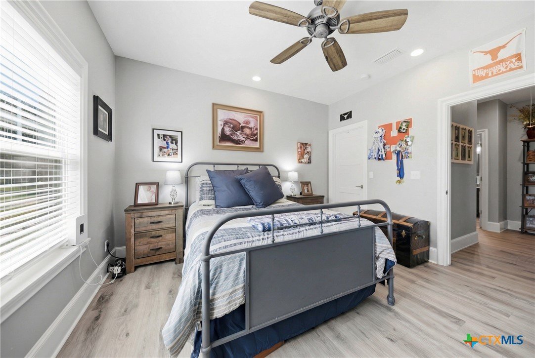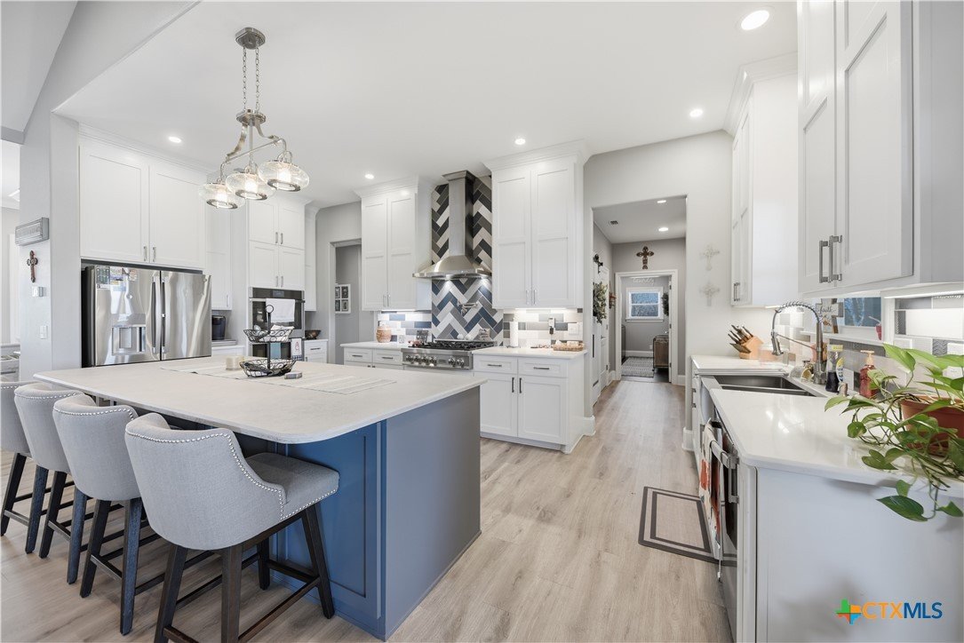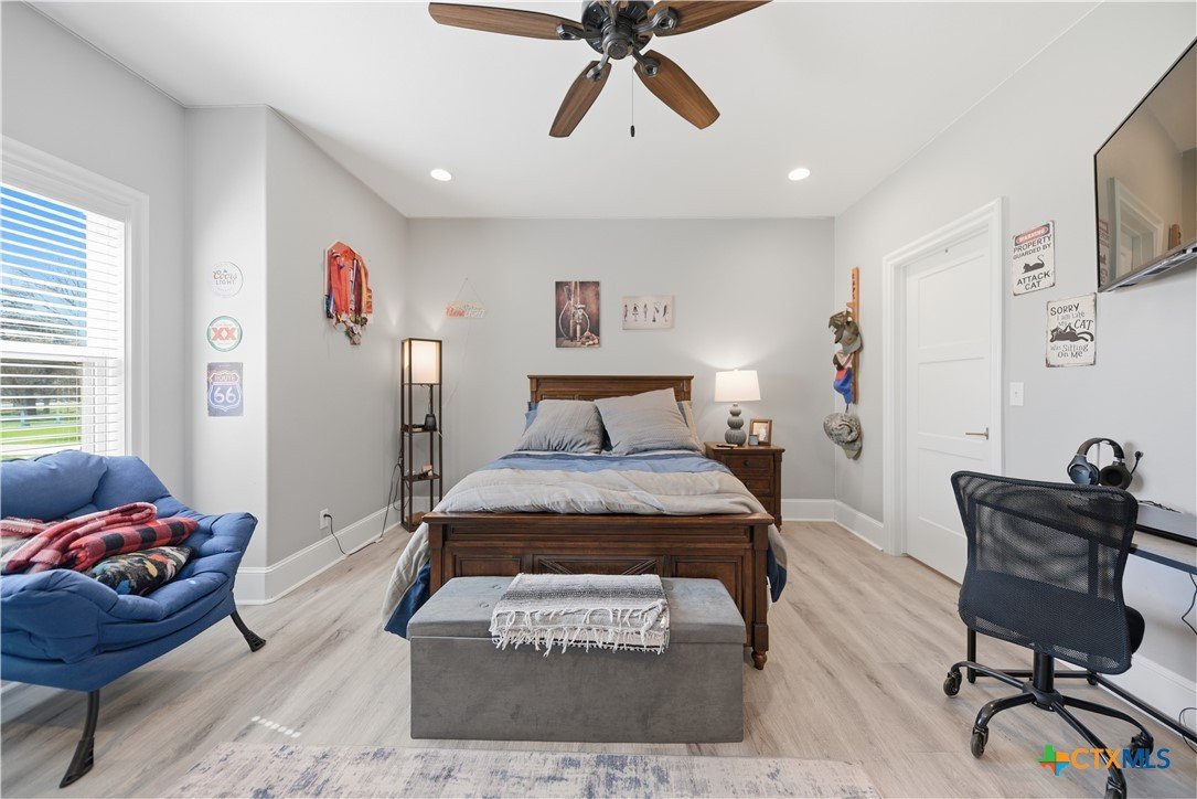 Welcome to this beautifully designed 2,758sqft custom home (2021). Set on a spacious 2.13ac tract w/ countryside views. Featuring stacked stone & Hardie board exterior finishes and a beautifully landscaped yard. The main living area connects the kitchen, dining, and is ideal for everyday living and entertaining. Large picture windows give you views of the covered back patio, outdoor kitchen, pool, and country landscape. The kitchen has custom cabinetry, quartz countertops and a large center island with ample storage and bar seating. Appliances include a built-in double oven, 6 burner gas range, above range pot filler, dishwasher, microwave & stainless steel farmhouse sink. The dining area is open to the living room and features a built in hutch w/ buffet. A private office/flex room located just off the main living areas offers versatility and could serve as a home office, game room or additional bedroom. The split floor plan provides privacy for the primary suite. The spacious primary bedroom features a recessed ceilings, elegant crown molding and direct access to the back porch. The primary bathroom includes a separate shower and soaking tub, split double vanity with a center makeup vanity and direct access to the spacious walk-in closet. The primary closet has custom shelving and a center, built-in island for exceptional storage and organization. On the opposite side of the home, there are two nice sized secondary bedrooms each include walk-in closets. The common bathroom has a tub/shower combination with a custom tile surround. The utility room features a mudroom entry, large sink, overhead storage, utility closet, and space for an additional refrigerator or freezer. A covered back patio is highlighted by a vaulted wood ceiling, gas/wood-burning fireplace, and a fully equipped outdoor kitchen with sink, refrigerator, ice maker, and grill. The gunite swimming pool with attached hot tub completes the outdoor space all set against peaceful countryside views.