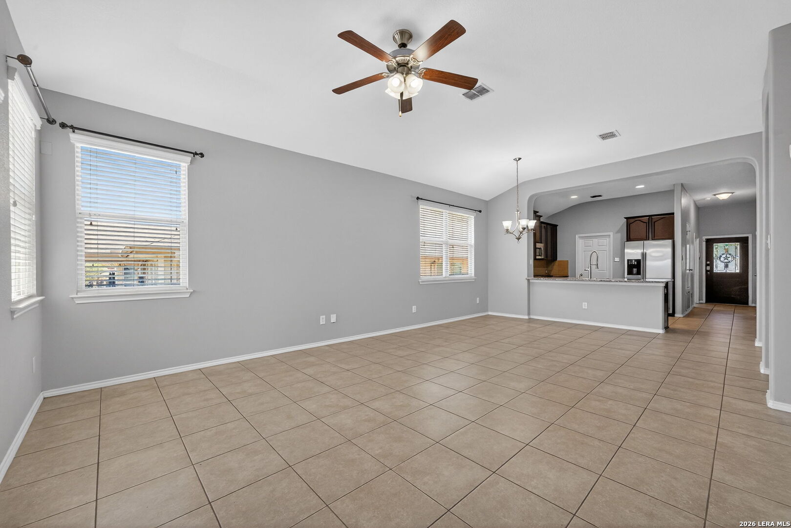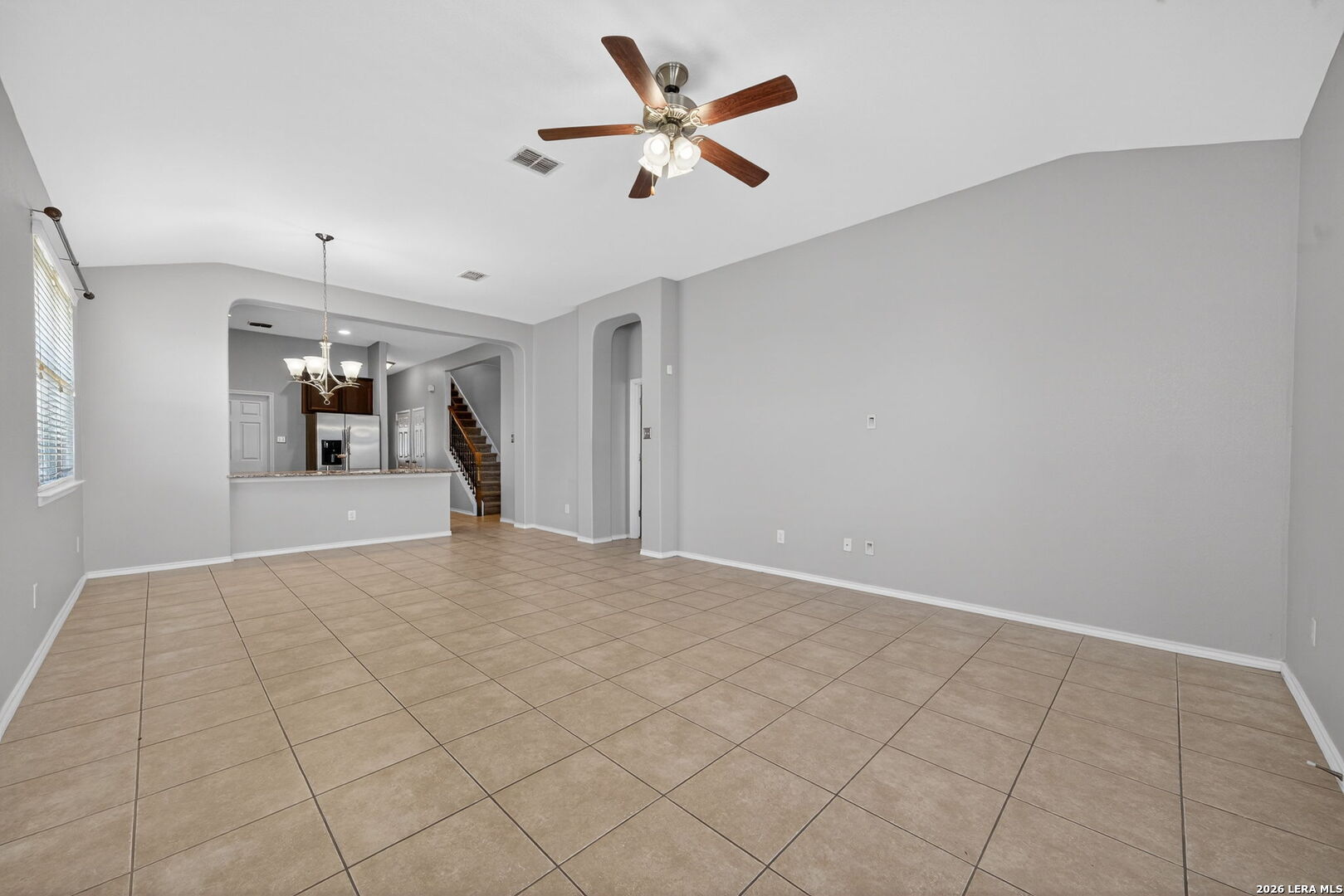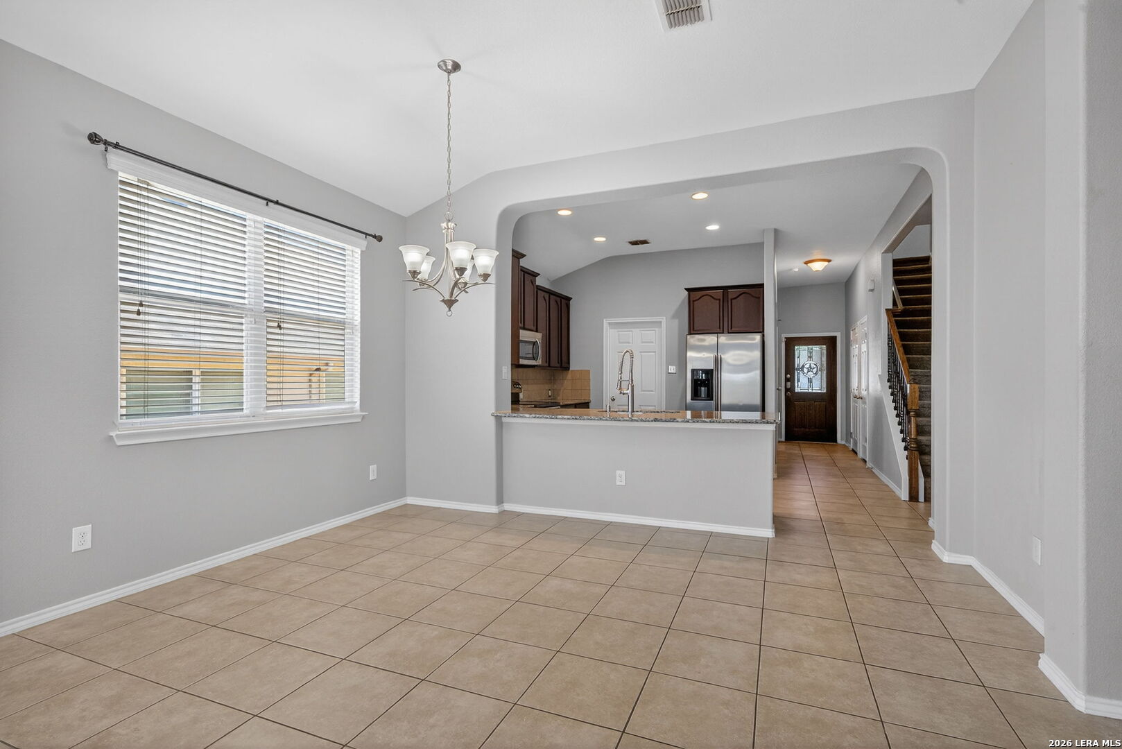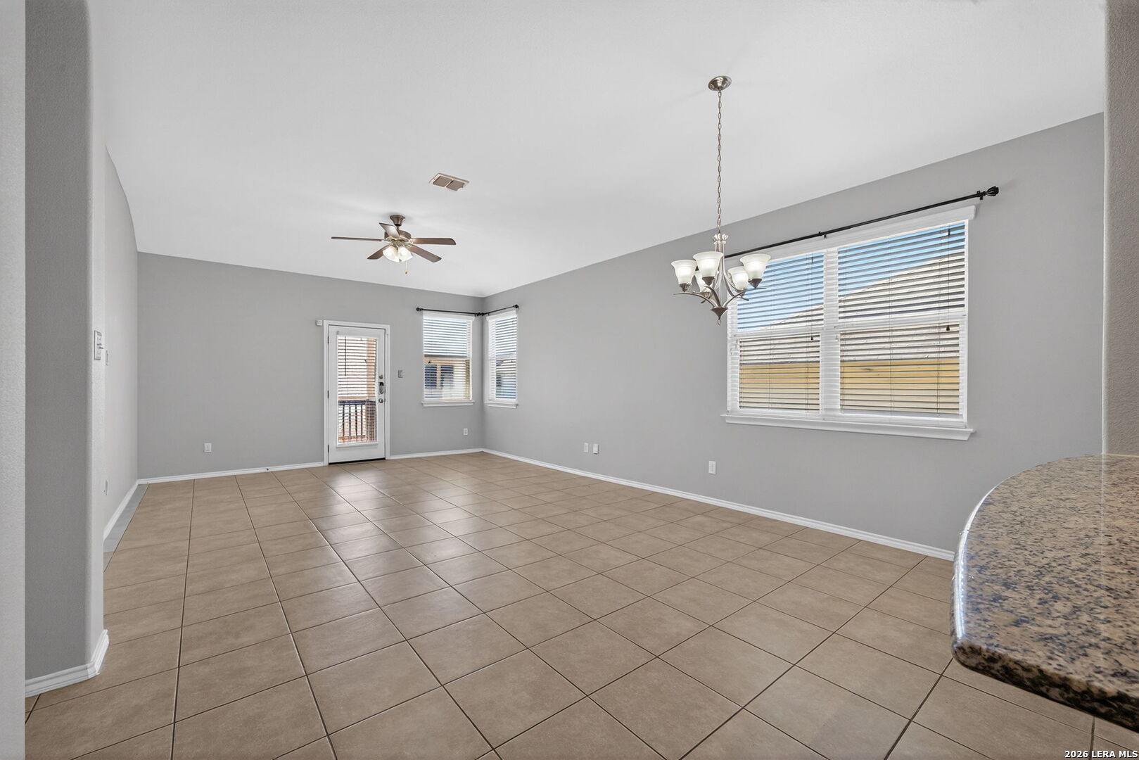 Well-maintained 3-bedroom, 2-bath home with a dedicated office/study, offering 1,872 sqft of functional living space, high ceilings, and an open layout that creates a bright, spacious feel throughout. All bedrooms are conveniently located on the first floor, providing both comfort and privacy, while the oversized upstairs game room offers flexible space ideal for a second living area, media room, or work-from-home setup. The main living areas feature tile flooring throughout the entry, living, dining, and wet areas for durability and easy maintenance. The kitchen is equipped with granite countertops, stainless steel appliances-including refrigerator-and a large breakfast bar that opens to the main living space, making it ideal for everyday living and entertaining. The primary suite offers a spacious layout with high ceilings, abundant natural light, and a well-appointed bath with separate tub and shower. Step outside to a covered back porch and a spacious backyard ready for your personal touch-perfect for creating your own outdoor space. Built in 2010 and ideally located near Randolph Air Force Base and Fort Sam Houston, with convenient access to shopping, dining, and major roadways. Clean, functional, and move-in ready with a layout that works-schedule your showing today.