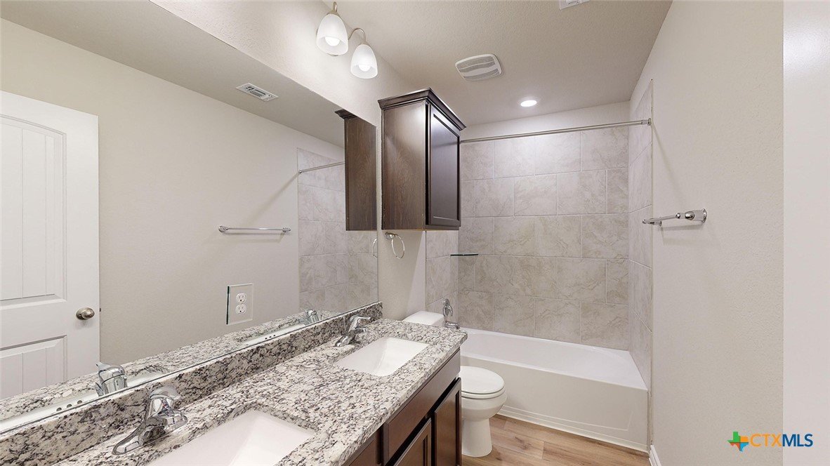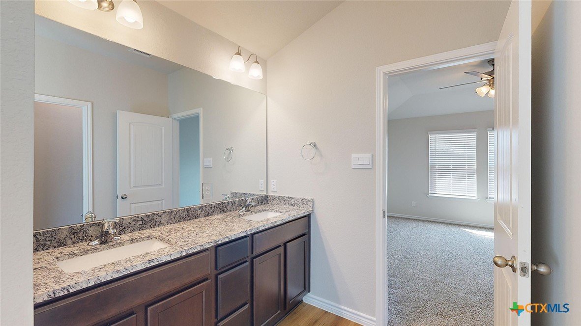 Come check out the Monroe floorplan in Killeen, Texas at Turnbo Ranch Traditions. This incredible single-story 1,951 approximate sq. ft., 2-car garage is perfect for you. The four-bedroom and 2.5-bathroom layout, comfortably accommodates friends, family, and guest. When you enter the home, you’ll be greeted with two bedrooms and a secondary bathroom and another secondary bedroom next to the car garage. Continuing down the hallway, find yourself in the open concept living area that blends the kitchen, great room, and dining area. The kitchen features flat panel birch cabinets and granite countertops, with decorative tile backsplash. It is set off from the lining areas by a kitchen island with a built-in sink. From the dining room are you have easy access to the covered patio. Walking through the great room, you’ll find the primary bedroom with an attached bathroom. The bathroom has a double vanity and a walk-in shower that can be opted for a tub and shower, and a large walk-in closet for all your belongings. Like with all our homes, you’ll never be too far from home with our smart home technology thoughtfully designed into every detail. Contact us today to find your home in Turnbo Ranch Traditions.