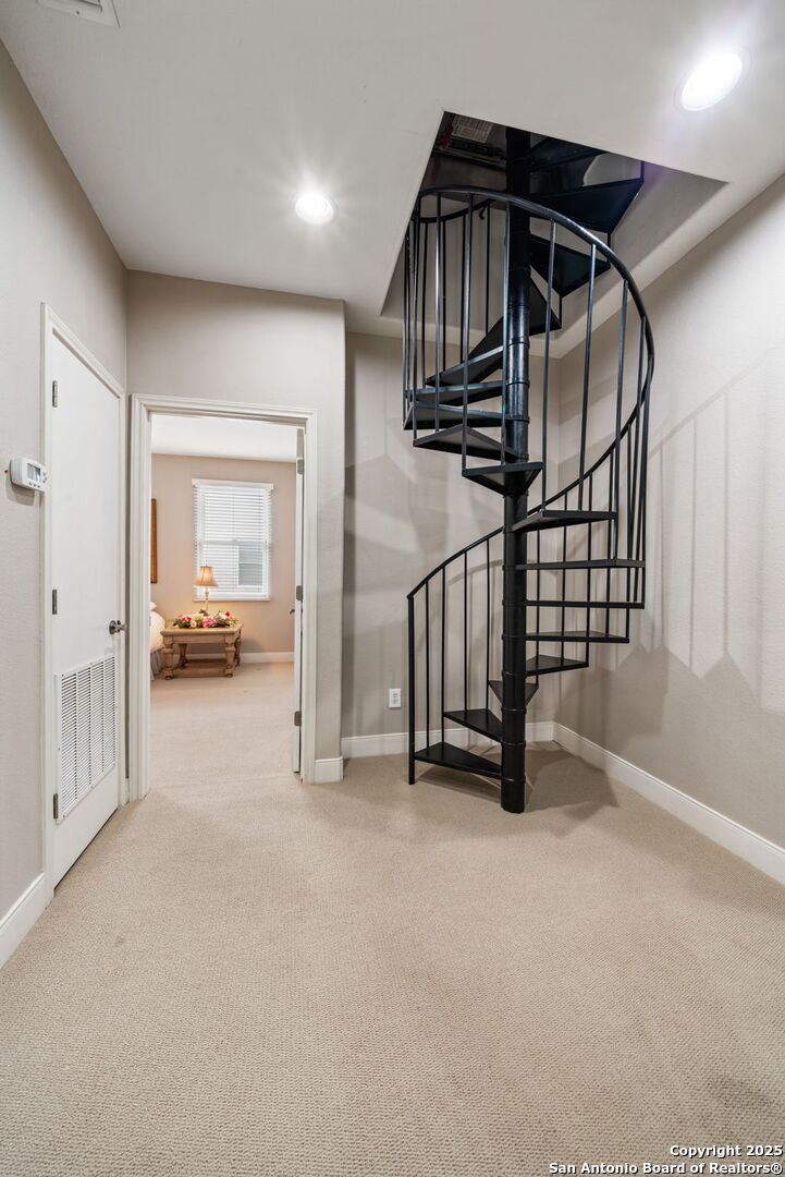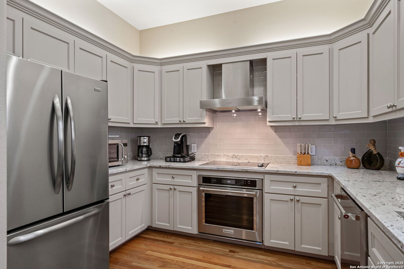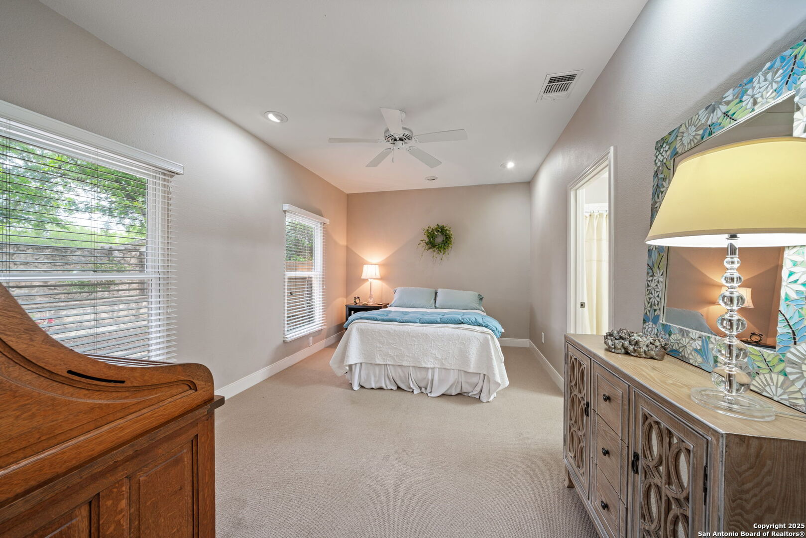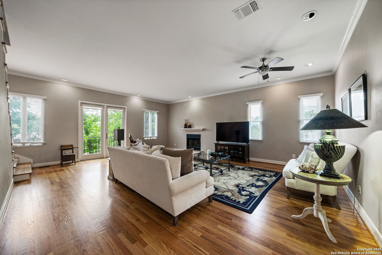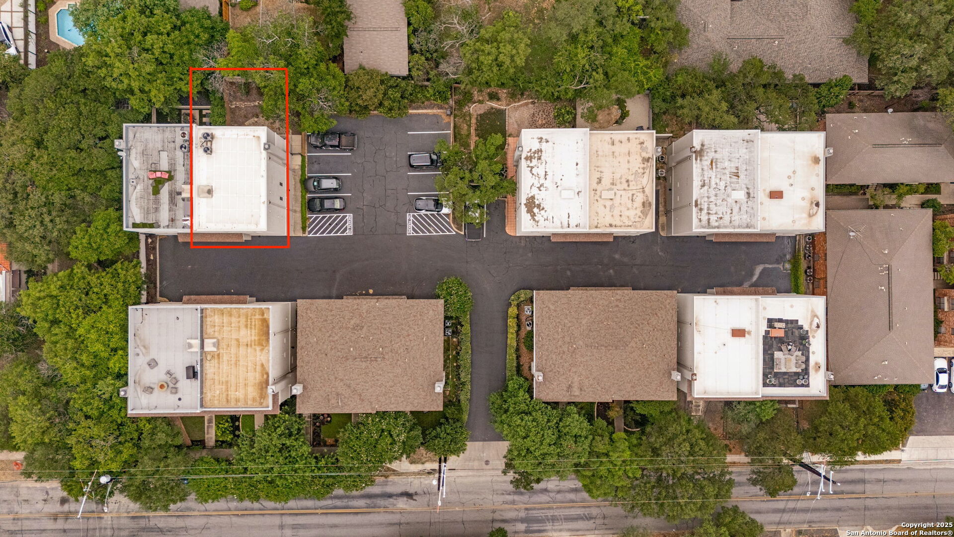 Experience the Ultimate Urban Lifestyle minutes from downtown with a Private Rooftop Access! Contemporary style meets timeless elegance in this stunning townhome-style condominium located in the heart of historic Monte Vista. Perfect for those seeking a seamless transition to urban living, this beautiful tri-level home offers both luxury and convenience. Step into a private courtyard with low-maintenance yard upkeep-ideal for relaxing or entertaining. Enjoy breathtaking panoramic views of downtown San Antonio from your expansive rooftop deck. Inside, every room reflects refined taste and thoughtful design. The first floor serves as a versatile space-perfect for a home office or guest suite. On the second level, you'll find an inviting layout featuring a chef-inspired kitchen. The adjacent living area boasts a cozy fireplace and access to a balcony with serene treetop views. The upper-level primary suite is a true retreat, complete with two walk-in closets and a spa-like bathroom showcasing a stand-alone soaking tub, walk-in tile shower, and dual vanities with soapstone countertops. A secondary bedroom, full bath, and laundry area complete this level. The spiral staircase leads to the rooftop access with AMAZING downtown views - must see it in the evenings to truly appreciate. Additional highlights include ample storage throughout, an attached two-car garage, and generous guest parking (located right next to the unit). Located just minutes from Hwy 281 and Loop 410, this exceptional home offers quick access to downtown, the airport, the University of the Incarnate Word, Trinity University, and the Pearl District.